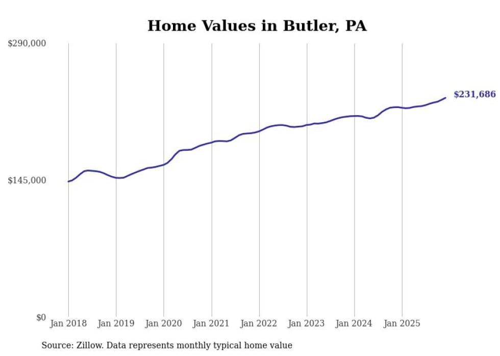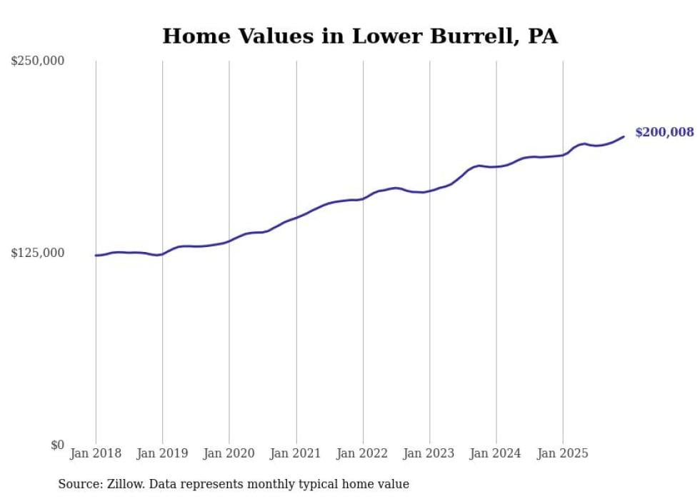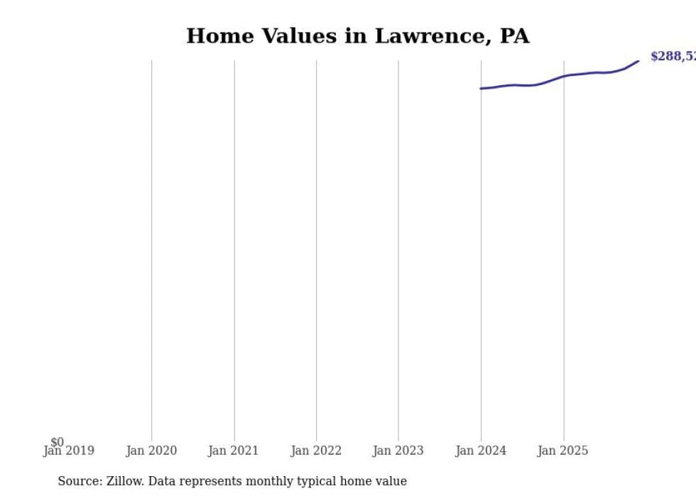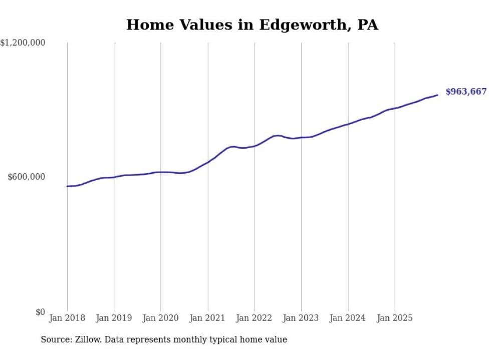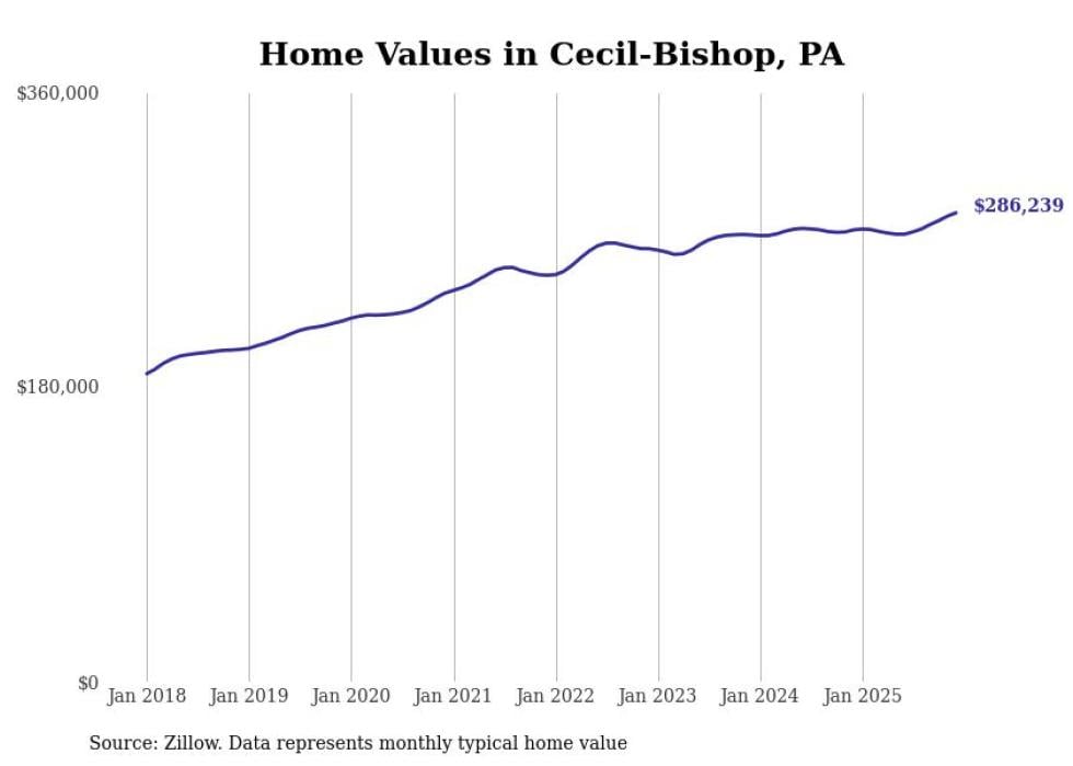 Stacker compiled a list of cities with the most expensive homes in the Pittsburgh, PA metro area using data from Zillow. Charts show the monthly typical home value since January 2018.