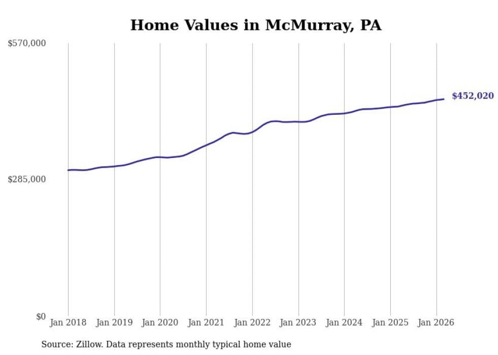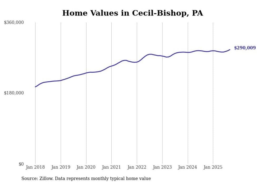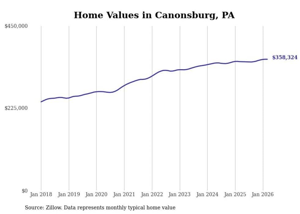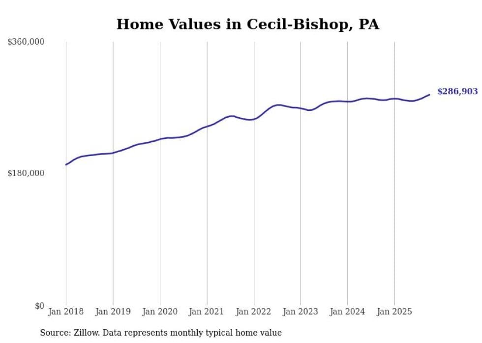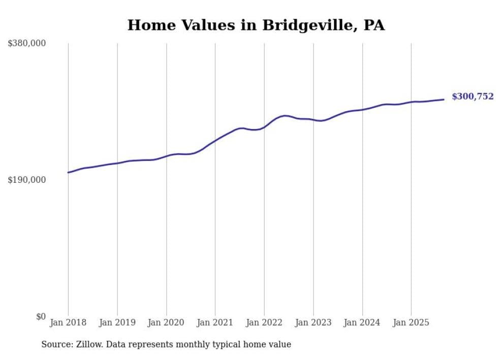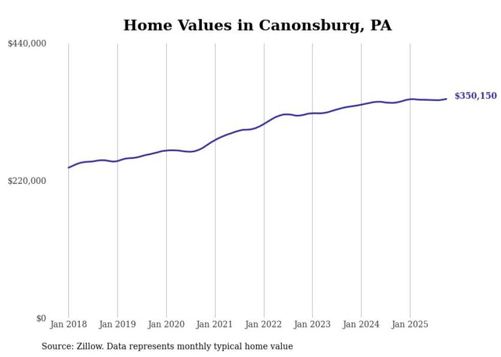 Stacker compiled a list of cities with the most expensive homes in the Pittsburgh metro area using data from Zillow. Charts show the monthly typical home value since January 2018. Data was available for 147 cities and towns.