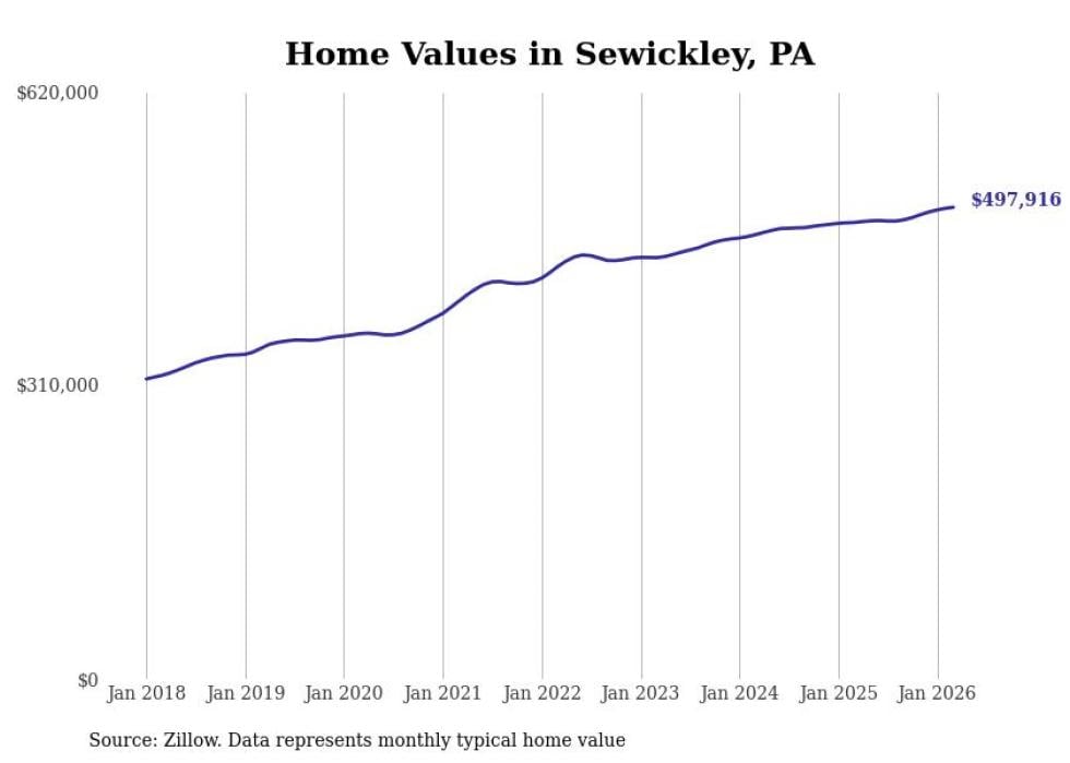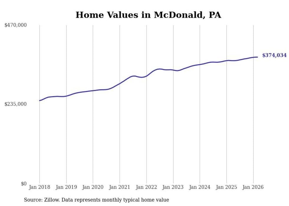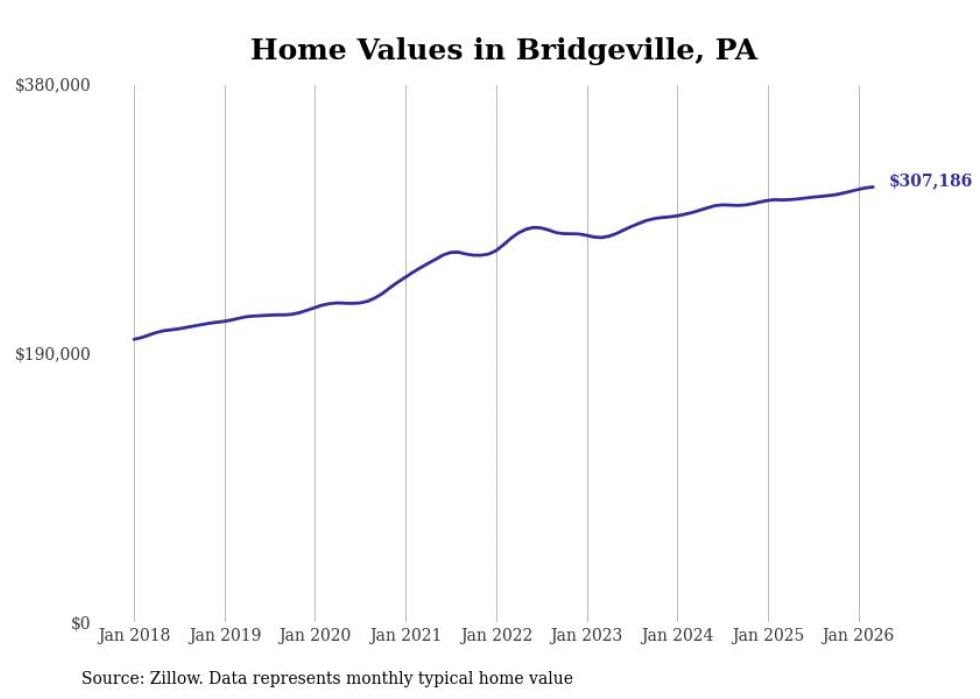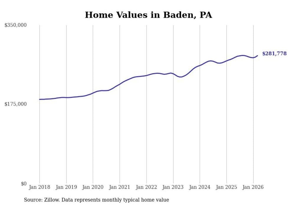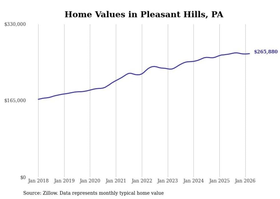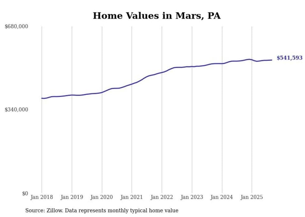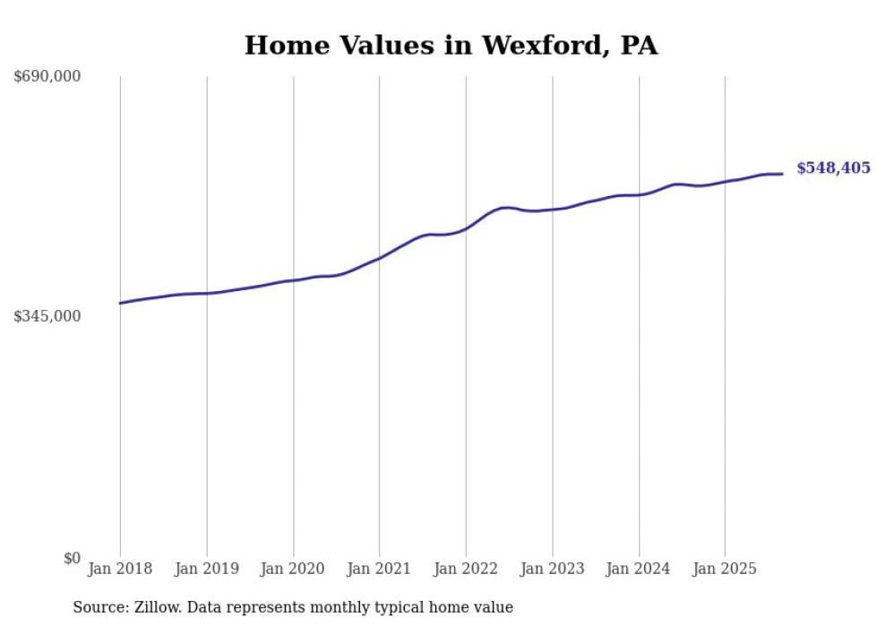 Stacker compiled a list of cities with the most expensive homes in the Pittsburgh metro area using data from Zillow. Charts show the monthly typical home value since January 2018. Data was available for 147 cities and towns.