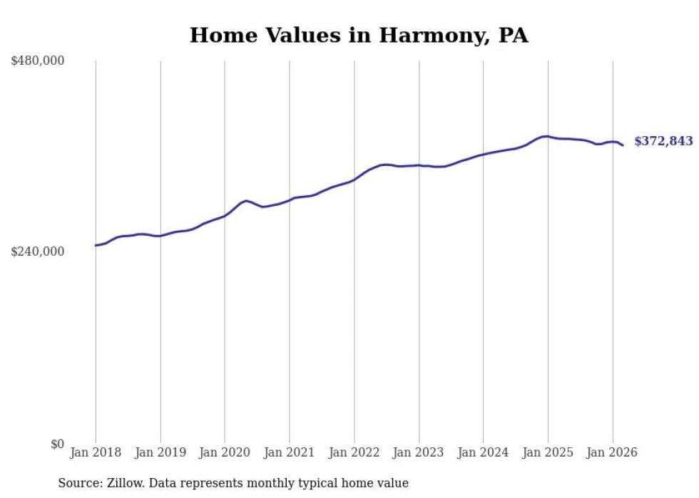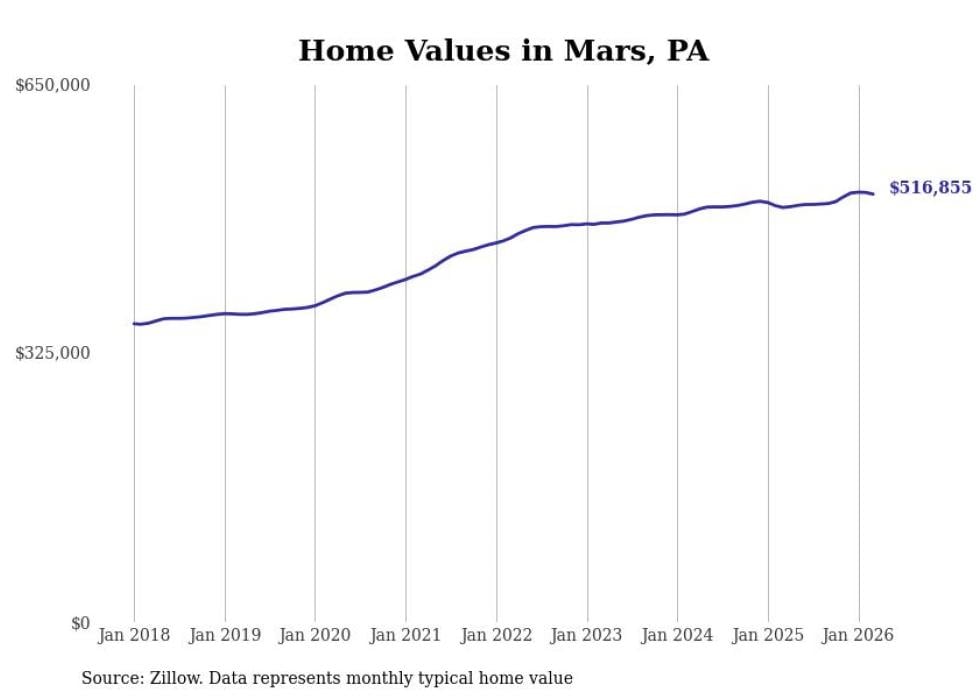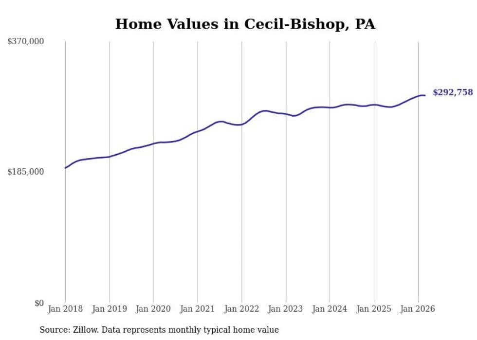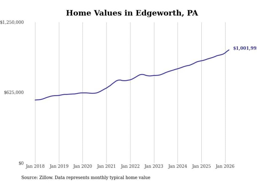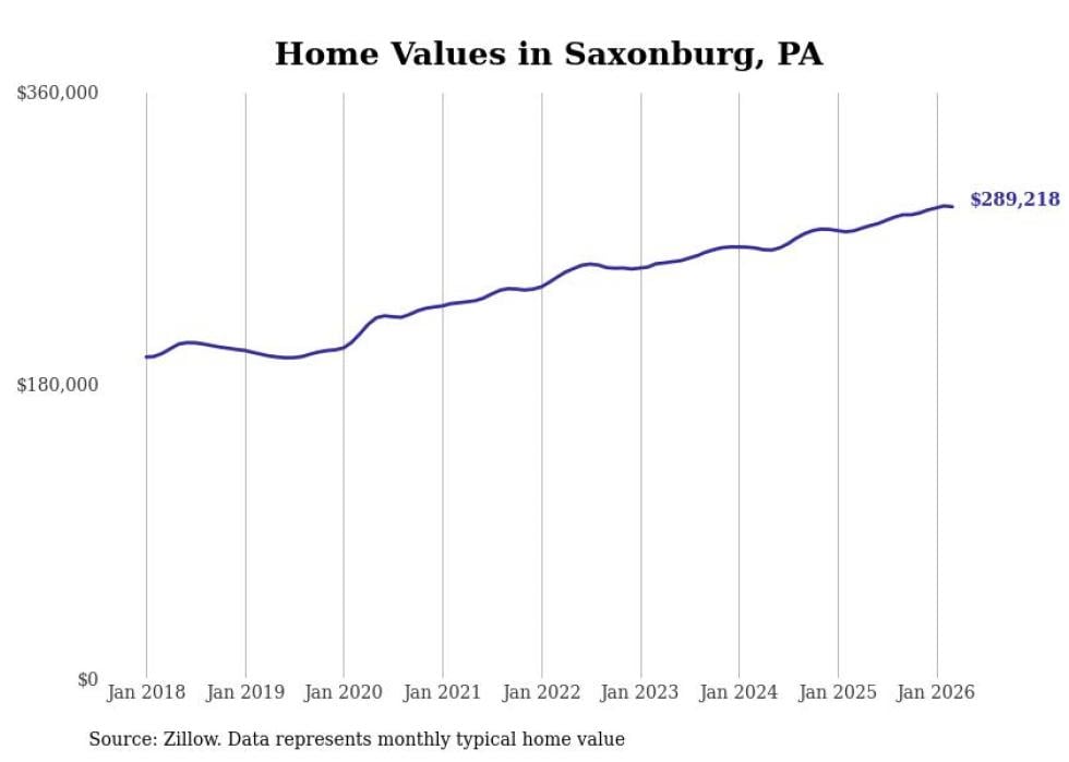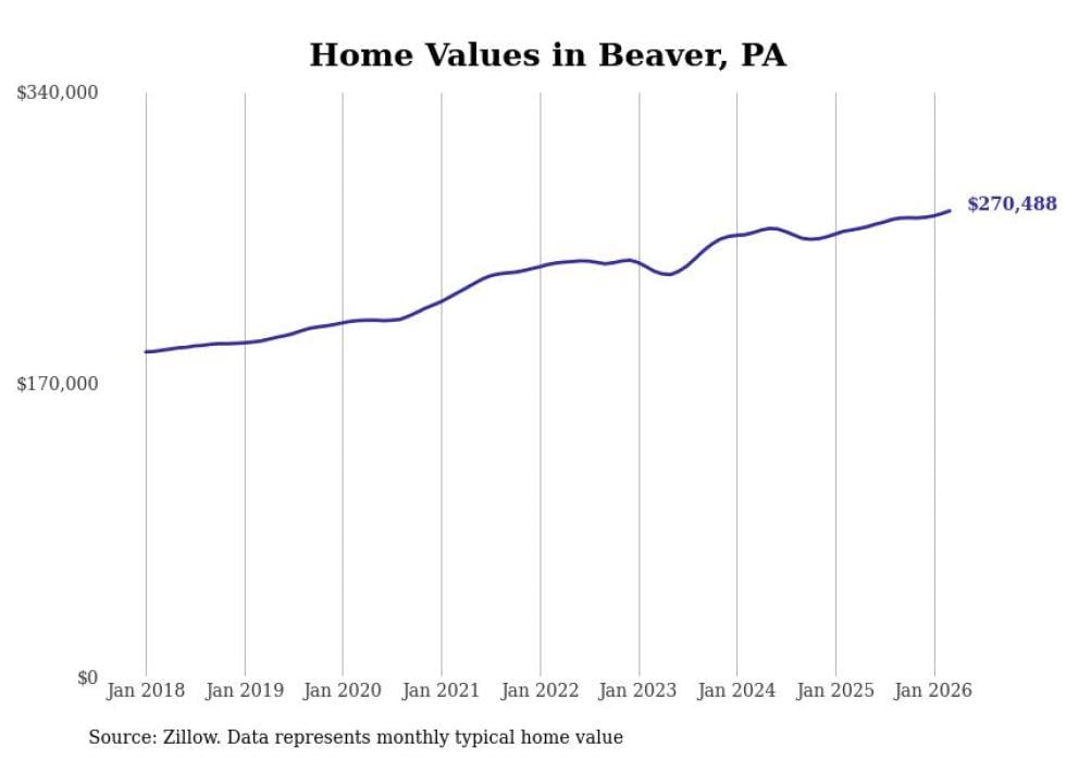 Stacker compiled a list of cities with the most expensive homes in the Pittsburgh metro area using data from Zillow. Charts show the monthly typical home value since January 2018. Data was available for 147 cities and towns.