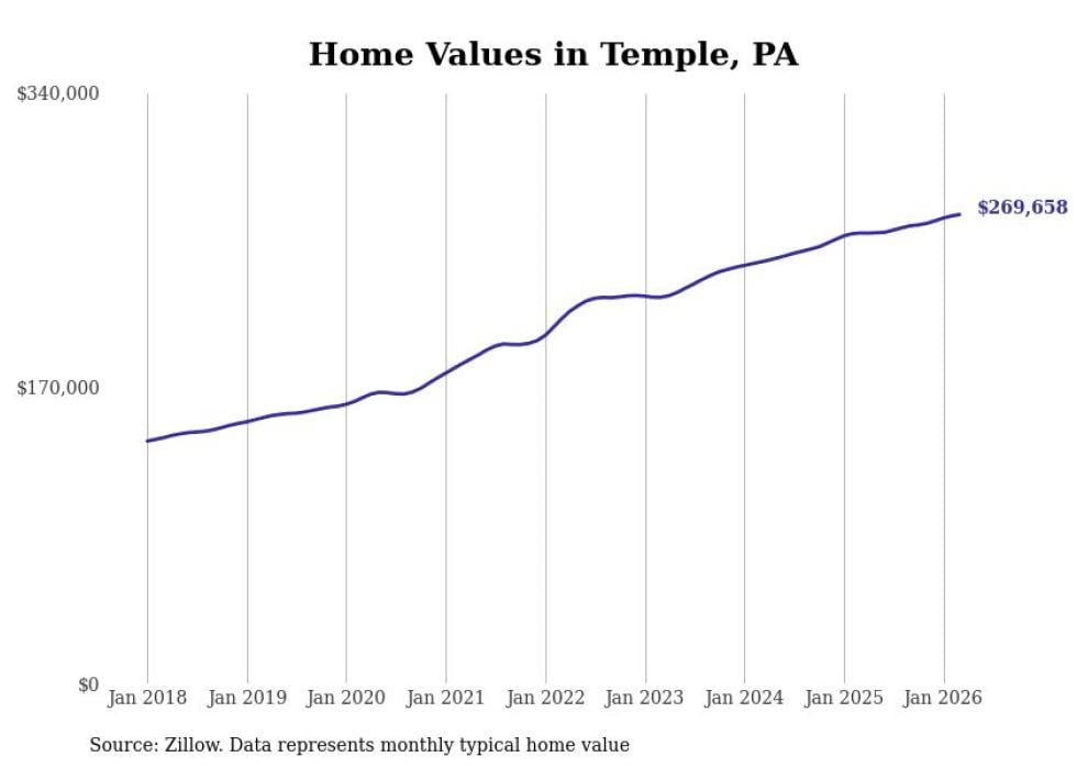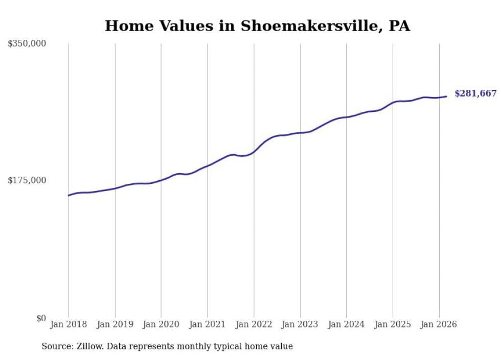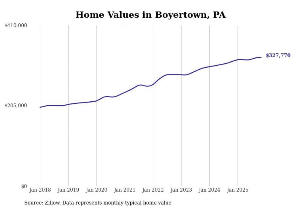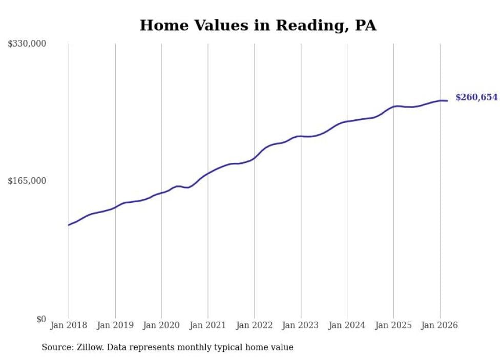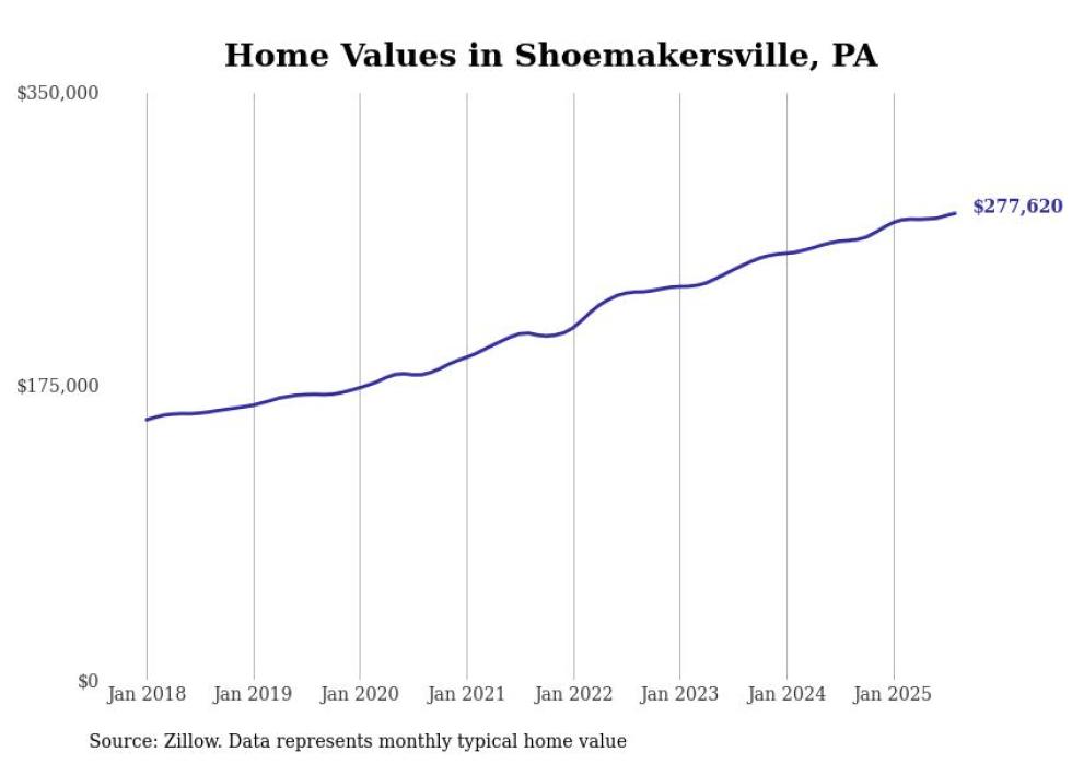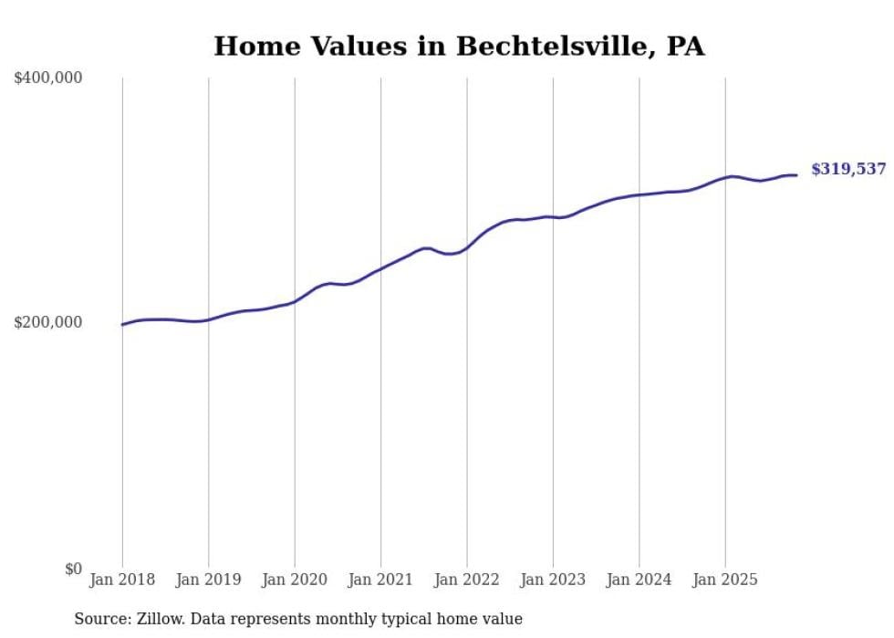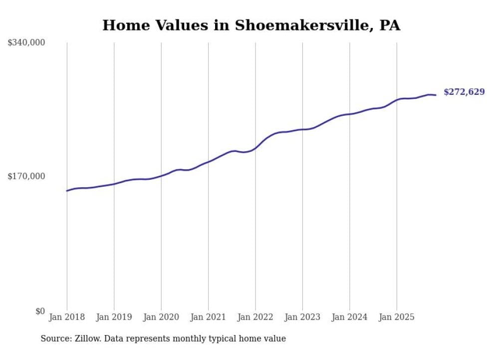 Stacker compiled a list of cities with the most expensive homes in the Reading, PA metro area using data from Zillow. Charts show the monthly typical home value since January 2018.