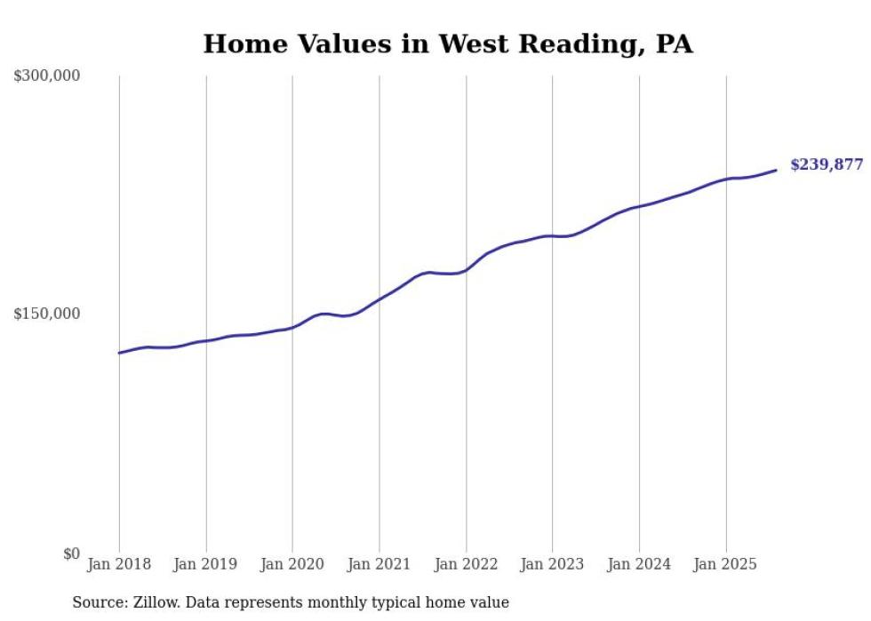 Cities with the fastest-growing home prices in the Reading metro area
