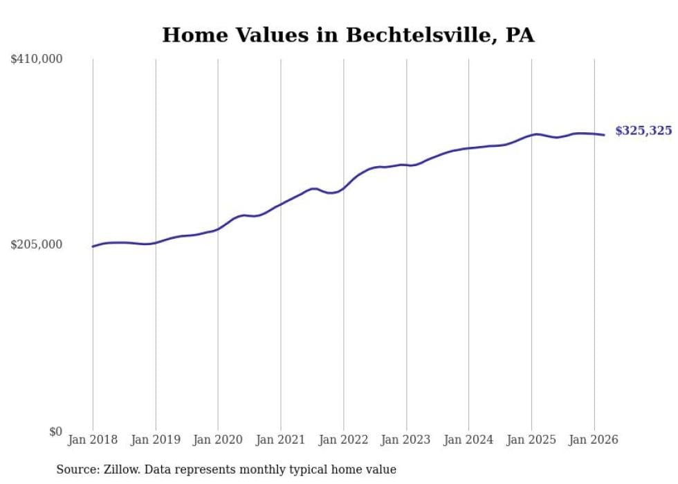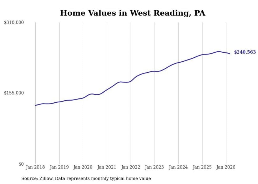 Stacker compiled a list of cities with the most expensive homes in the Reading metro area using data from Zillow. Charts show the monthly typical home value since January 2018. All 24 cities and towns with data available were included in the list.