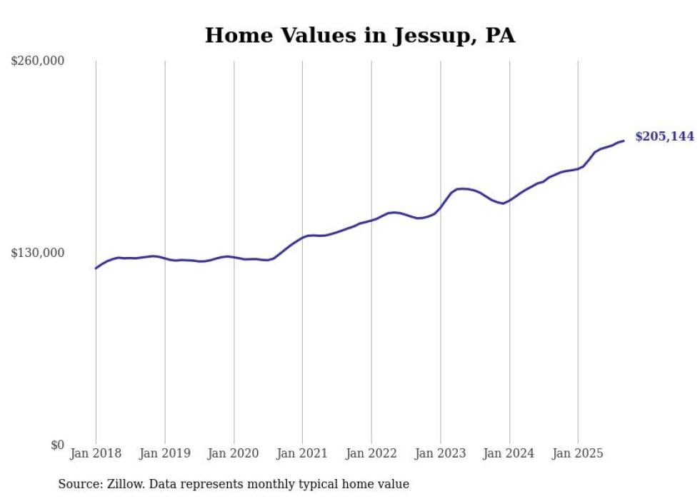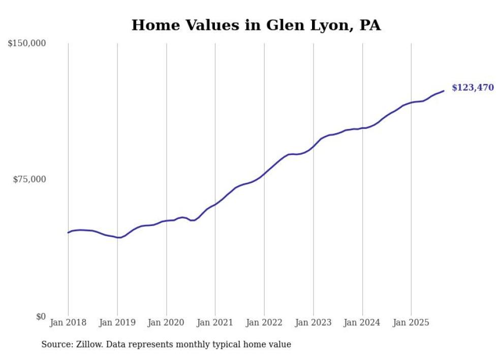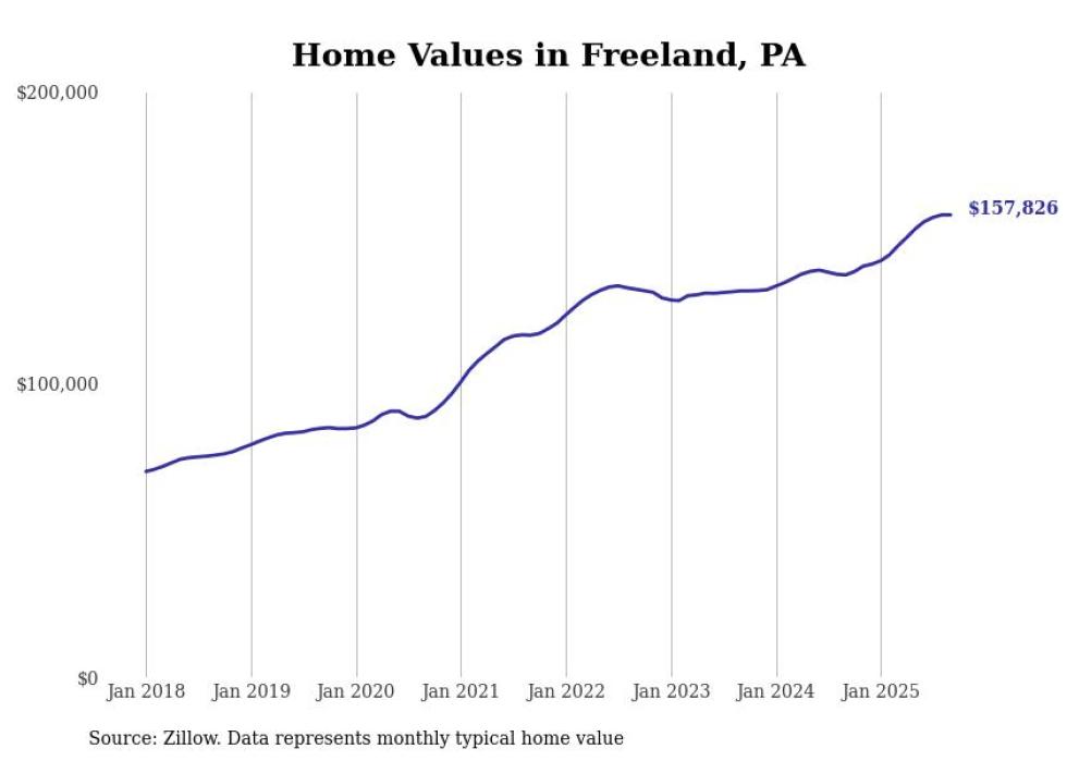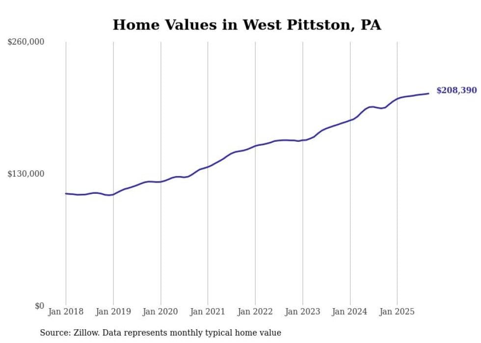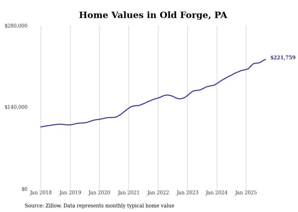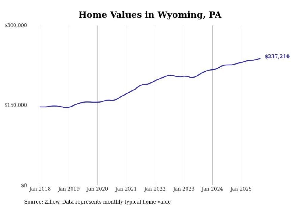 Stacker compiled a list of cities with the most expensive homes in the Scranton--Wilkes-Barre, PA metro area using data from Zillow. Charts show the monthly typical home value since January 2018.