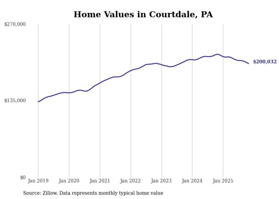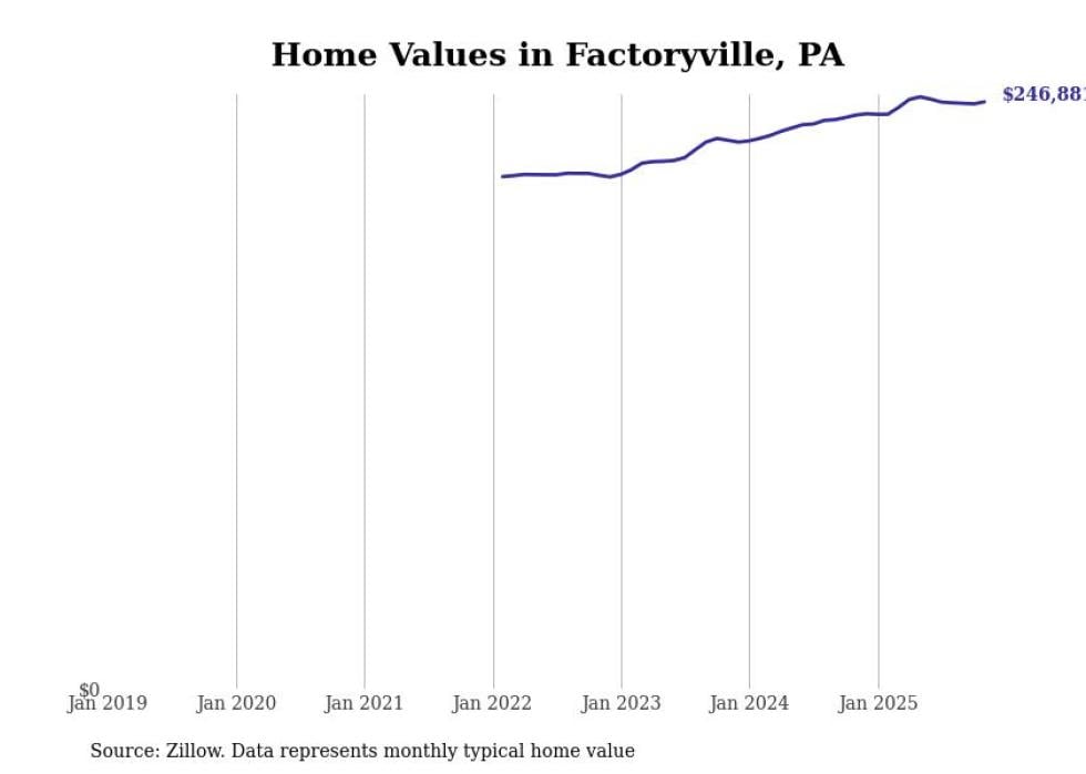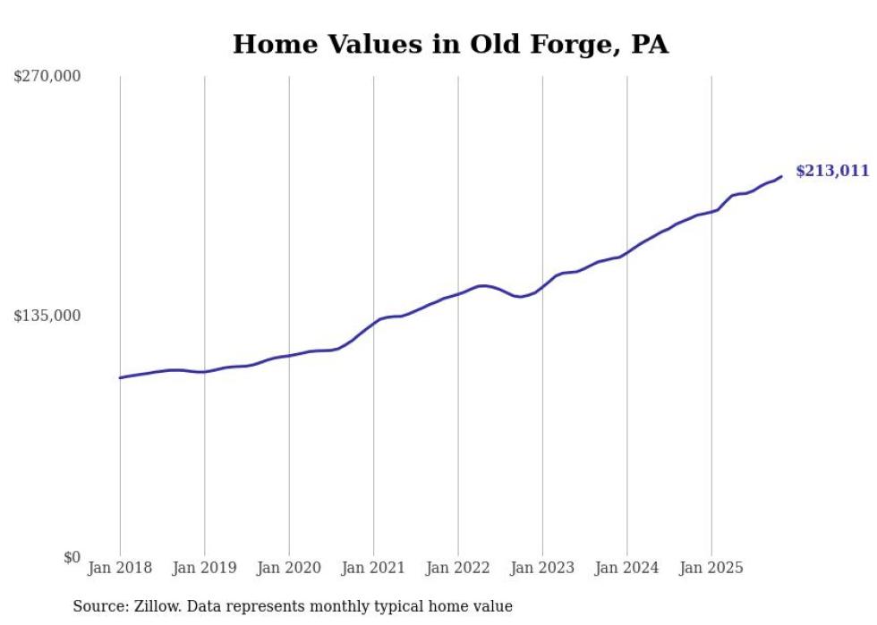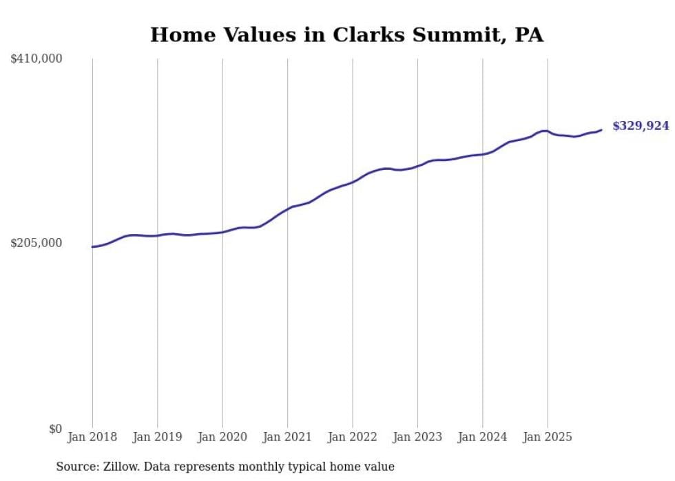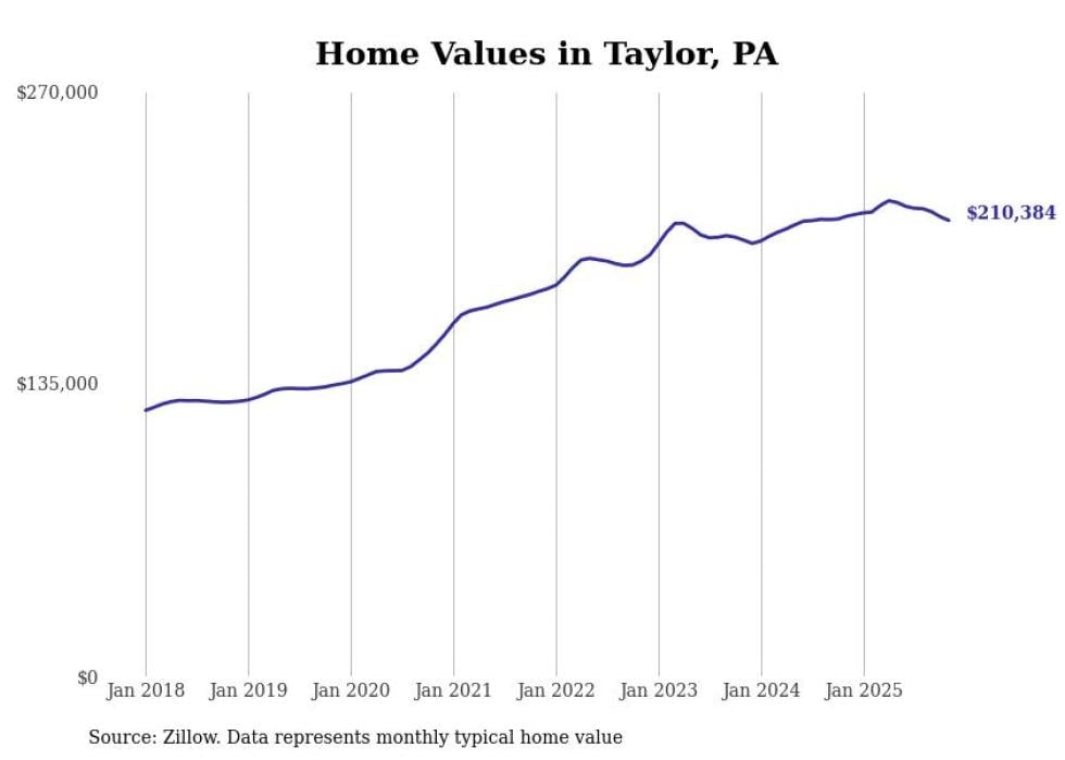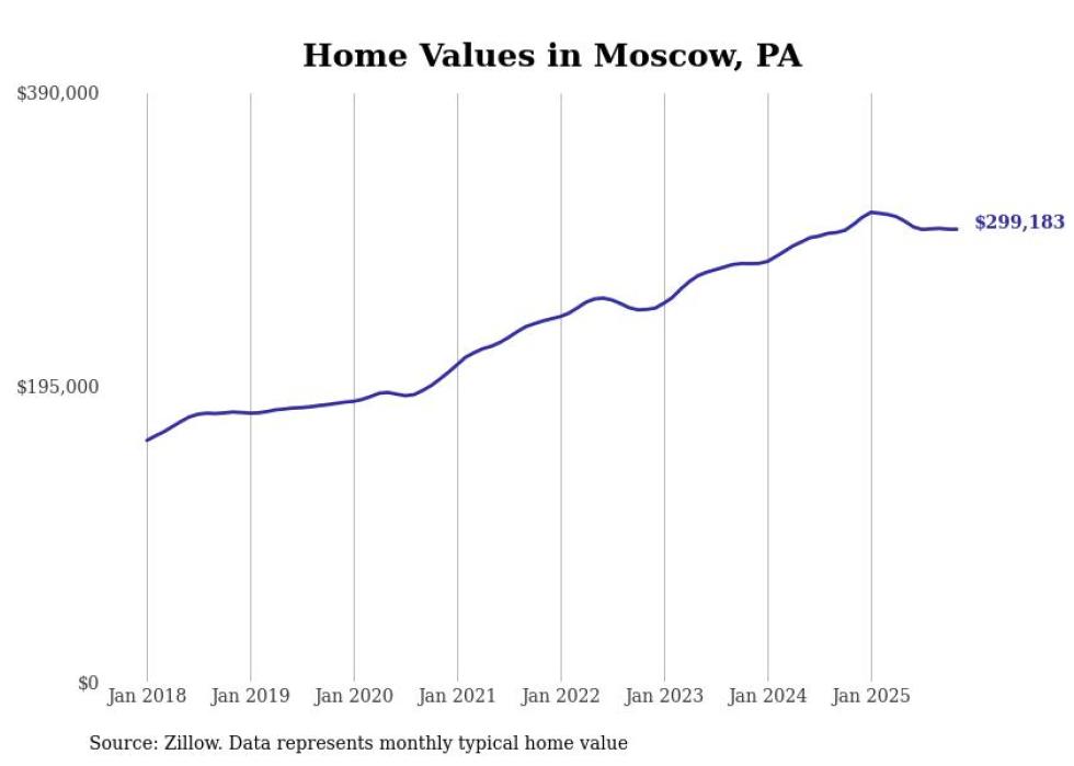 Stacker compiled a list of cities with the most expensive homes in the Scranton metro area using data from Zillow. Charts show the monthly typical home value since January 2018. Data was available for 46 cities and towns.
