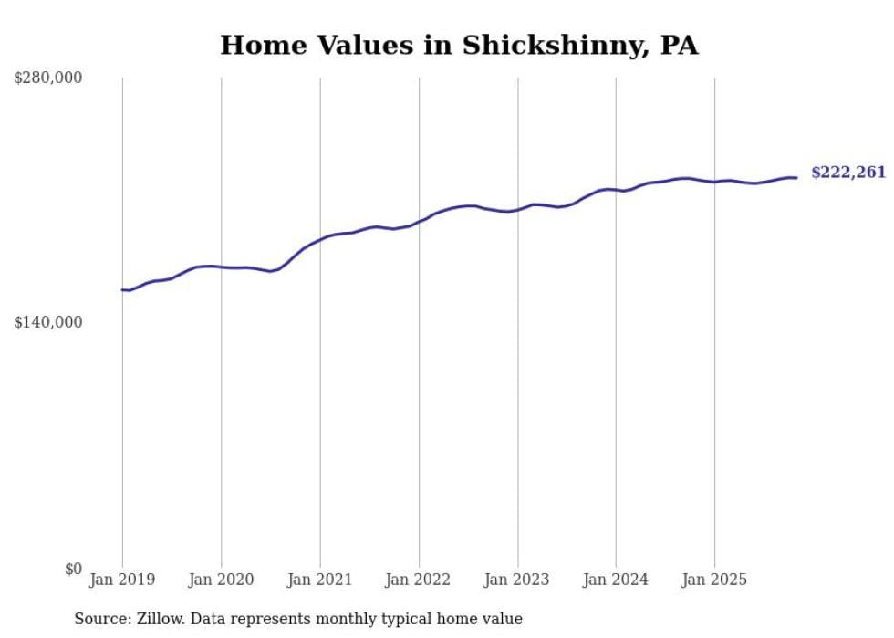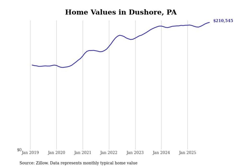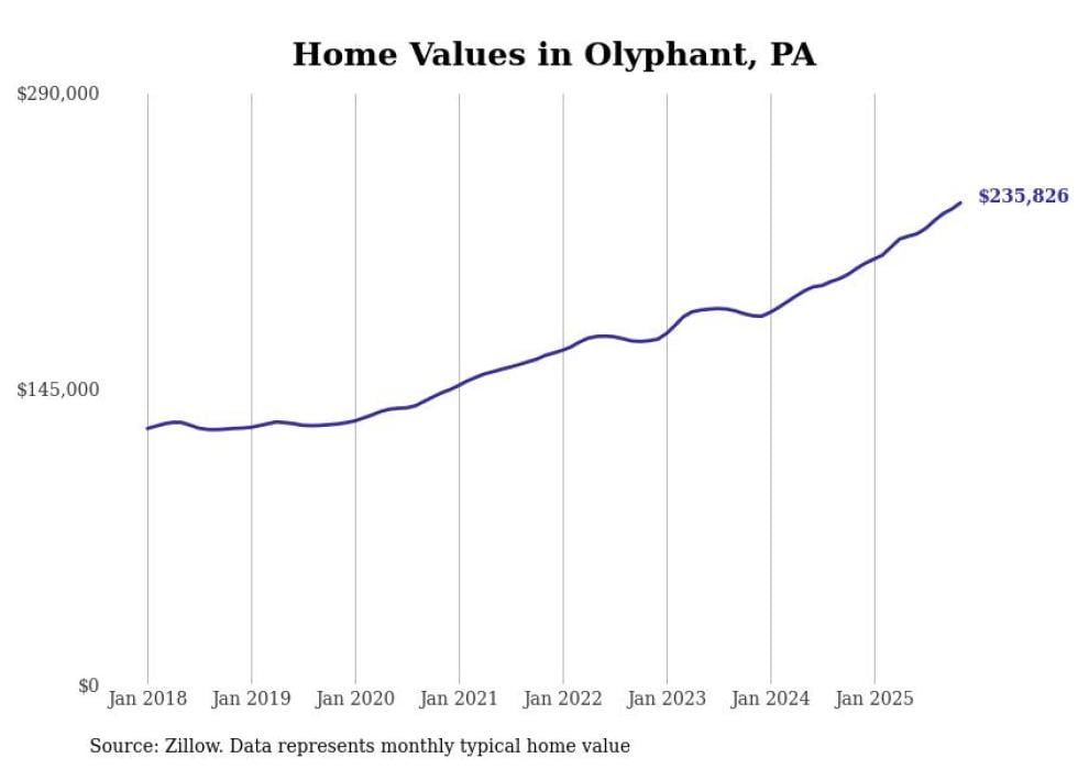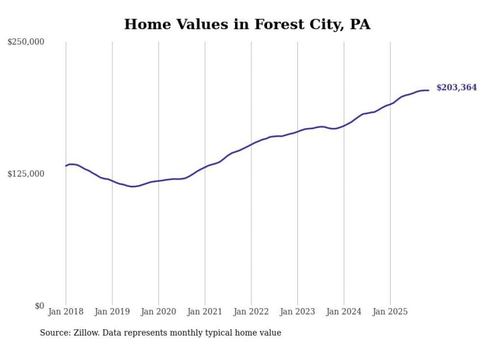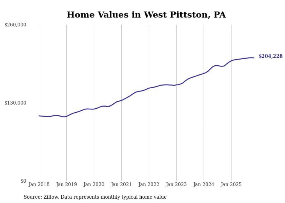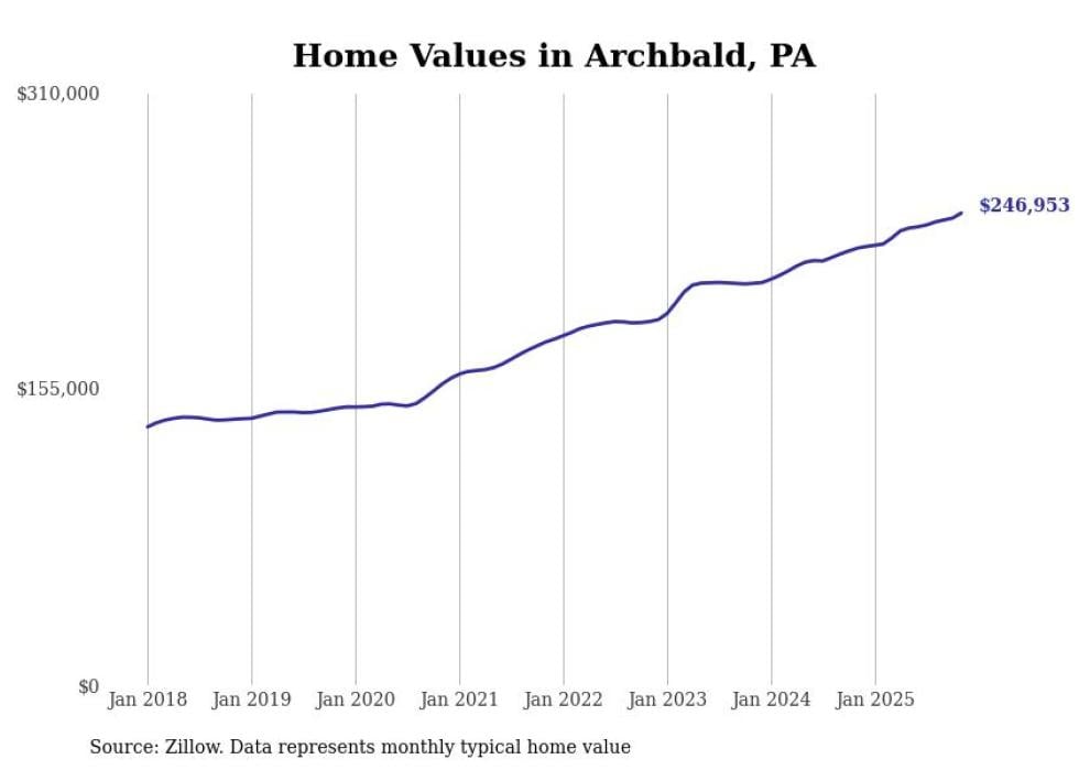 Stacker compiled a list of cities with the most expensive homes in the Scranton metro area using data from Zillow. Charts show the monthly typical home value since January 2018. Data was available for 46 cities and towns.
