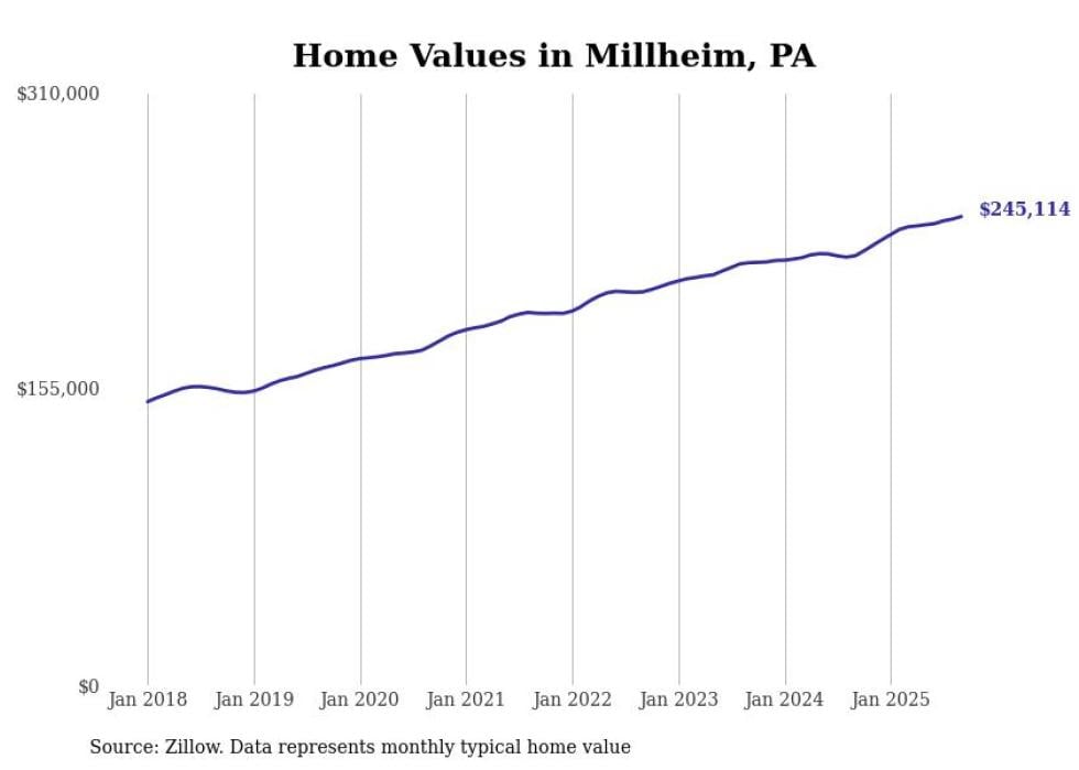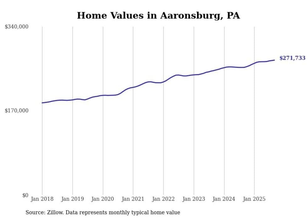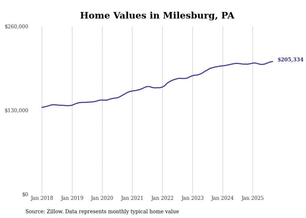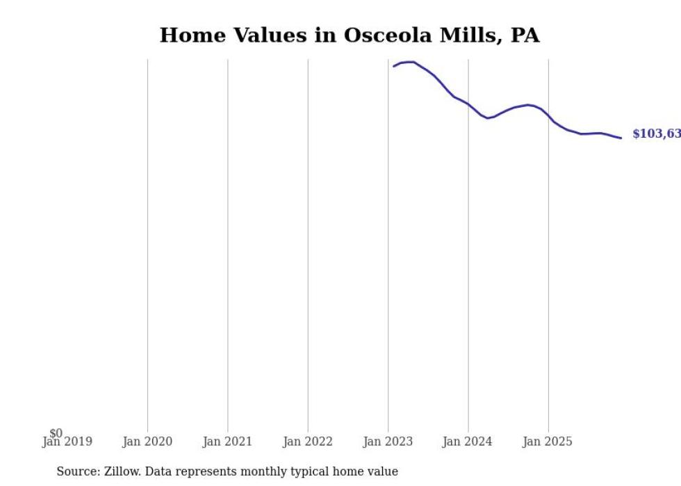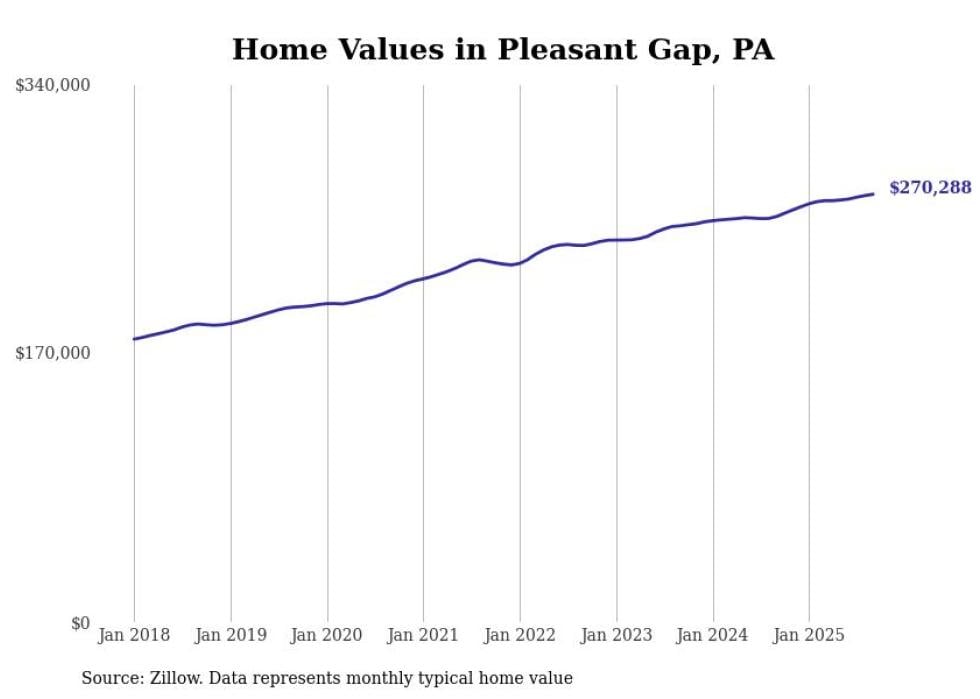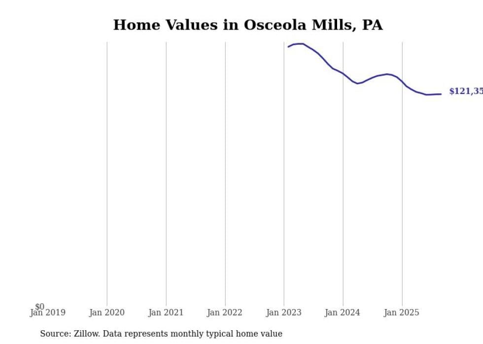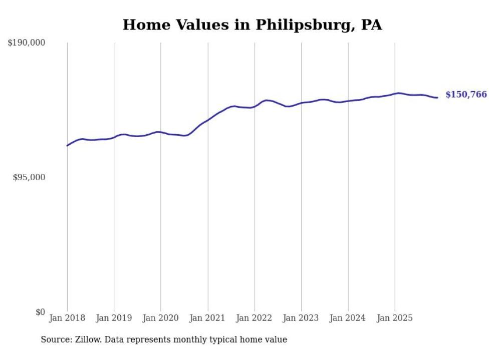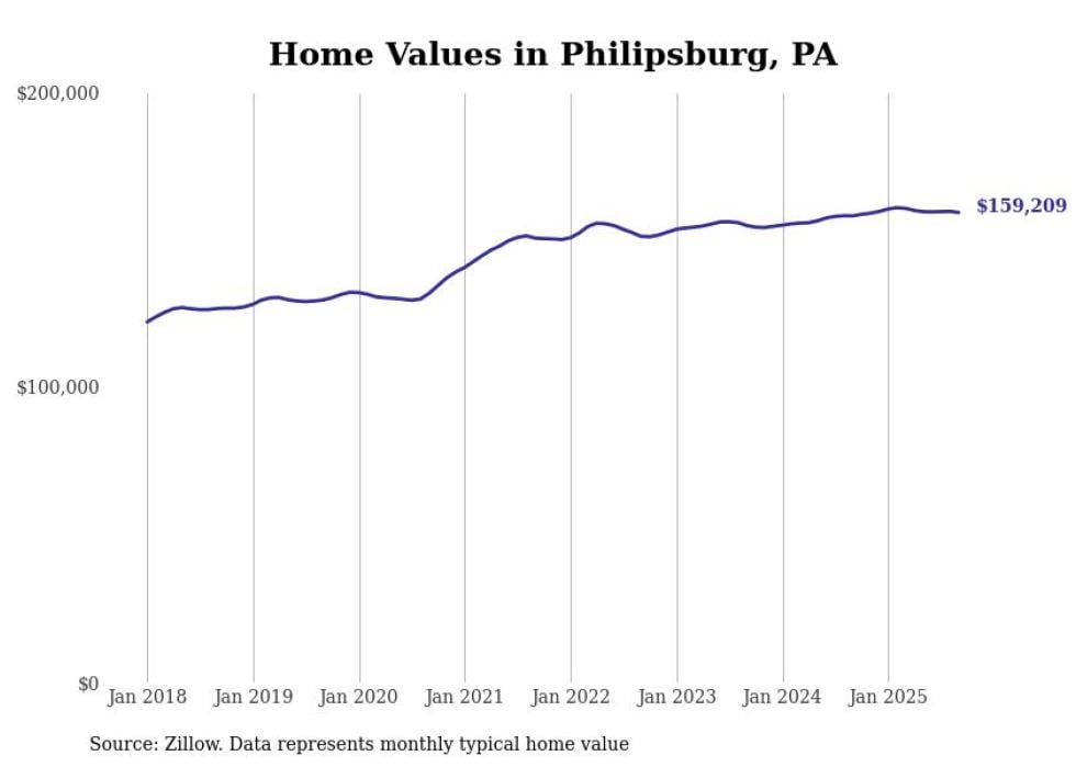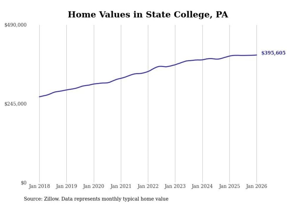 Stacker compiled a list of cities with the most expensive homes in the State College, PA metro area using data from Zillow. Charts show the monthly typical home value since January 2018.