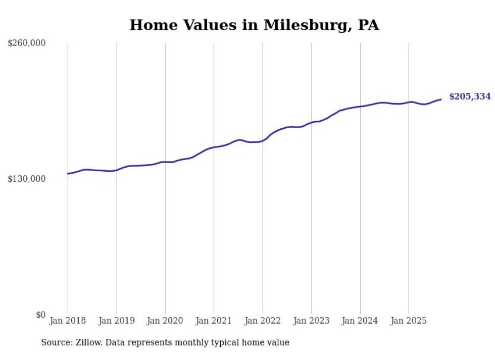 Stacker compiled a list of cities with the most expensive homes in the State College metro area using data from Zillow. Charts show the monthly typical home value since January 2018. All 15 cities and towns with data available were included in the list.
