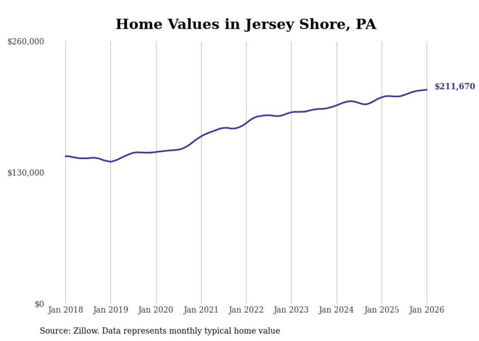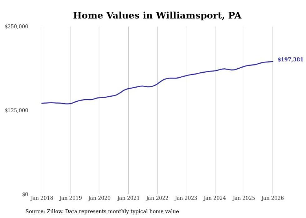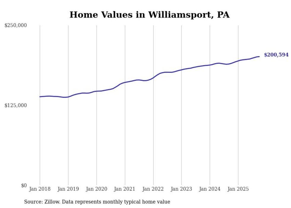 Cities with the fastest-growing home prices in the Williamsport metro area