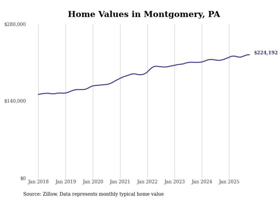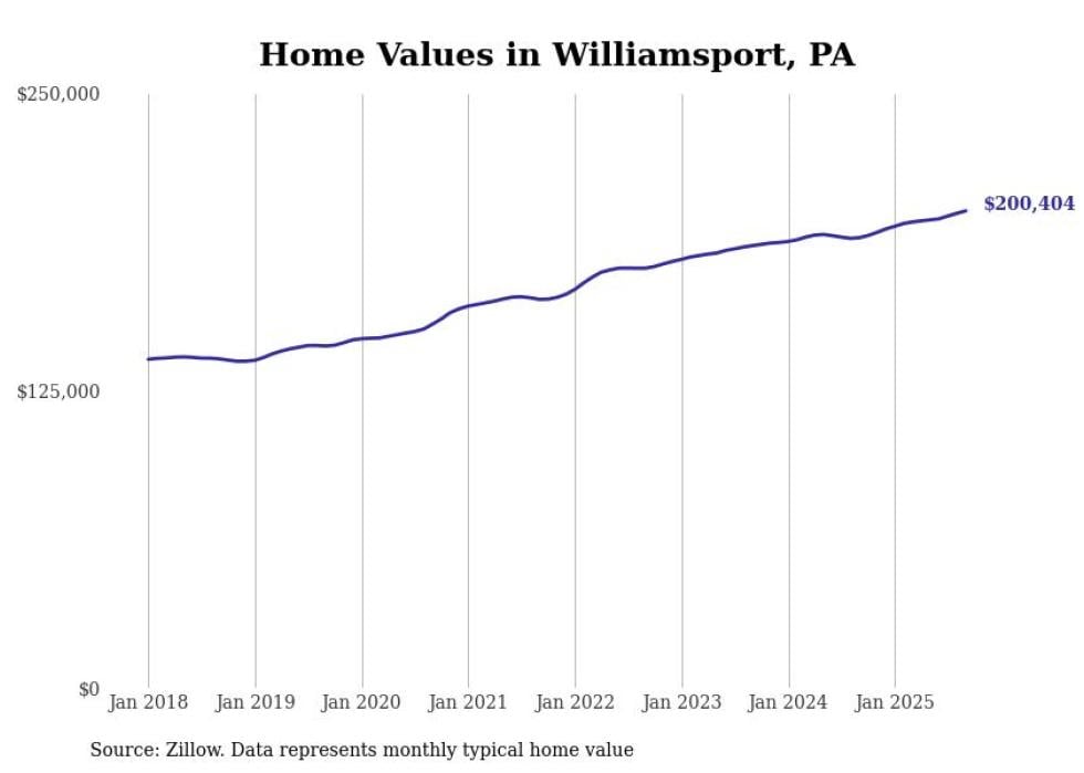 Stacker compiled a list of cities with the most expensive homes in the Williamsport, PA metro area using data from Zillow. Charts show the monthly typical home value since January 2018.