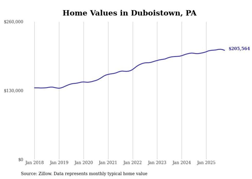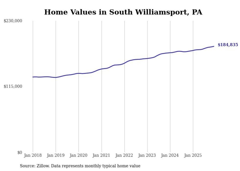 Stacker compiled a list of cities with the most expensive homes in the Williamsport metro area using data from Zillow. Charts show the monthly typical home value since January 2018. All 7 cities and towns with data available were included in the list.