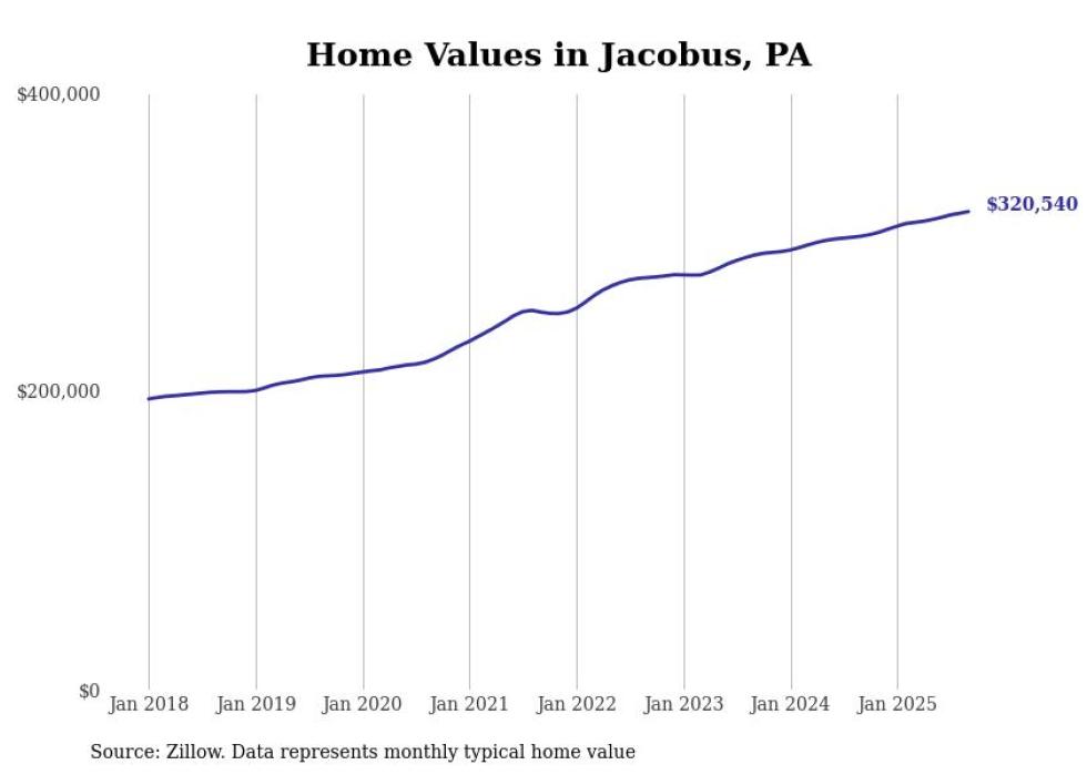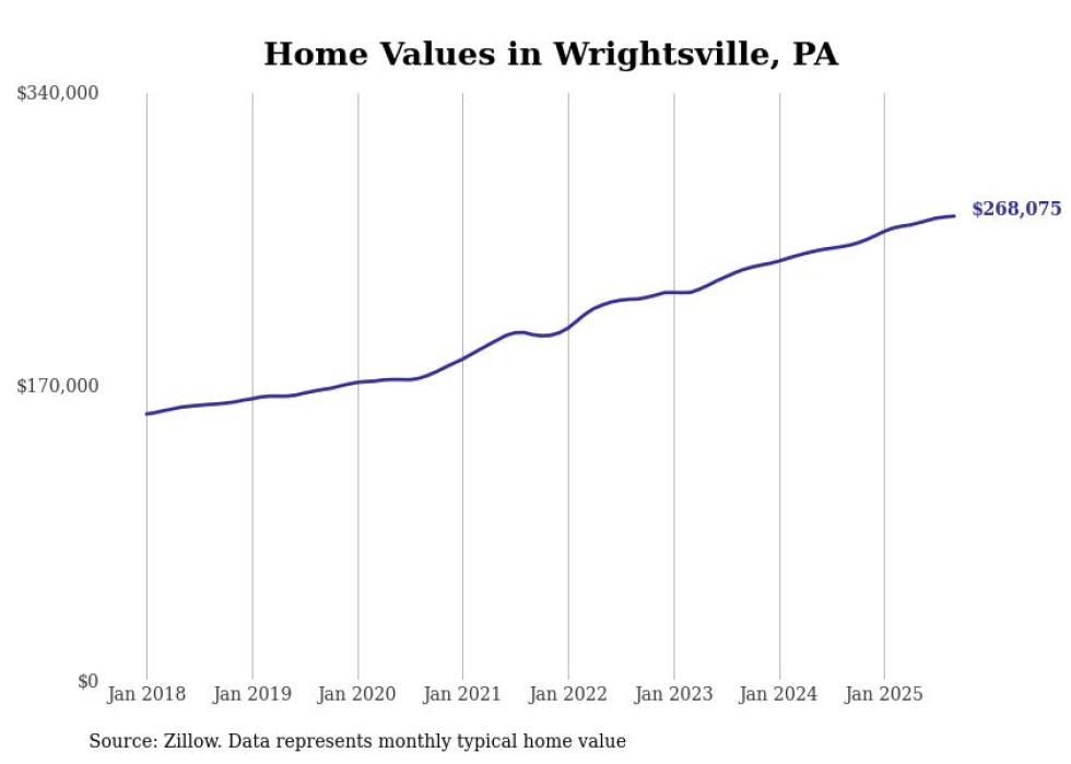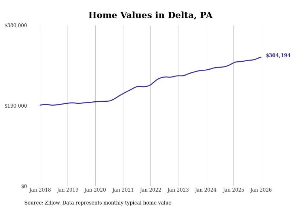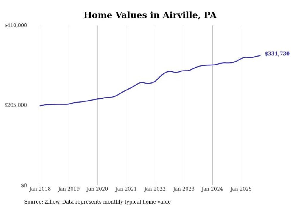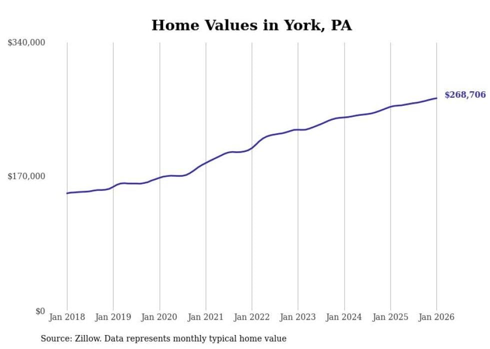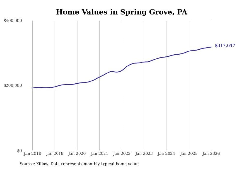 Stacker compiled a list of cities with the most expensive homes in the York-Hanover, PA metro area using data from Zillow. Charts show the monthly typical home value since January 2018.
