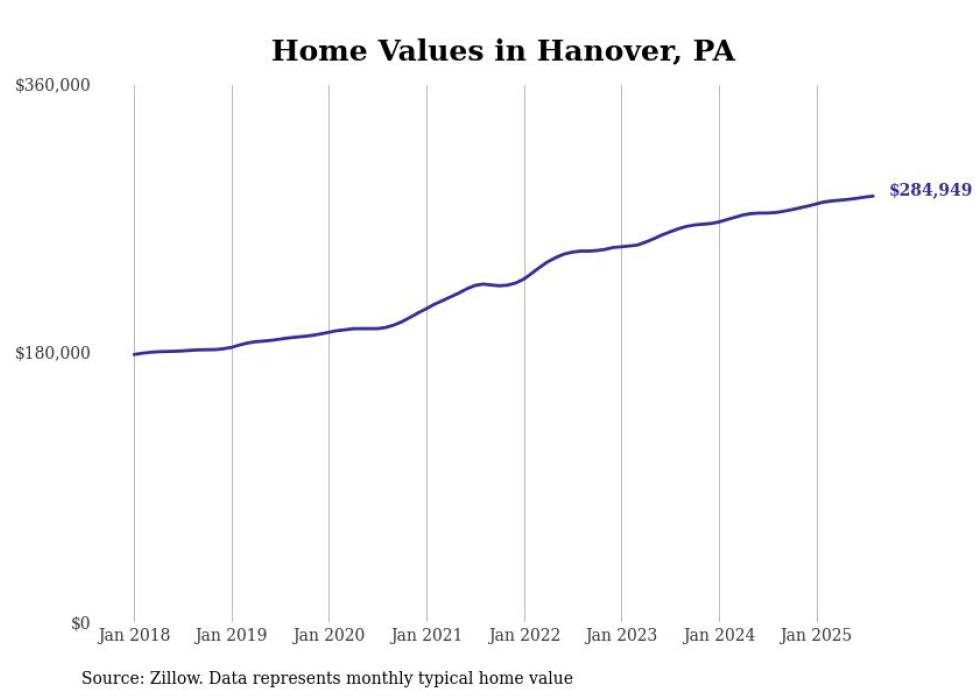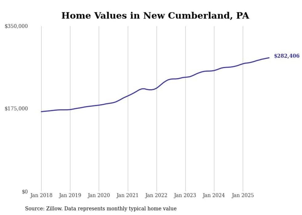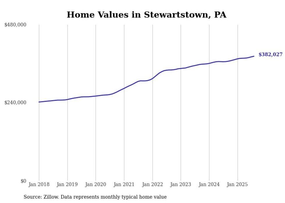 Stacker compiled a list of cities with the most expensive homes in the York metro area using data from Zillow. Charts show the monthly typical home value since January 2018. All 24 cities and towns with data available were included in the list.