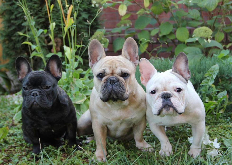 The companionable French bulldogs descend from bulldogs in England's lace-making regions who moved with their owners to France during the Industrial Revolution. The French bulldogs became popular in Parisian cafe society and can be spotted in paintings by Edgar Degas and Toulouse-Lautrec. They don't bark much but do like to snuffle and make other noises when excited.