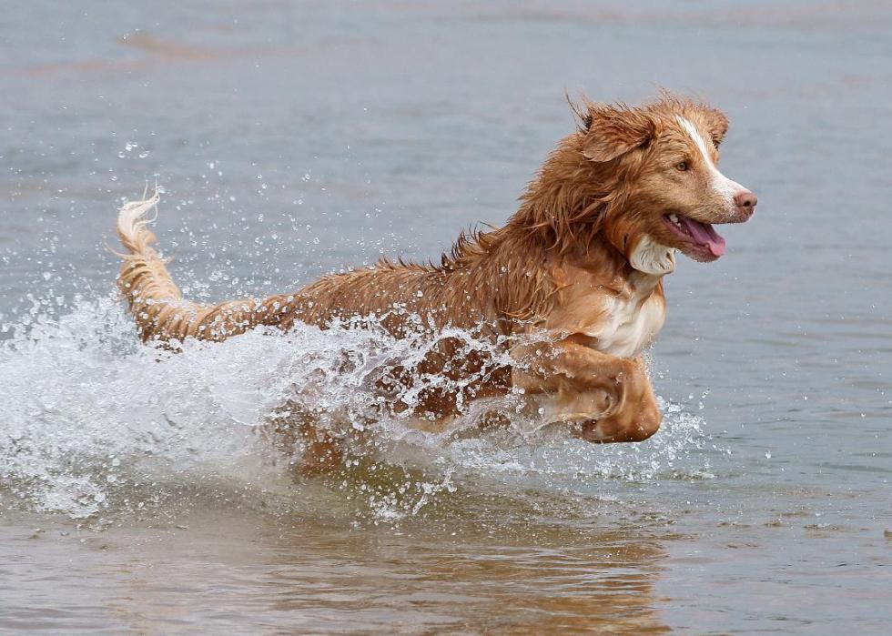 The Nova Scotia duck tolling retriever historically was used to trap ducks. The breed resembles a fox, and it would draw the attention of the water birds that were lured into the range of hunters. The dogs may not bark, but they are known to let out a piercing, high-pitched scream when excited.