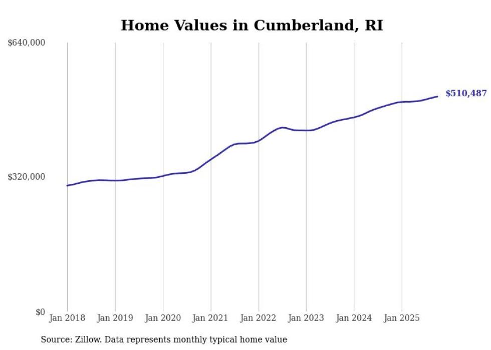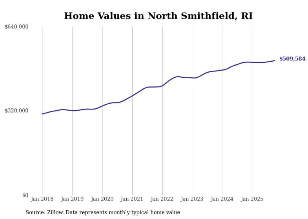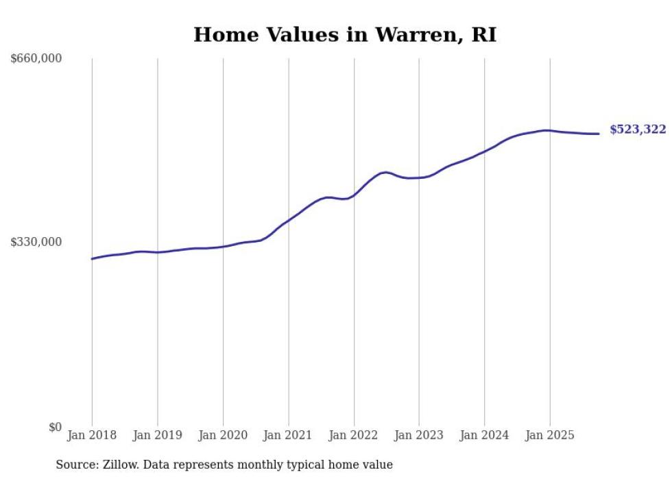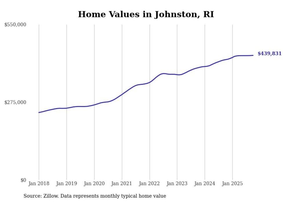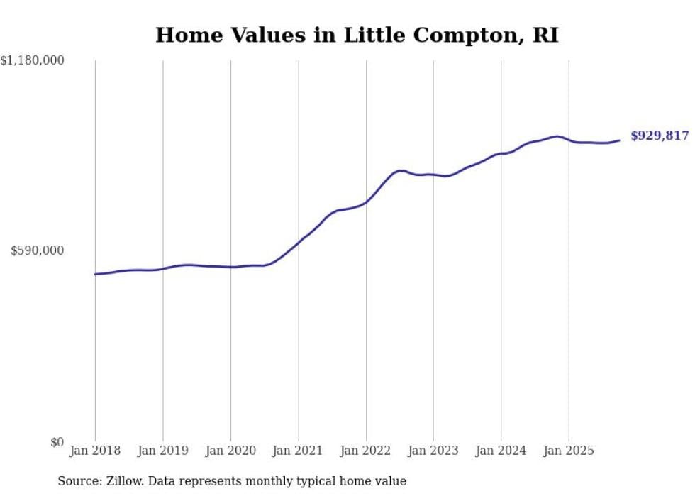 Stacker compiled a list of cities with the most expensive homes in Rhode Island using data from Zillow. Cities are ranked by the Zillow Home Values Index for all homes as of October 2025. The charts in this story were created automatically using Matplotlib.