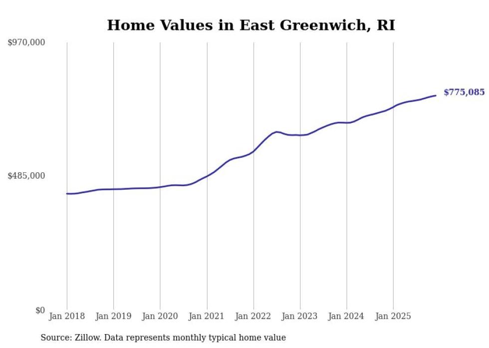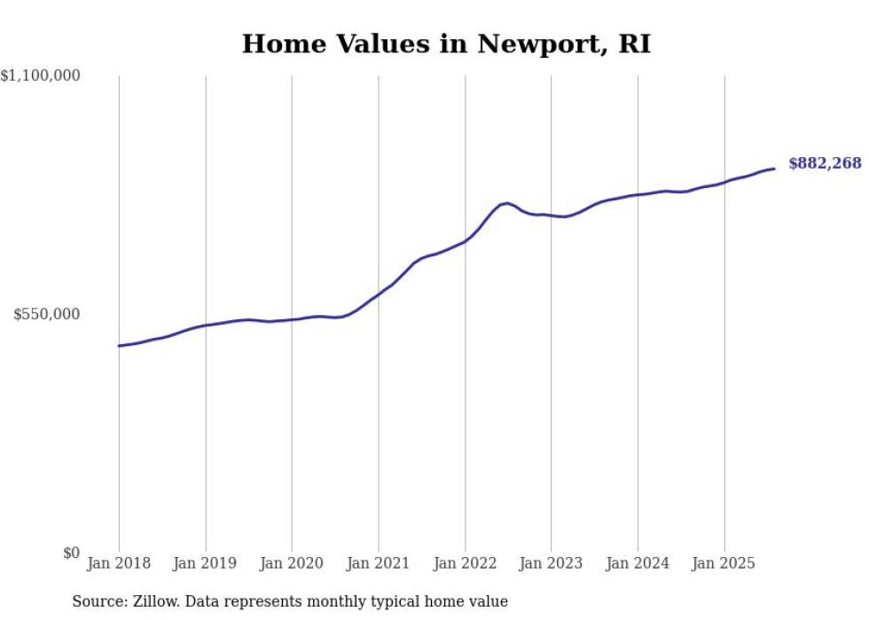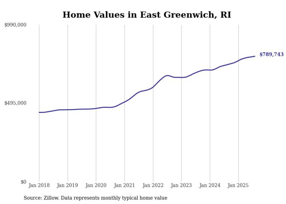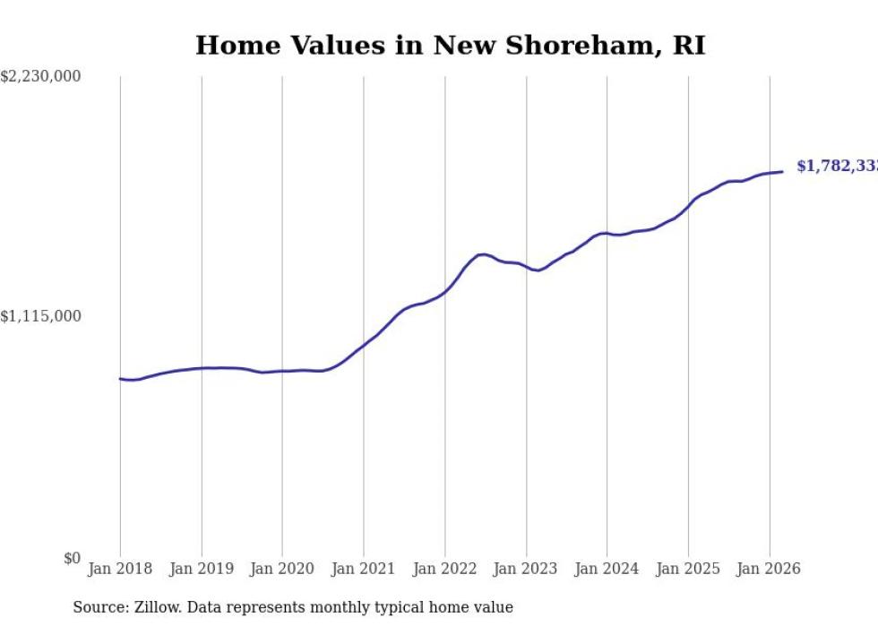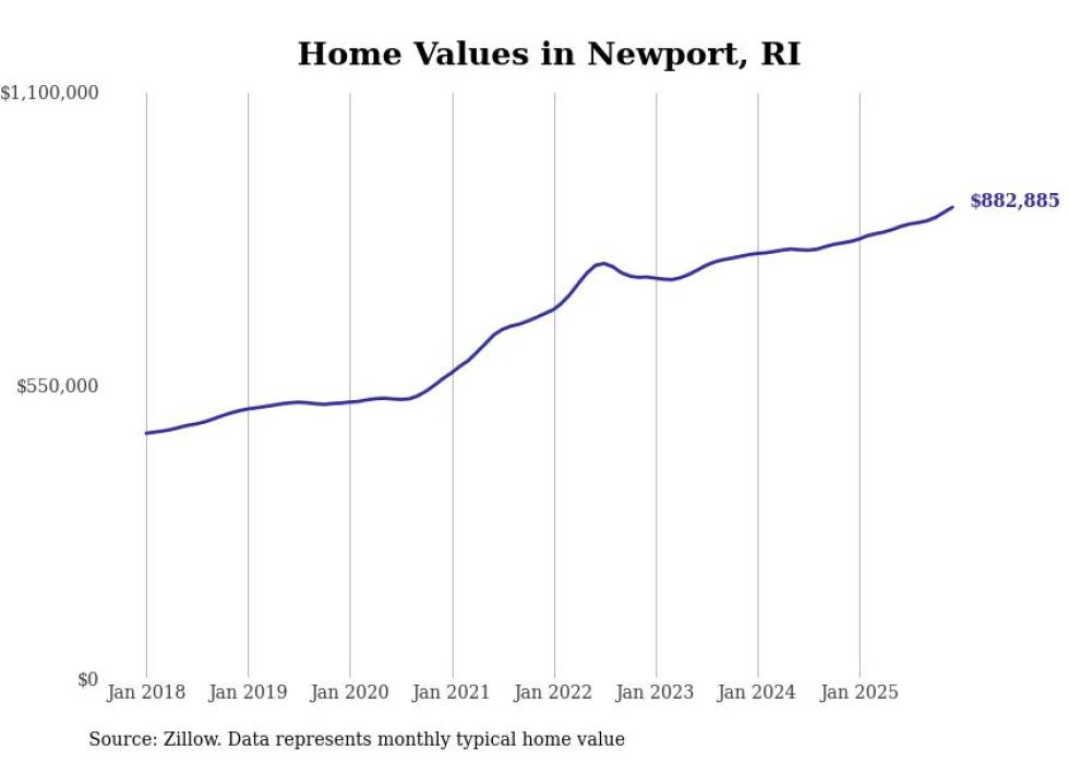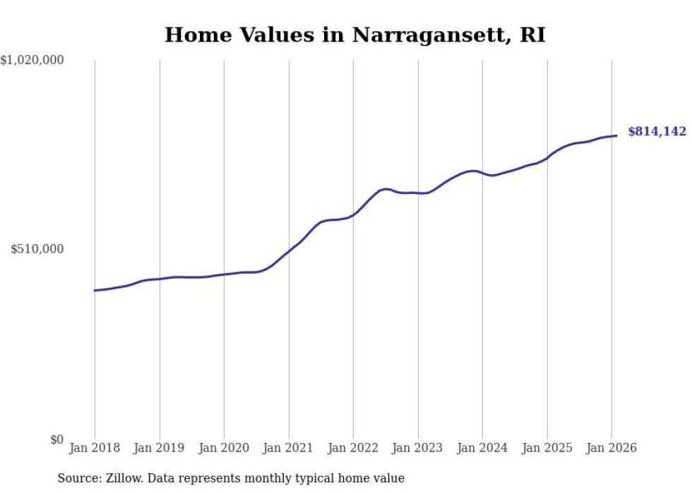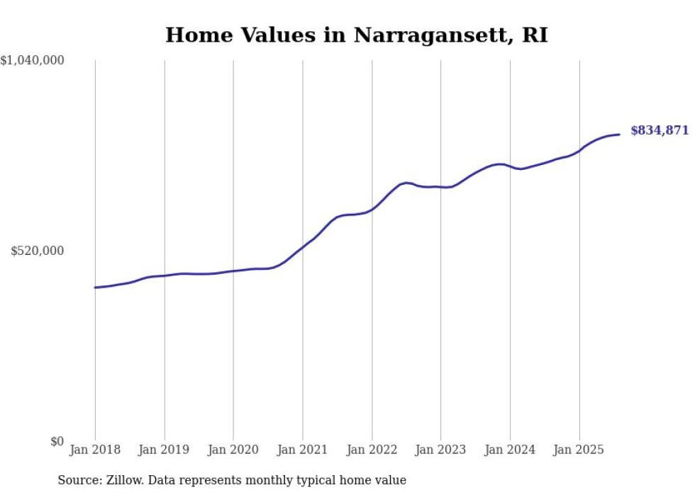 Stacker compiled a list of cities with the most expensive homes in the Providence-Warwick, RI-MA metro area using data from Zillow. Charts show the monthly typical home value since January 2018.