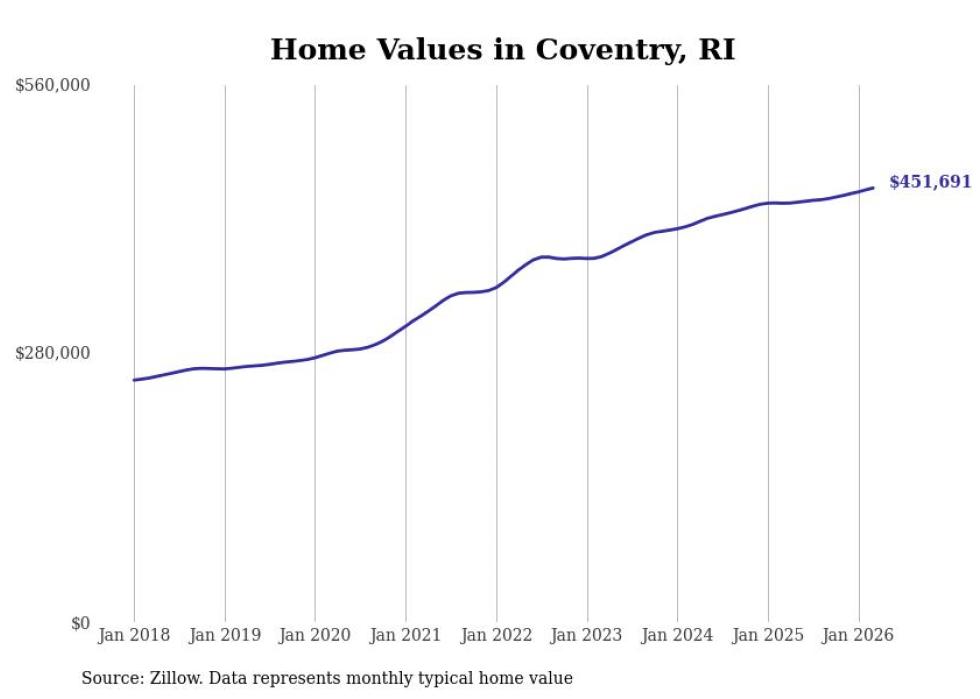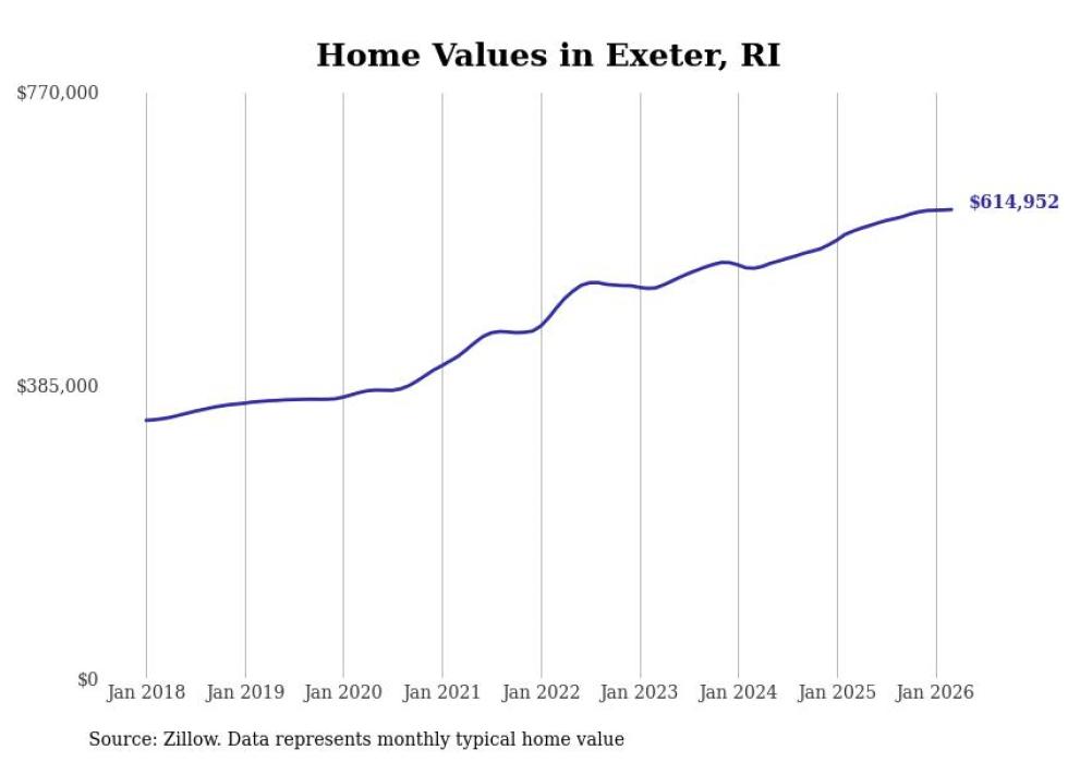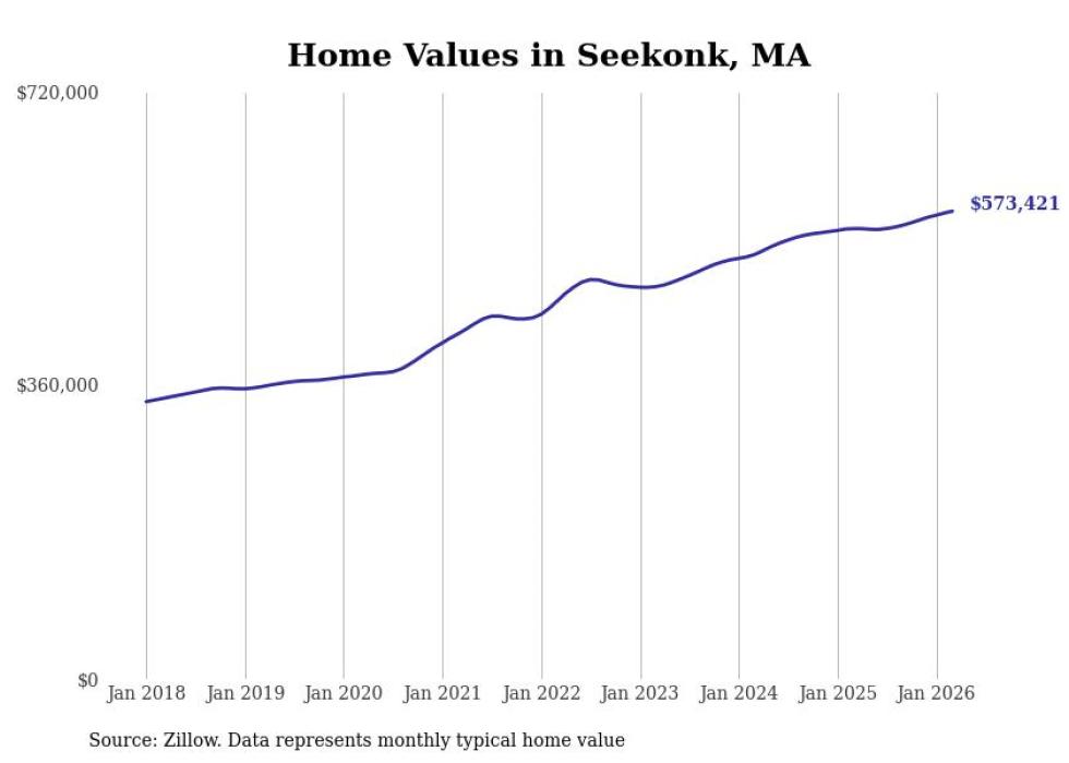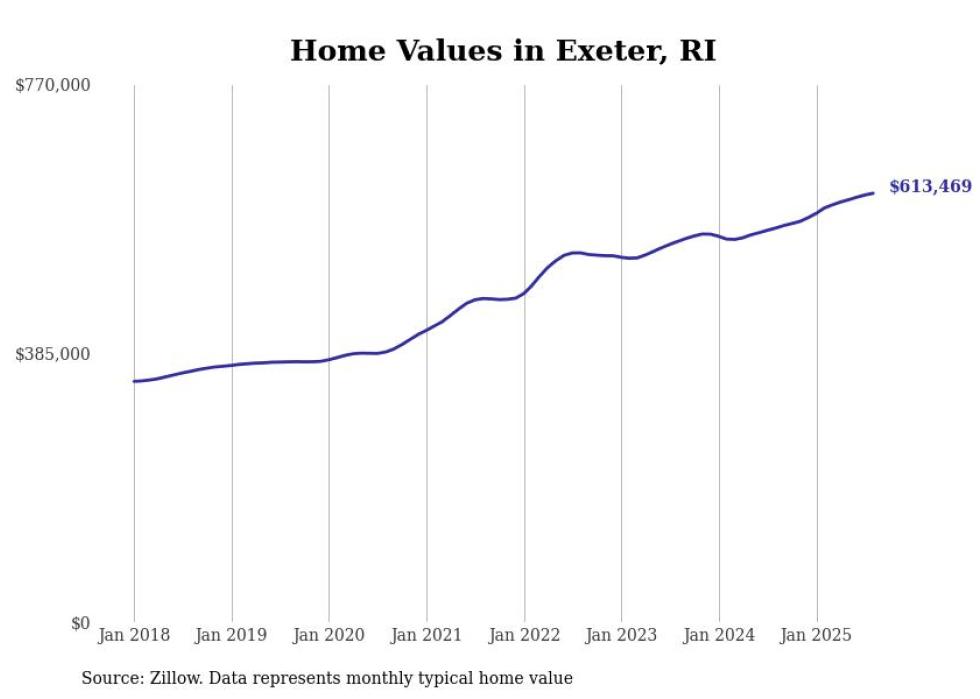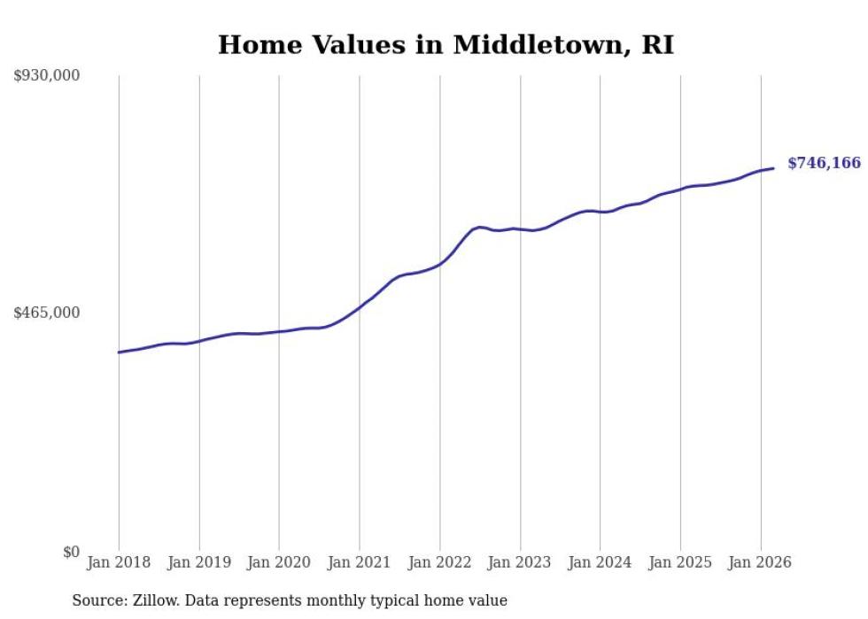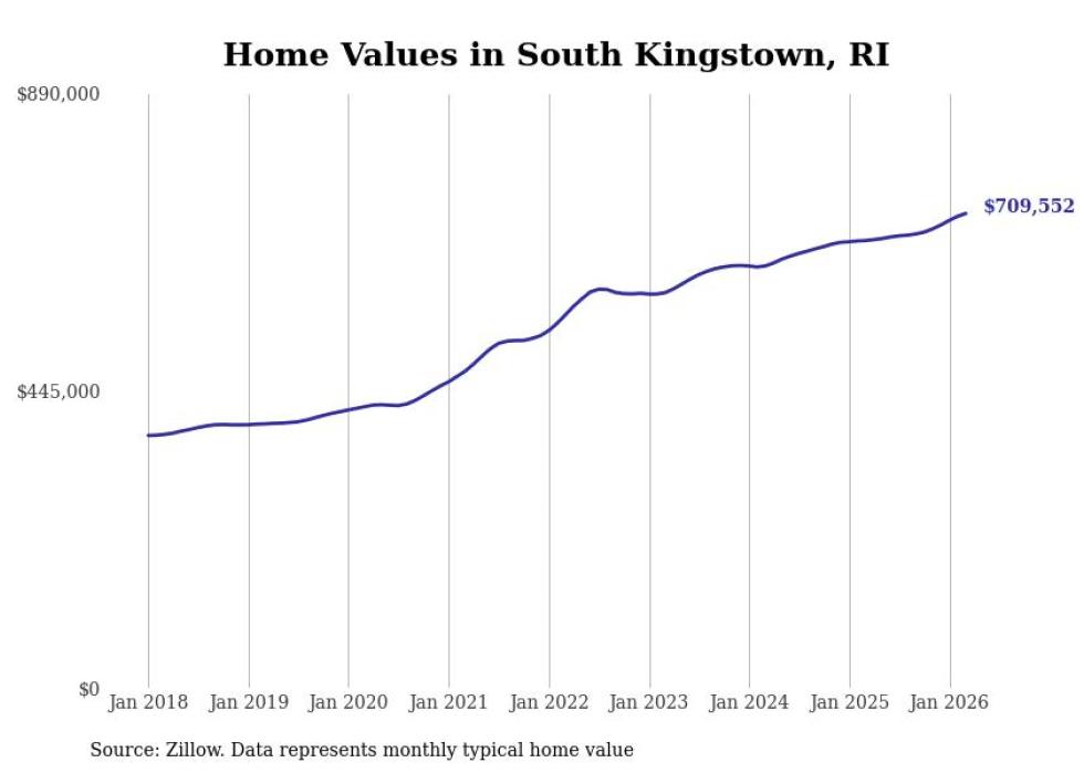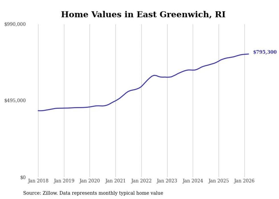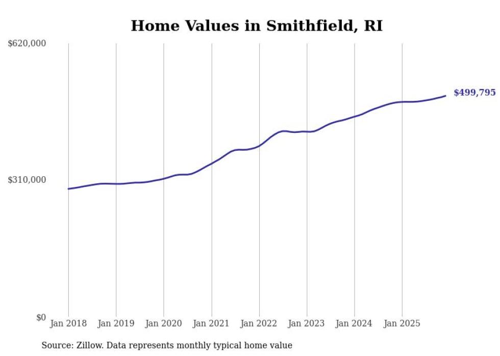 Stacker compiled a list of cities with the most expensive homes in the Providence-Warwick, RI-MA metro area using data from Zillow. Charts show the monthly typical home value since January 2018.