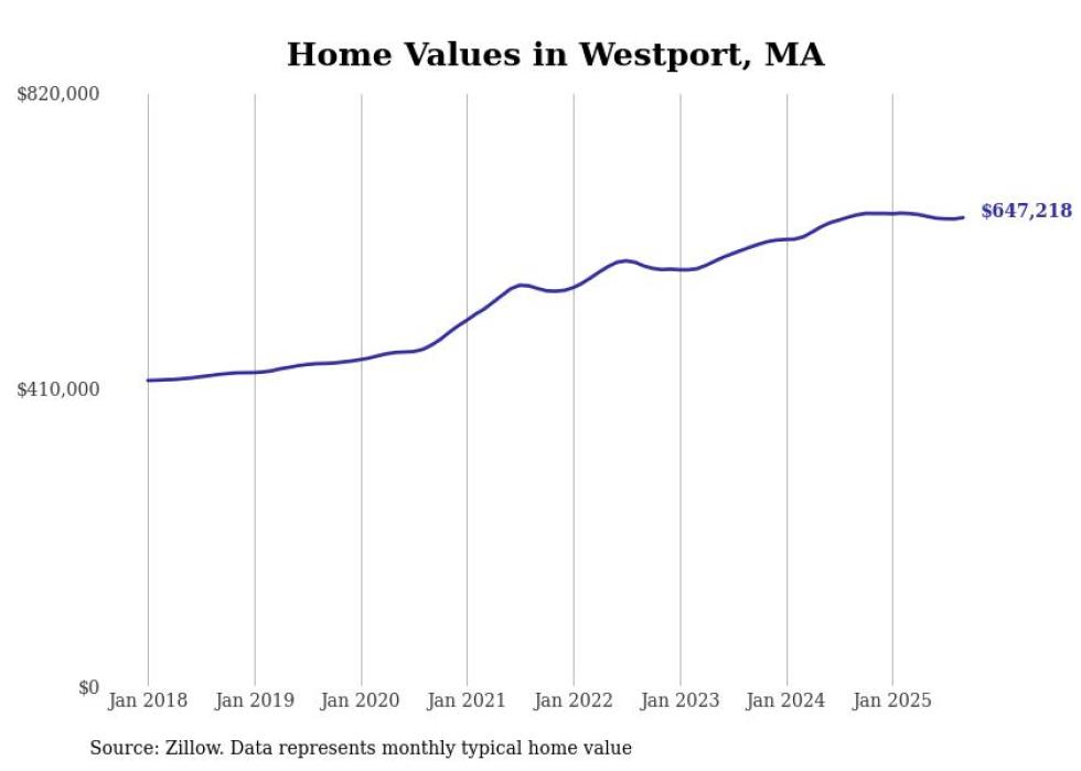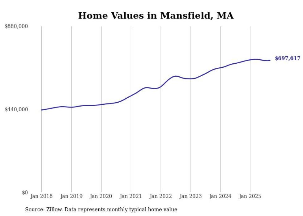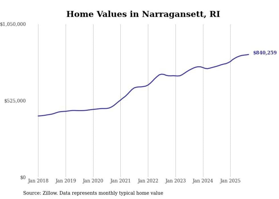 Stacker compiled a list of cities with the most expensive homes in the Providence metro area using data from Zillow. Charts show the monthly typical home value since January 2018. Data was available for 61 cities and towns.