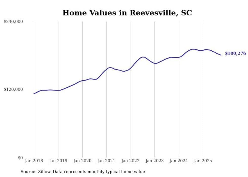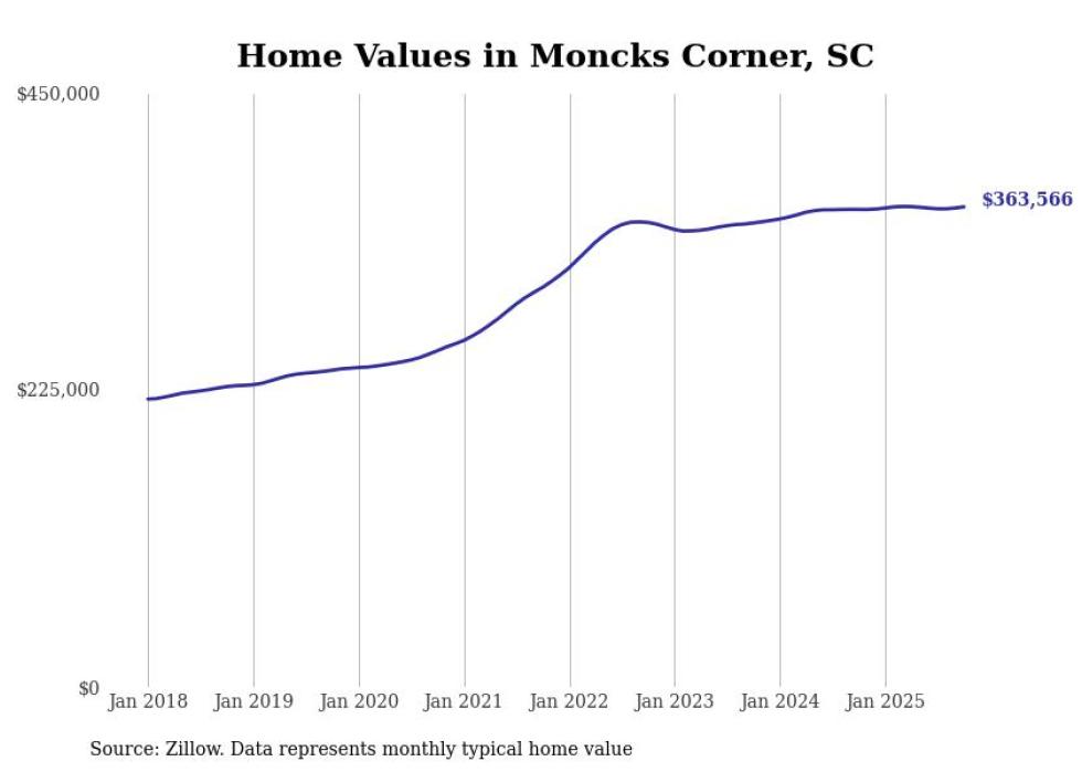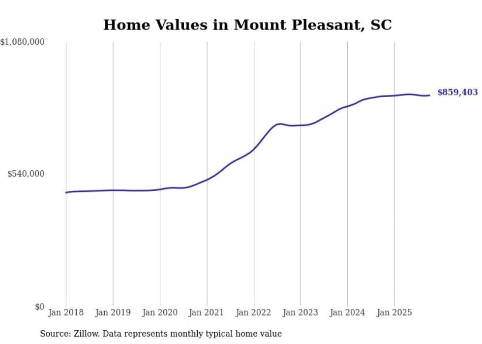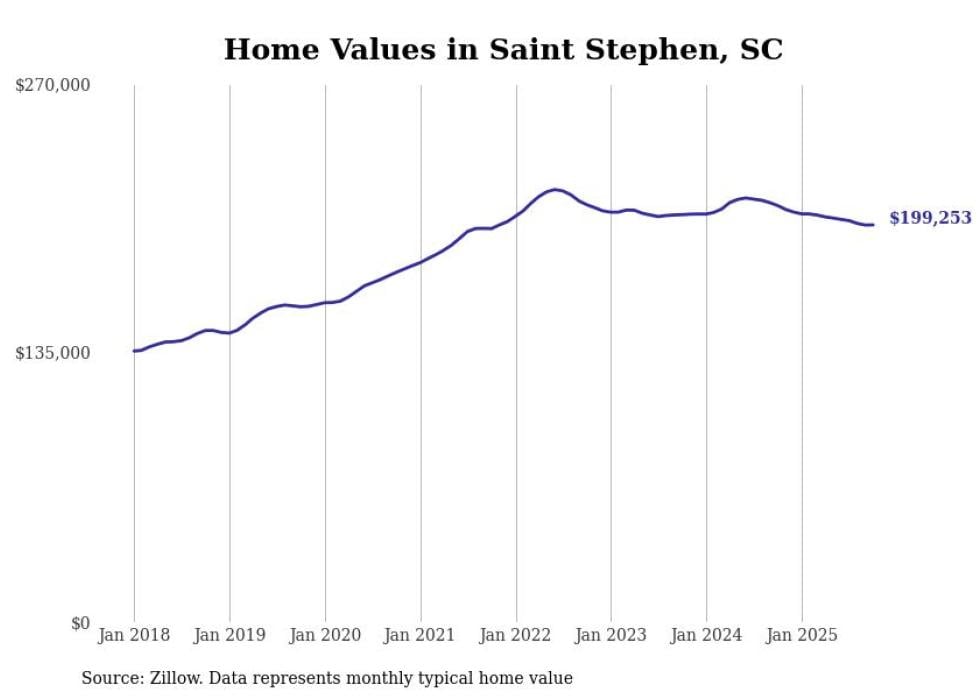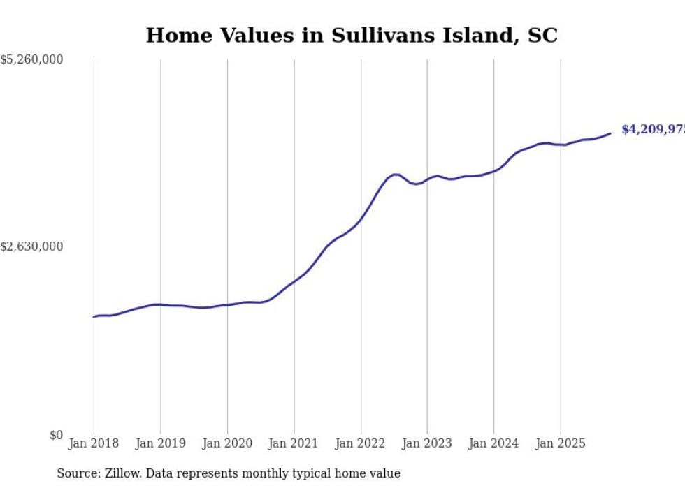 Stacker compiled a list of cities with the most expensive homes in the Charleston-North Charleston, SC metro area using data from Zillow. Charts show the monthly typical home value since January 2018.