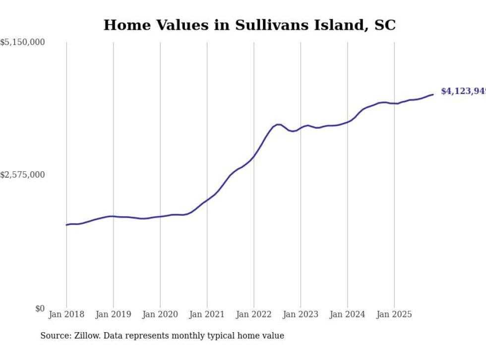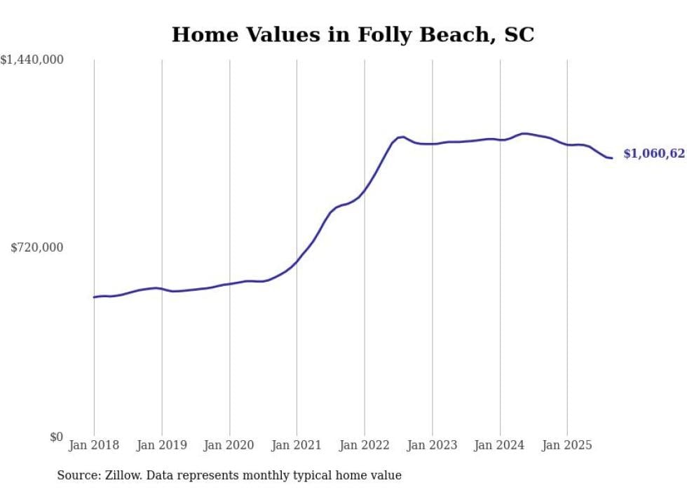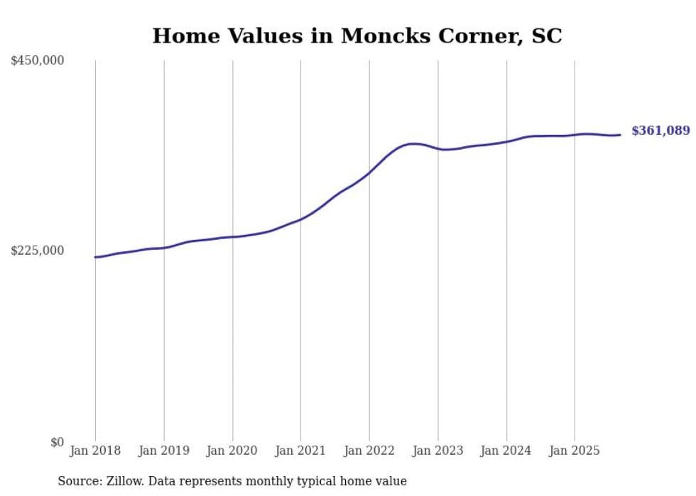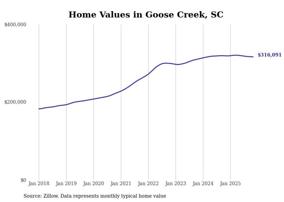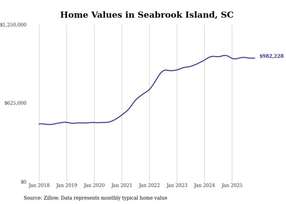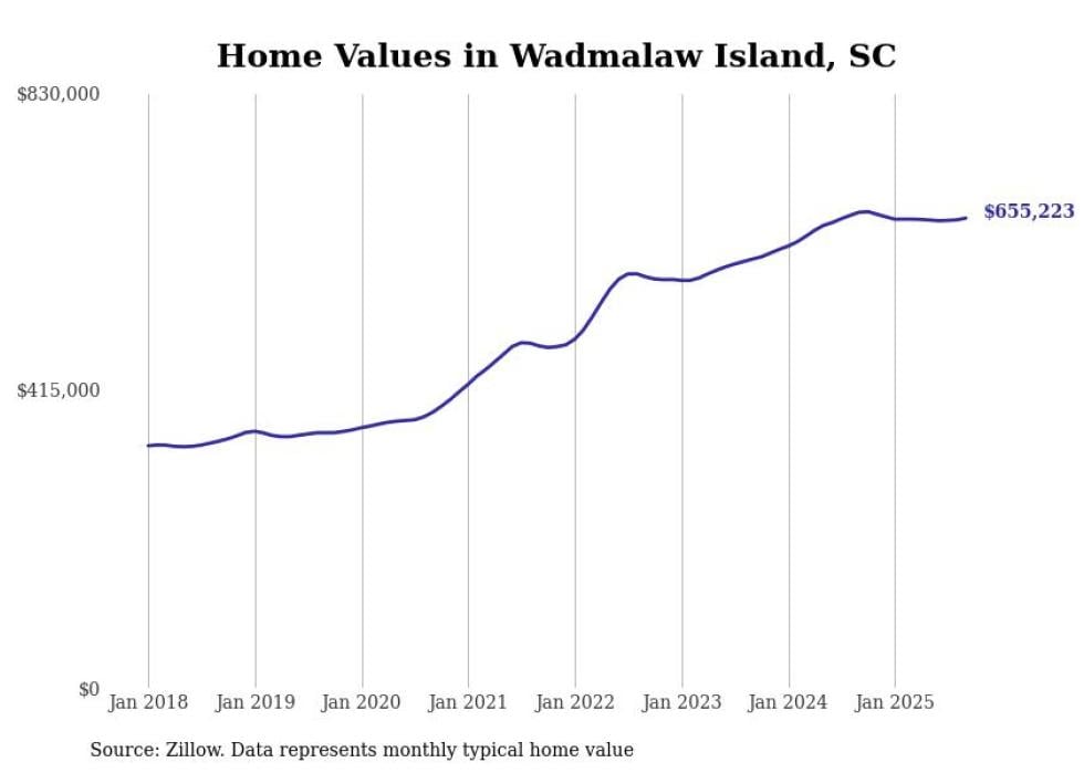 Stacker compiled a list of cities with the most expensive homes in the Charleston, South Carolina metro area using data from Zillow. Charts show the monthly typical home value since January 2018. Data was available for 35 cities and towns.