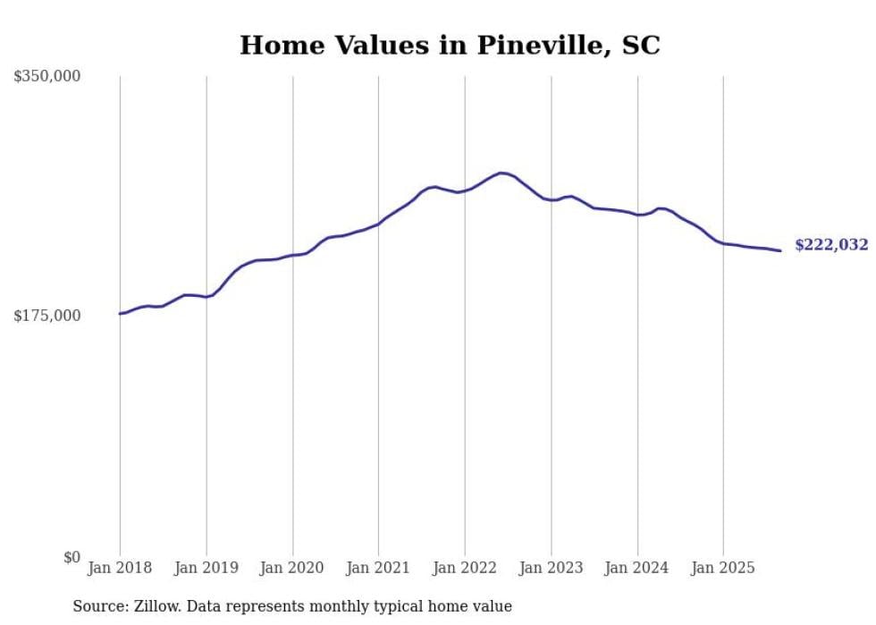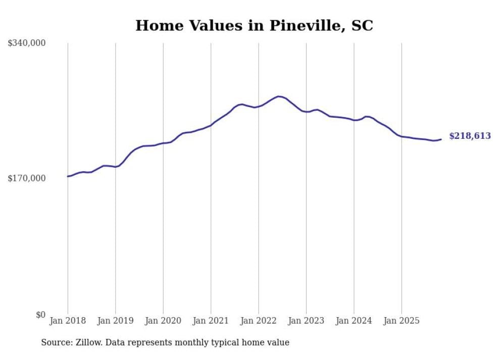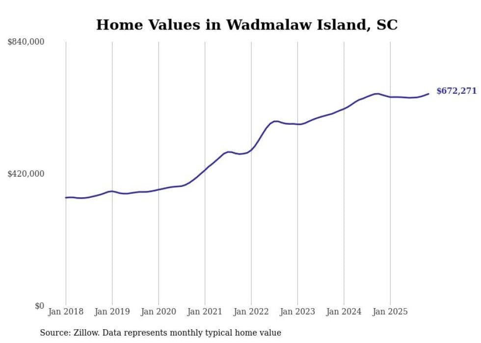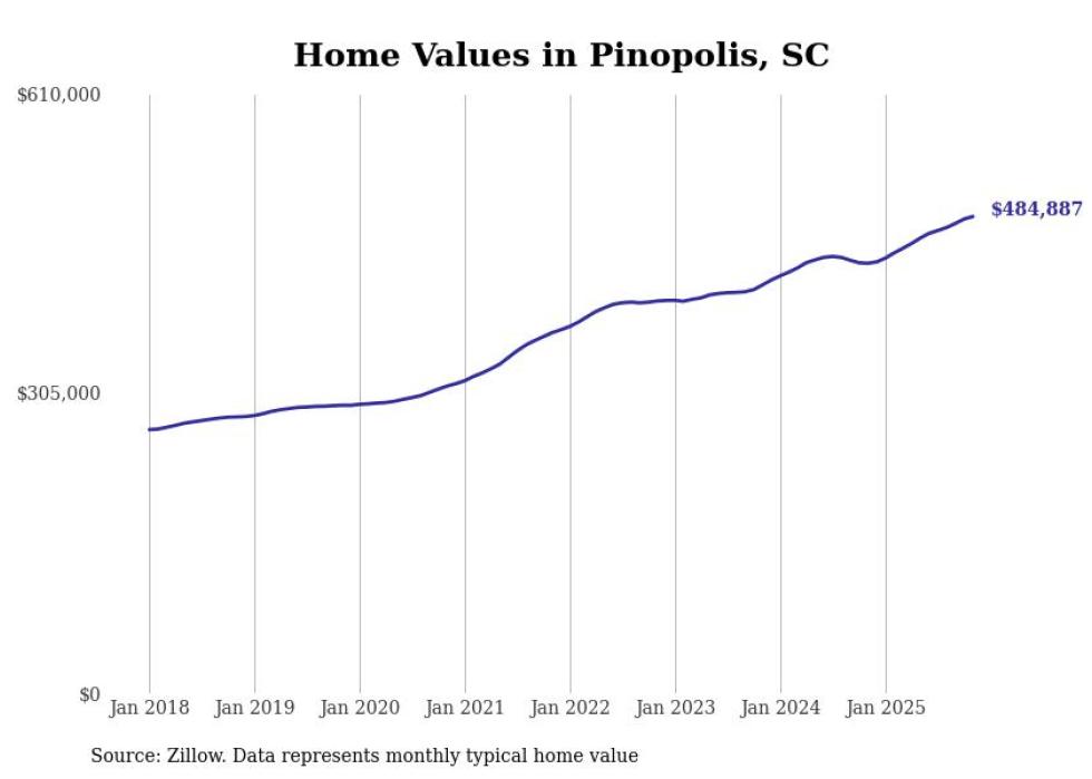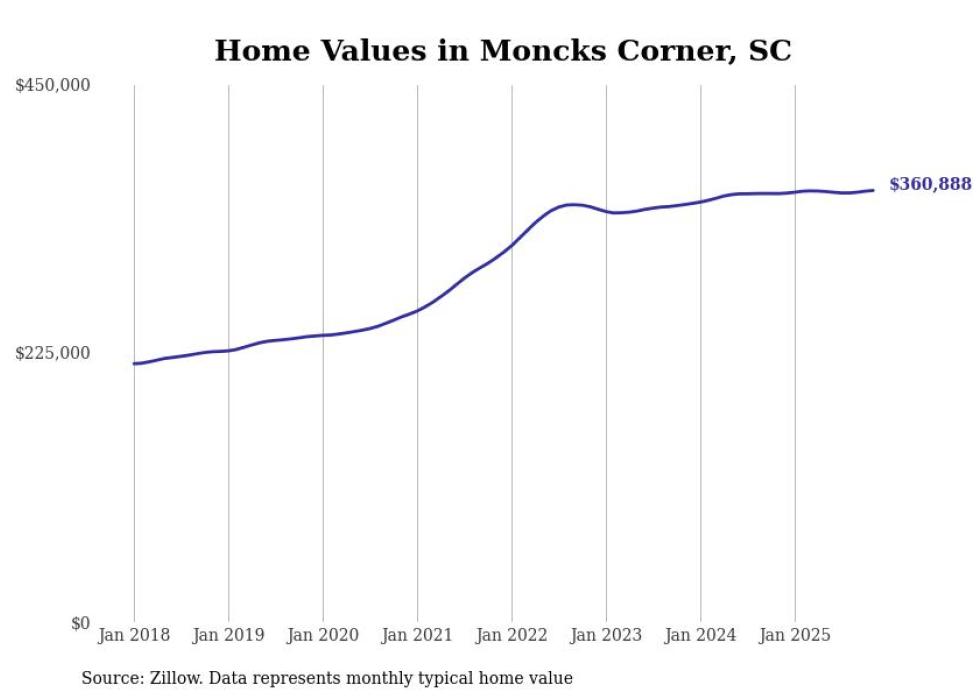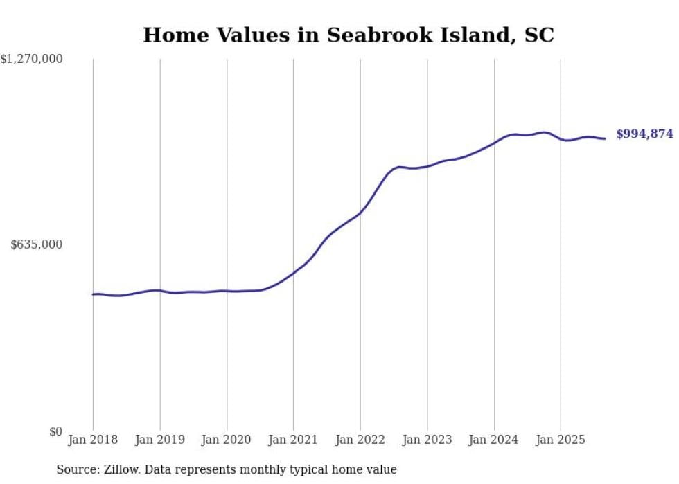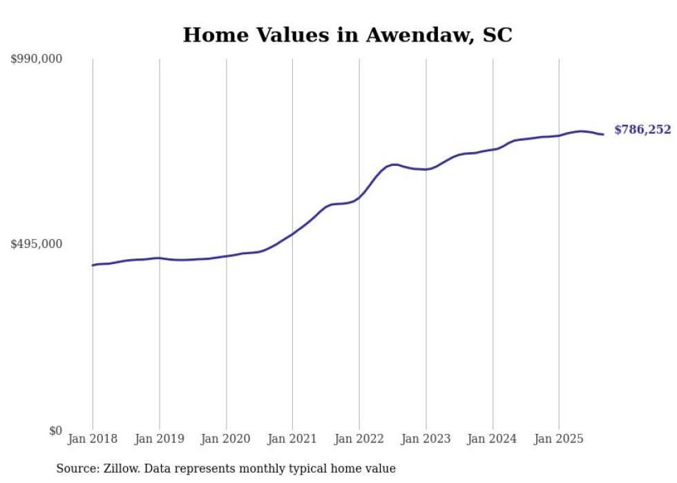 Stacker compiled a list of cities with the most expensive homes in the Charleston, South Carolina metro area using data from Zillow. Charts show the monthly typical home value since January 2018. Data was available for 35 cities and towns.