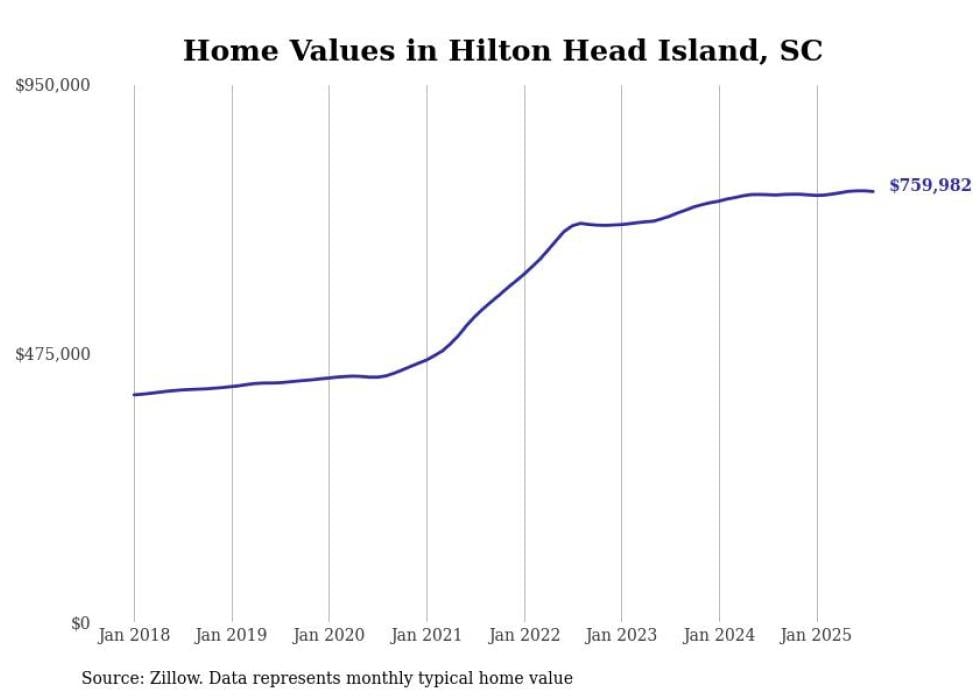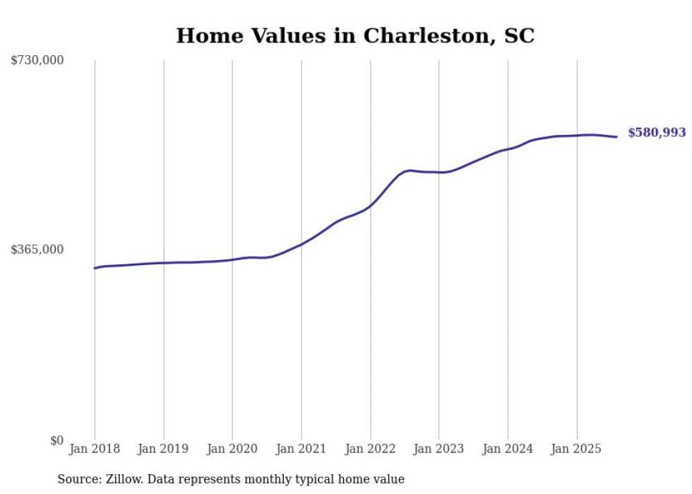 Stacker compiled a list of cities with the most expensive homes in South Carolina using data from Zillow. Cities are ranked by the Zillow Home Values Index for all homes as of August 2025. The charts in this story were created automatically using Matplotlib.