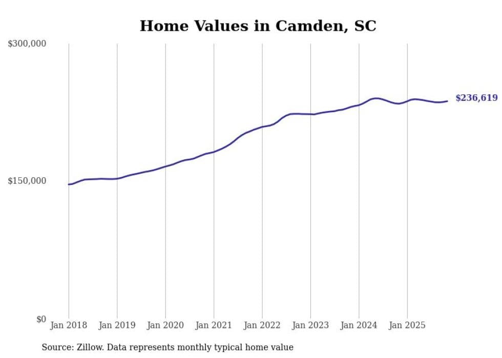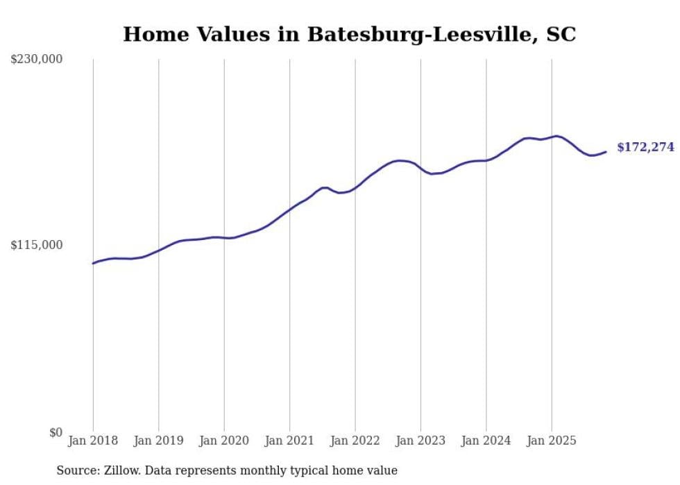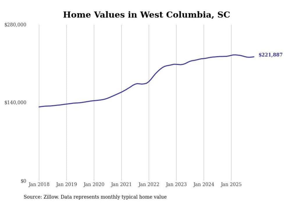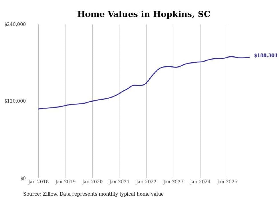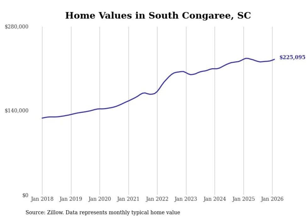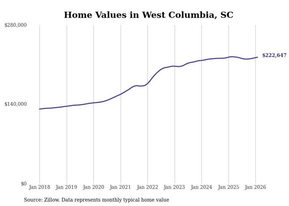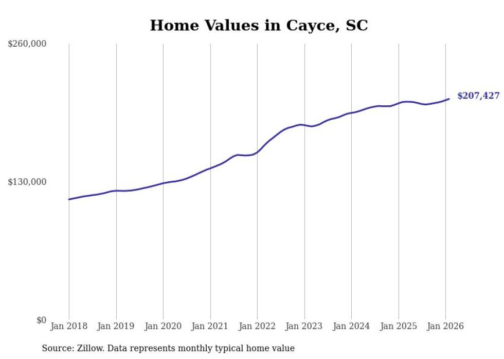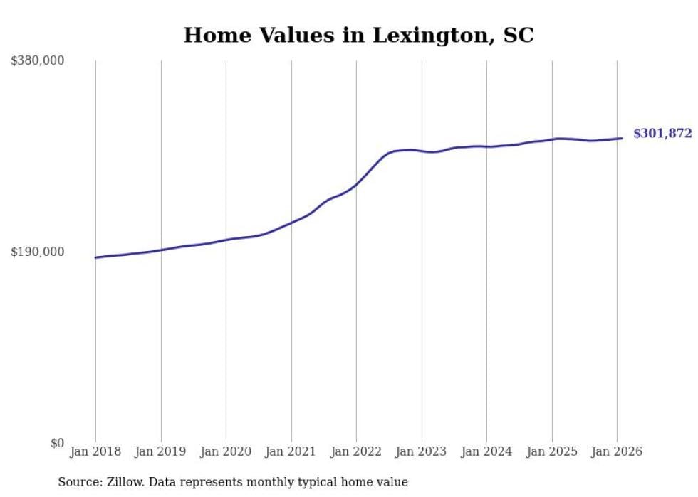 Stacker compiled a list of cities with the most expensive homes in the Columbia, SC metro area using data from Zillow. Charts show the monthly typical home value since January 2018.