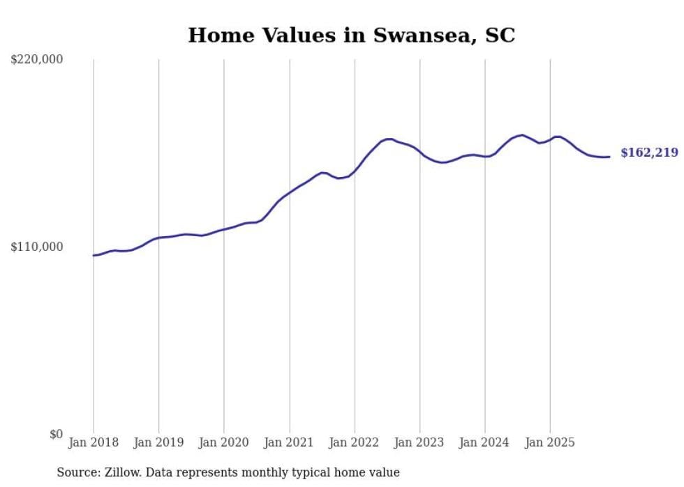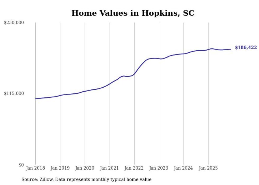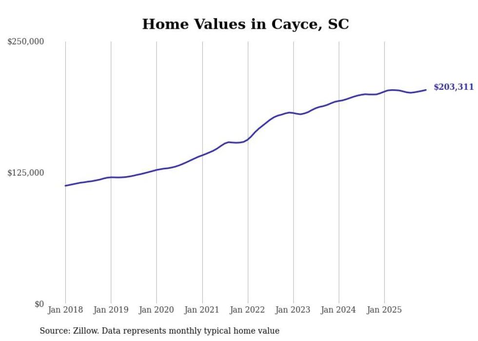 Stacker compiled a list of cities with the most expensive homes in the Columbia metro area using data from Zillow. Charts show the monthly typical home value since January 2018. Data was available for 36 cities and towns.