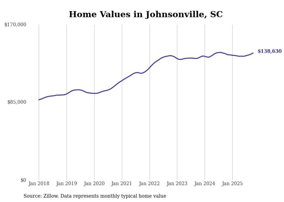 Stacker compiled a list of cities with the most expensive homes in the Florence, SC metro area using data from Zillow. Charts show the monthly typical home value since January 2018.