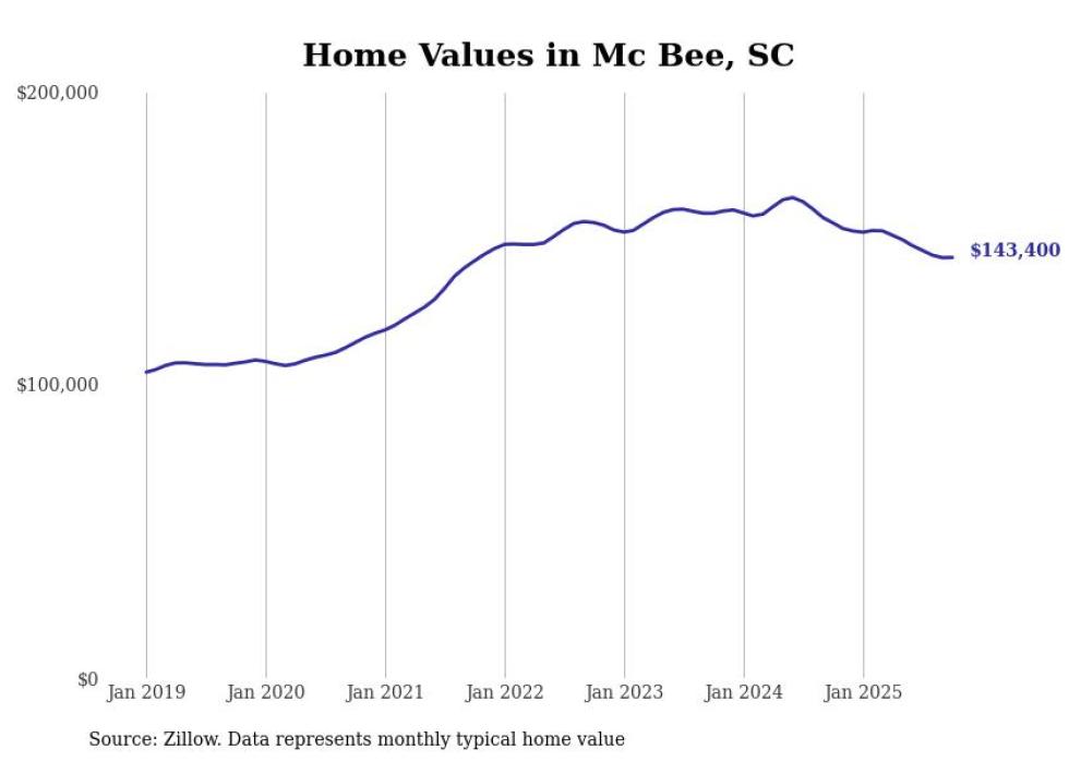 Cities with the fastest-growing home prices in the Florence, South Carolina metro area