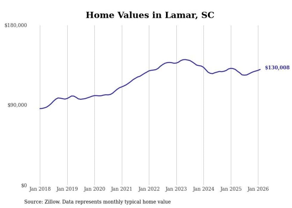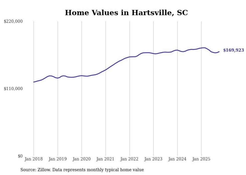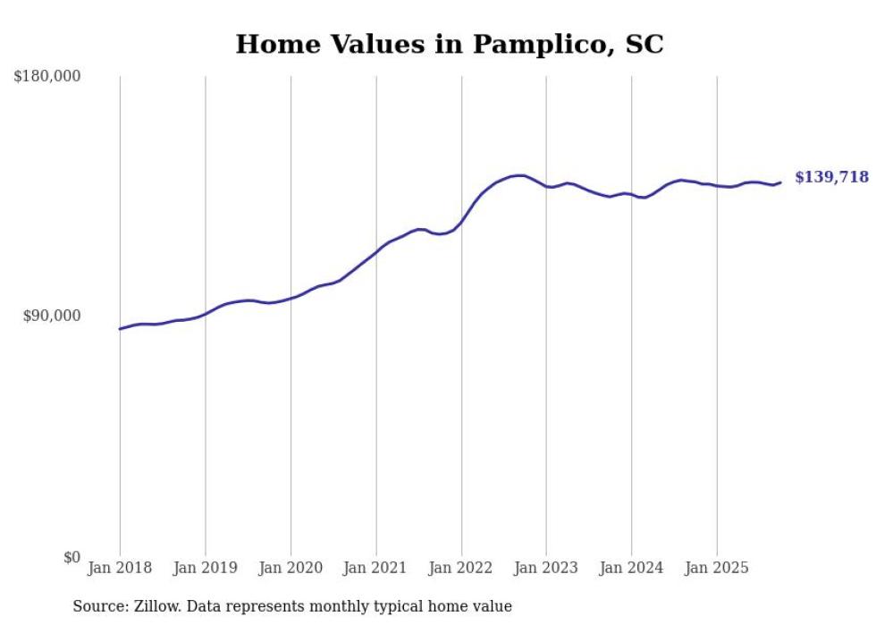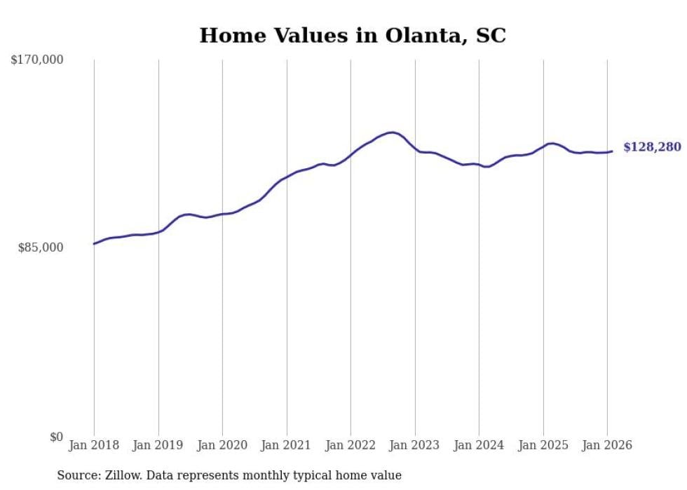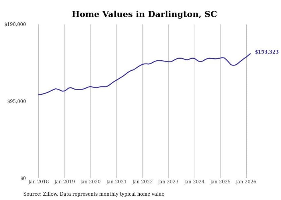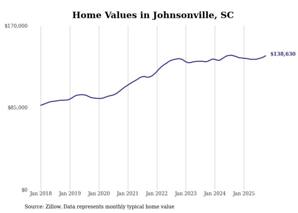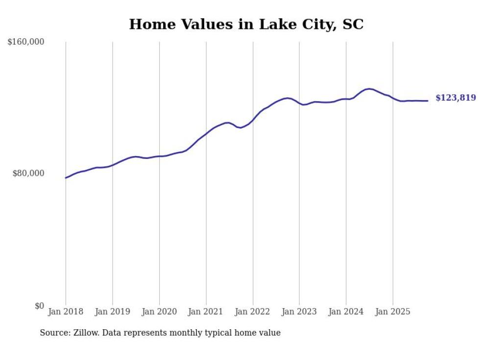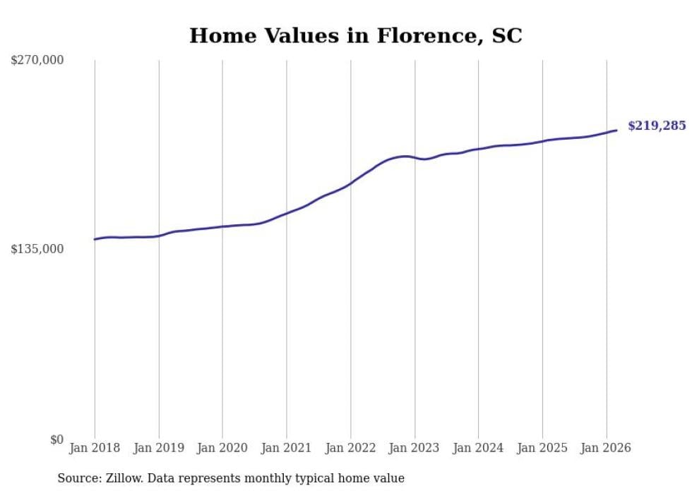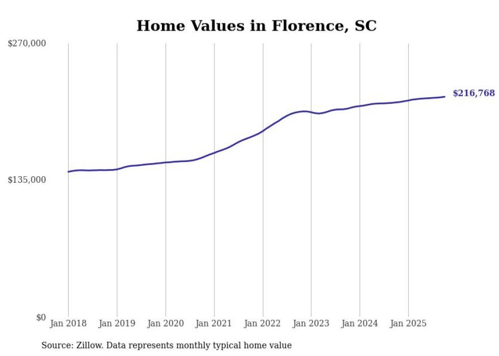 Stacker compiled a list of cities with the most expensive homes in the Florence, South Carolina metro area using data from Zillow. Charts show the monthly typical home value since January 2018. All 14 cities and towns with data available were included in the list.