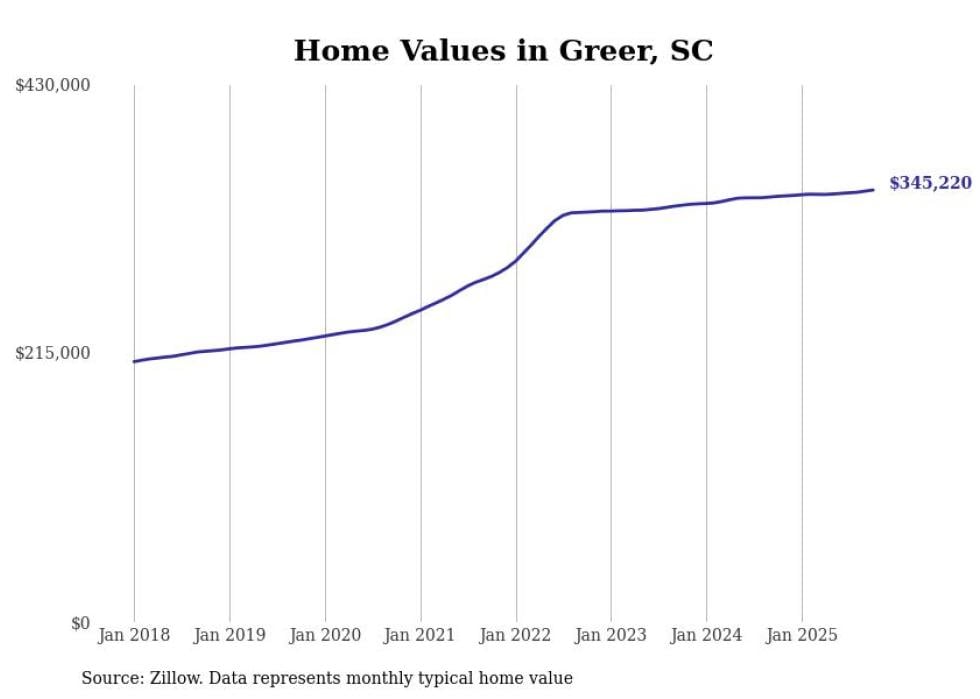 Cities with the fastest-growing home prices in the Greenville metro area