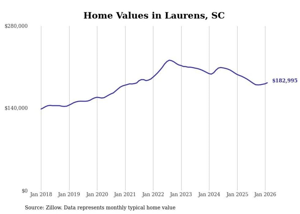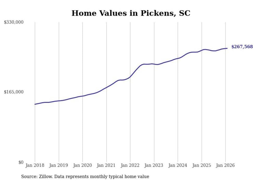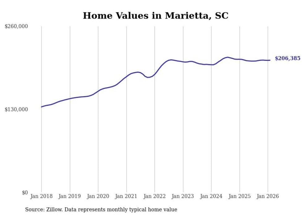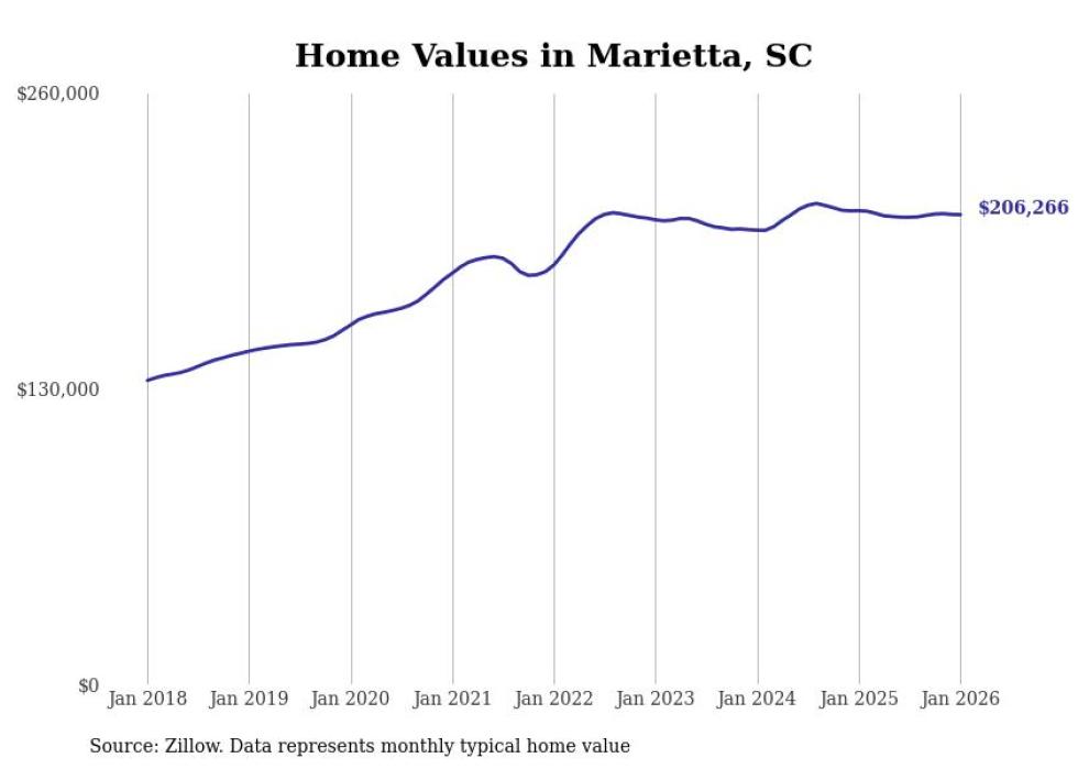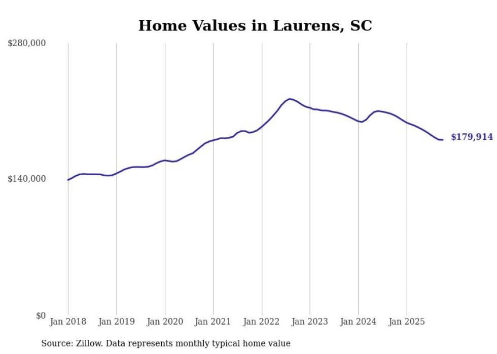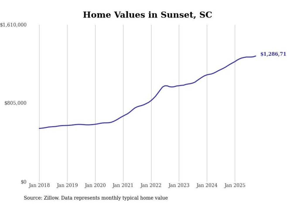 Stacker compiled a list of cities with the most expensive homes in the Greenville-Anderson, SC metro area using data from Zillow. Charts show the monthly typical home value since January 2018.