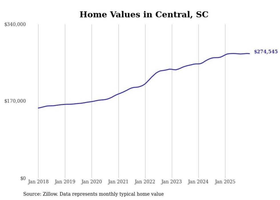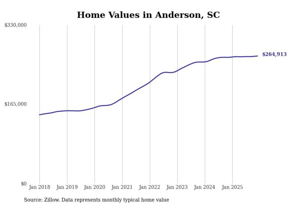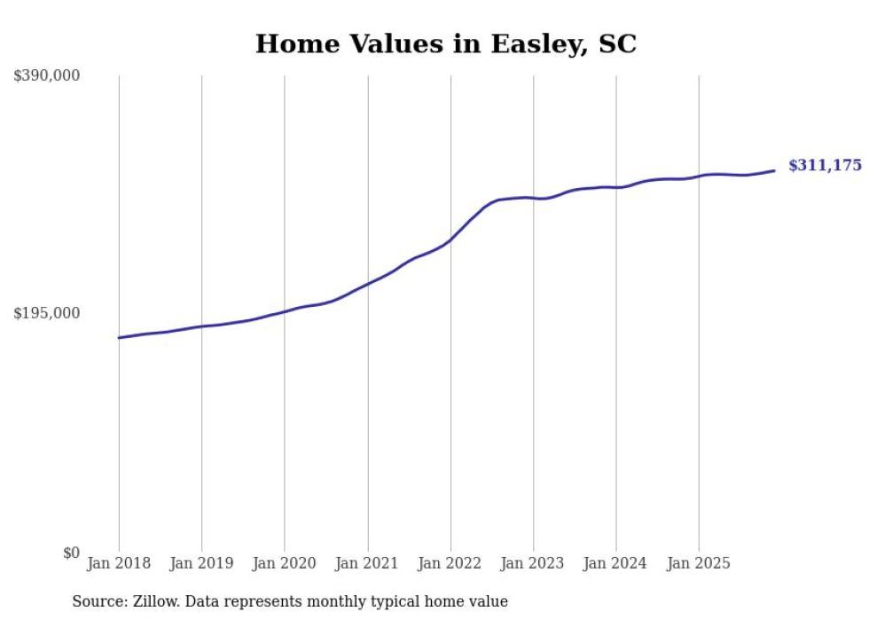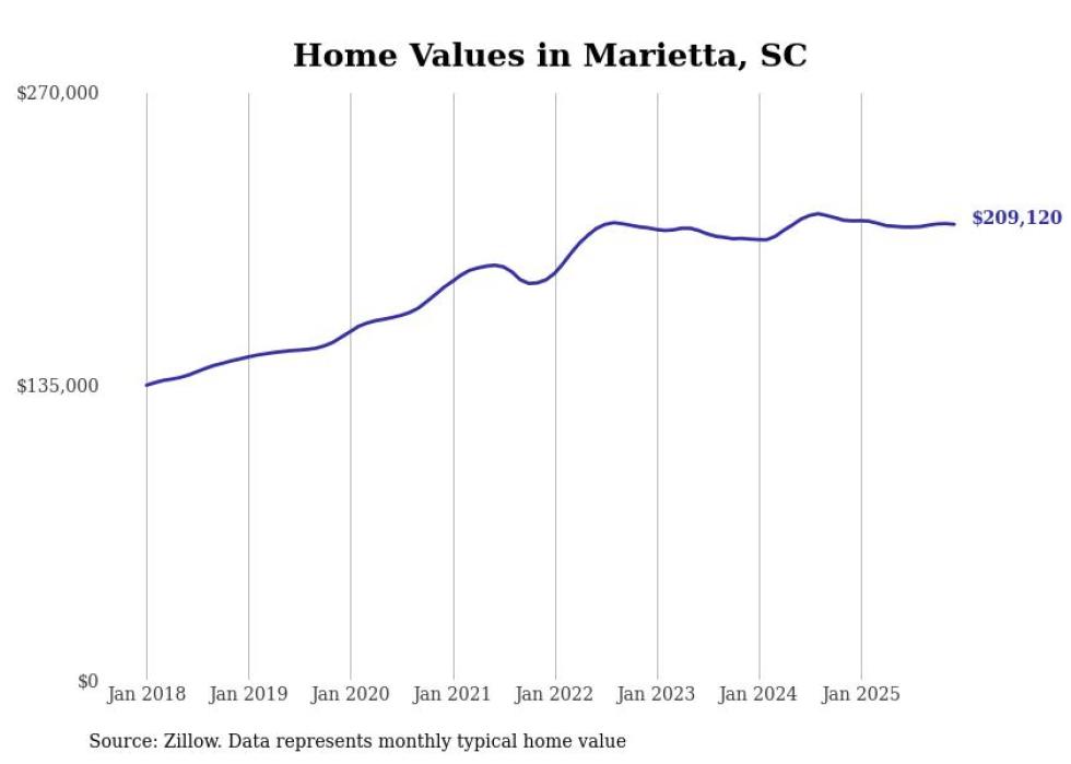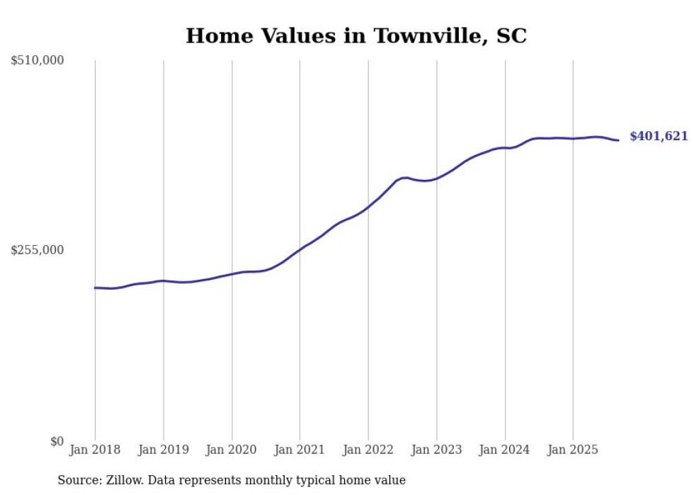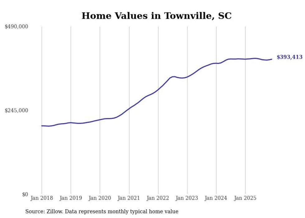 Stacker compiled a list of cities with the most expensive homes in the Greenville metro area using data from Zillow. Charts show the monthly typical home value since January 2018. Data was available for 33 cities and towns.