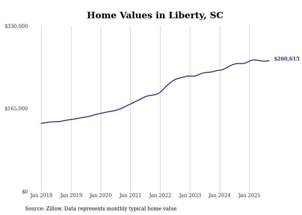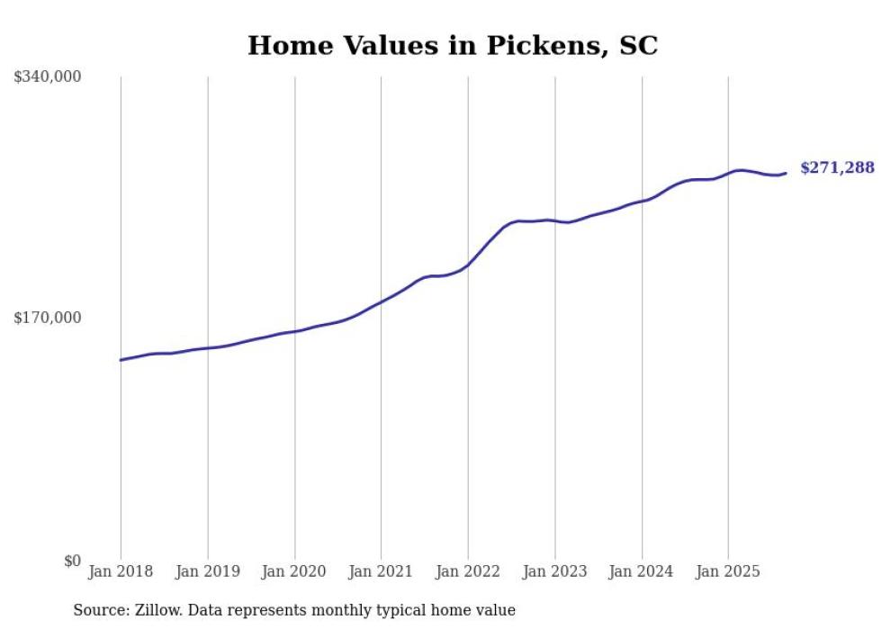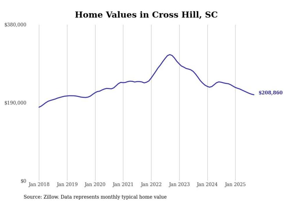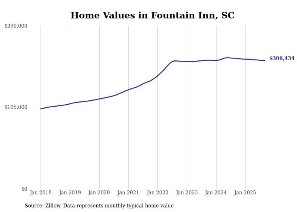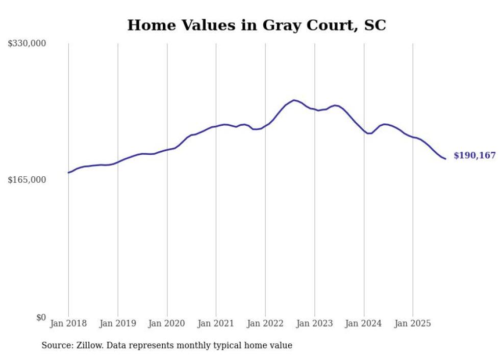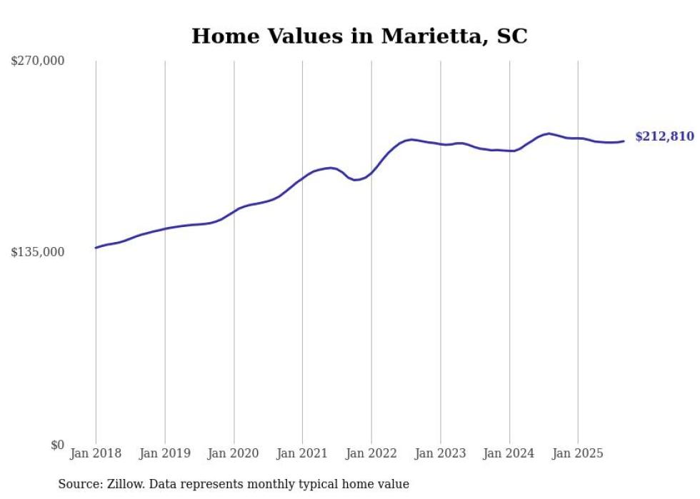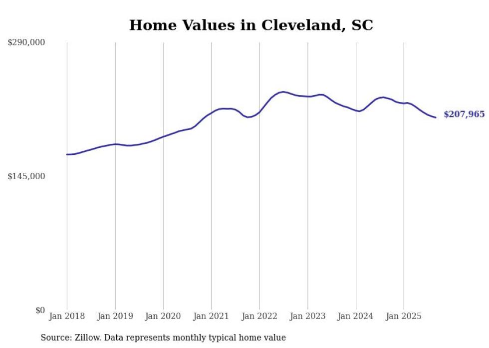 Stacker compiled a list of cities with the most expensive homes in the Greenville metro area using data from Zillow. Charts show the monthly typical home value since January 2018. Data was available for 33 cities and towns.