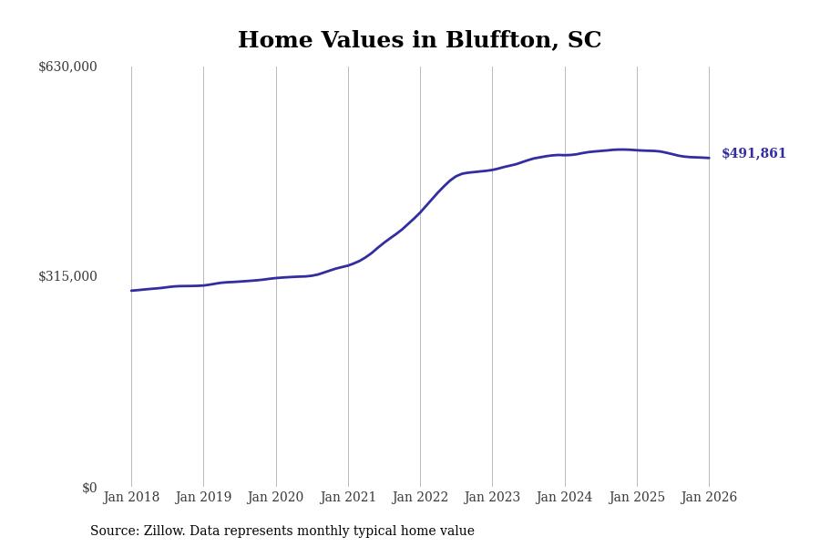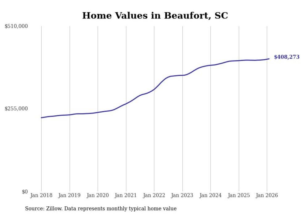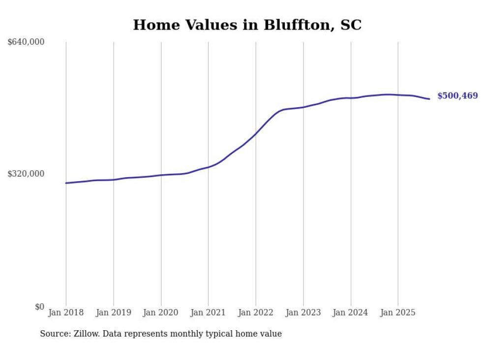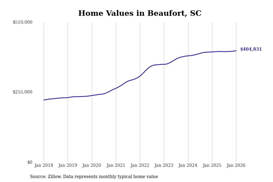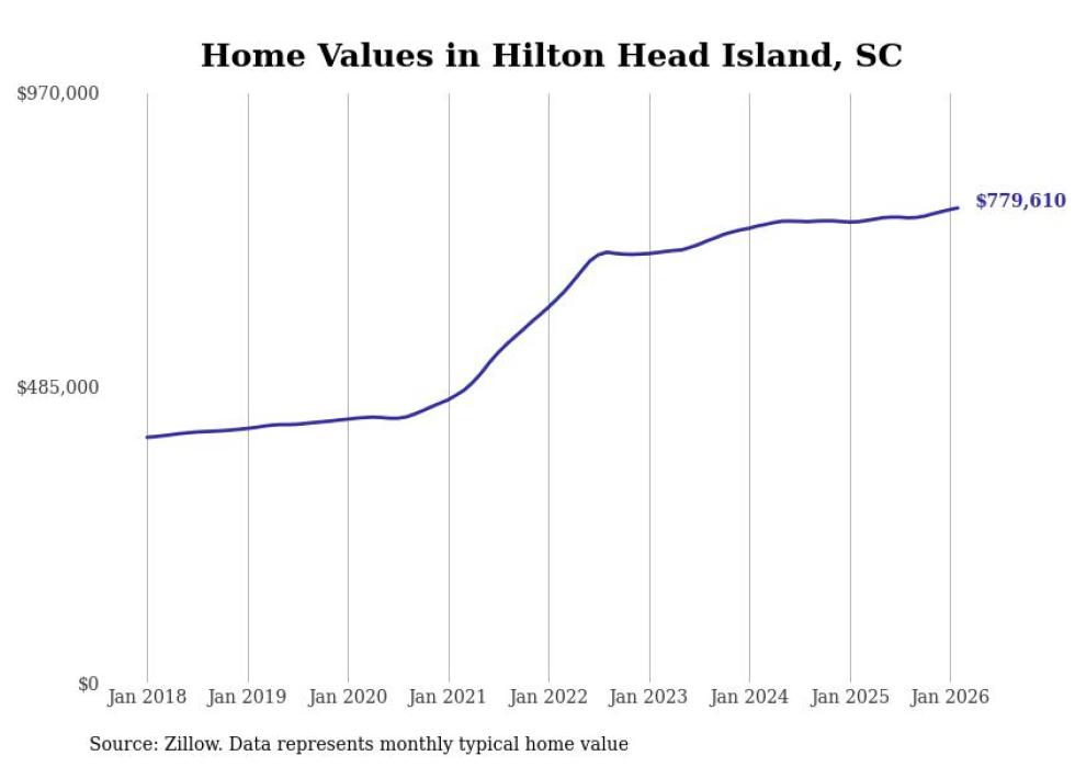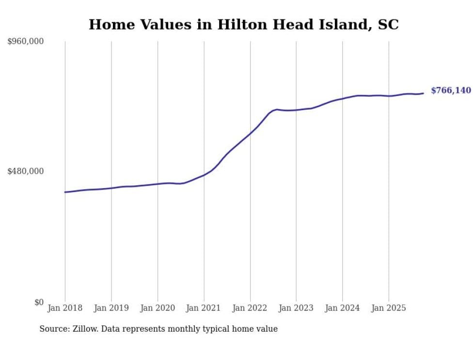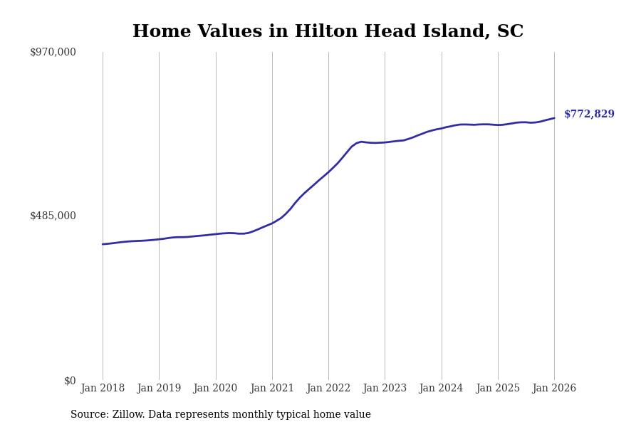 Stacker compiled a list of cities with the most expensive homes in the Hilton Head Island metro area using data from Zillow. Charts show the monthly typical home value since January 2018. All 11 cities and towns with data available were included in the list.