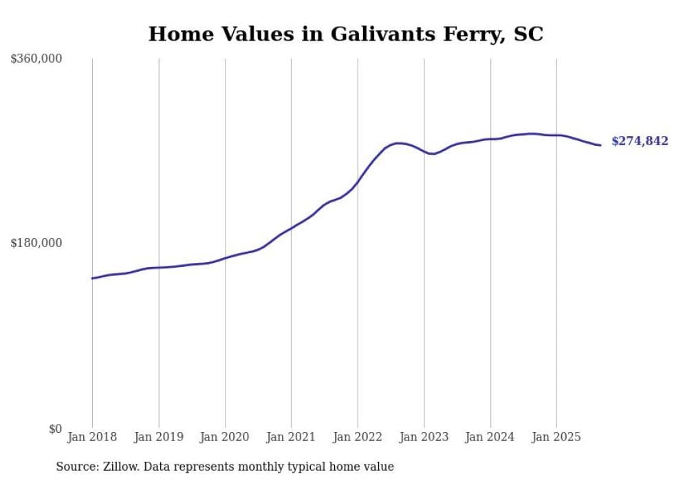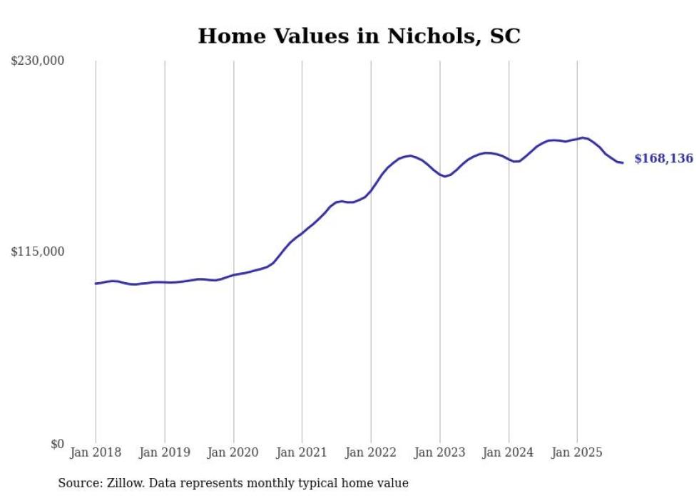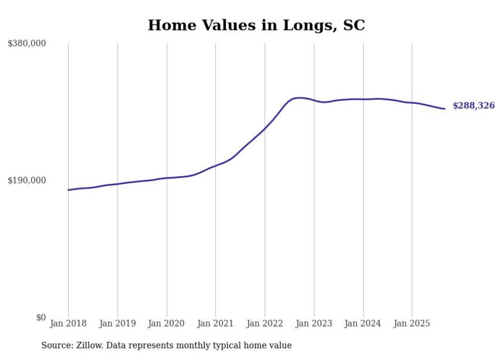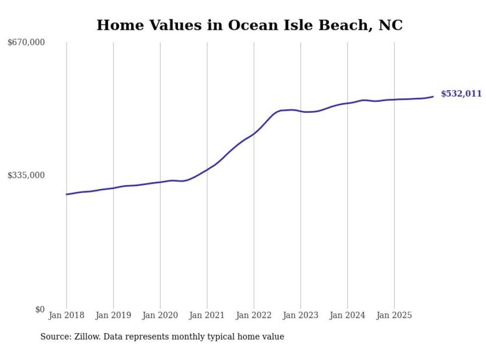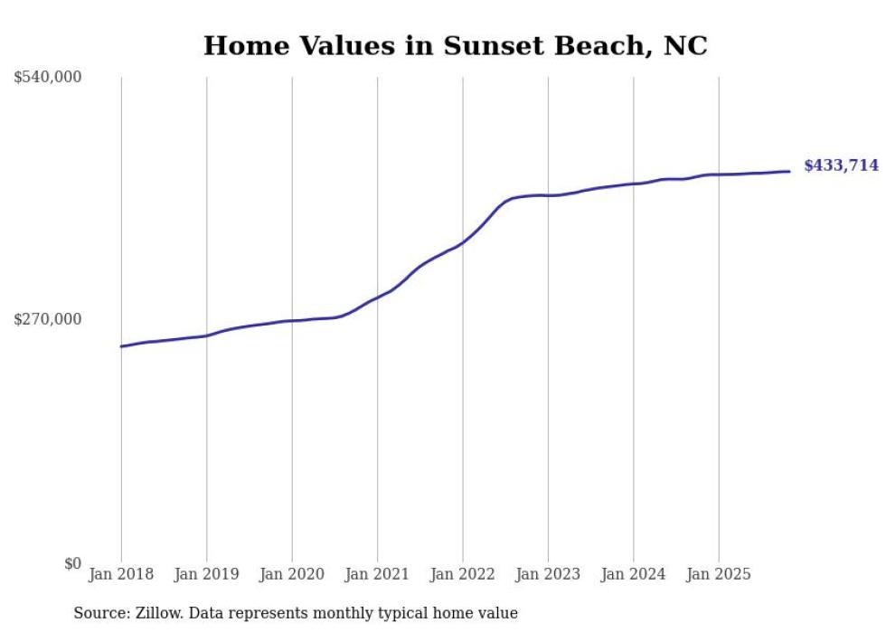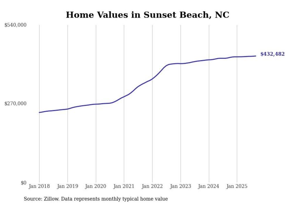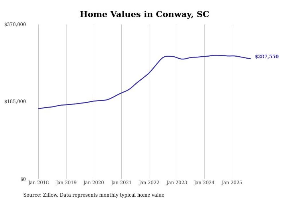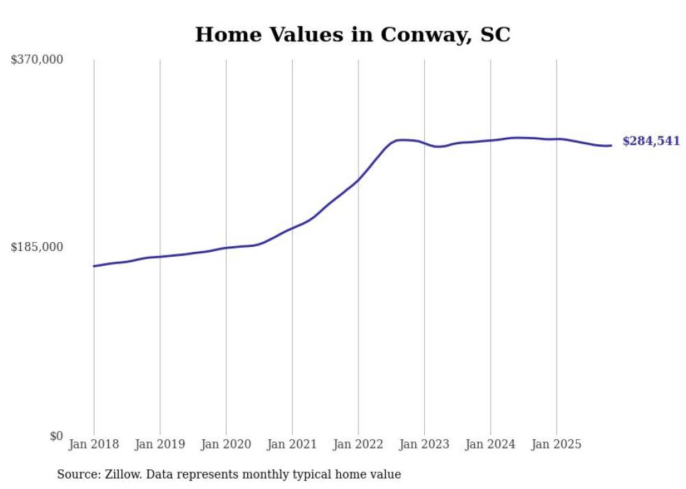 Stacker compiled a list of cities with the most expensive homes in the Myrtle Beach-Conway-North Myrtle Beach, SC-NC metro area using data from Zillow. Charts show the monthly typical home value since January 2018.