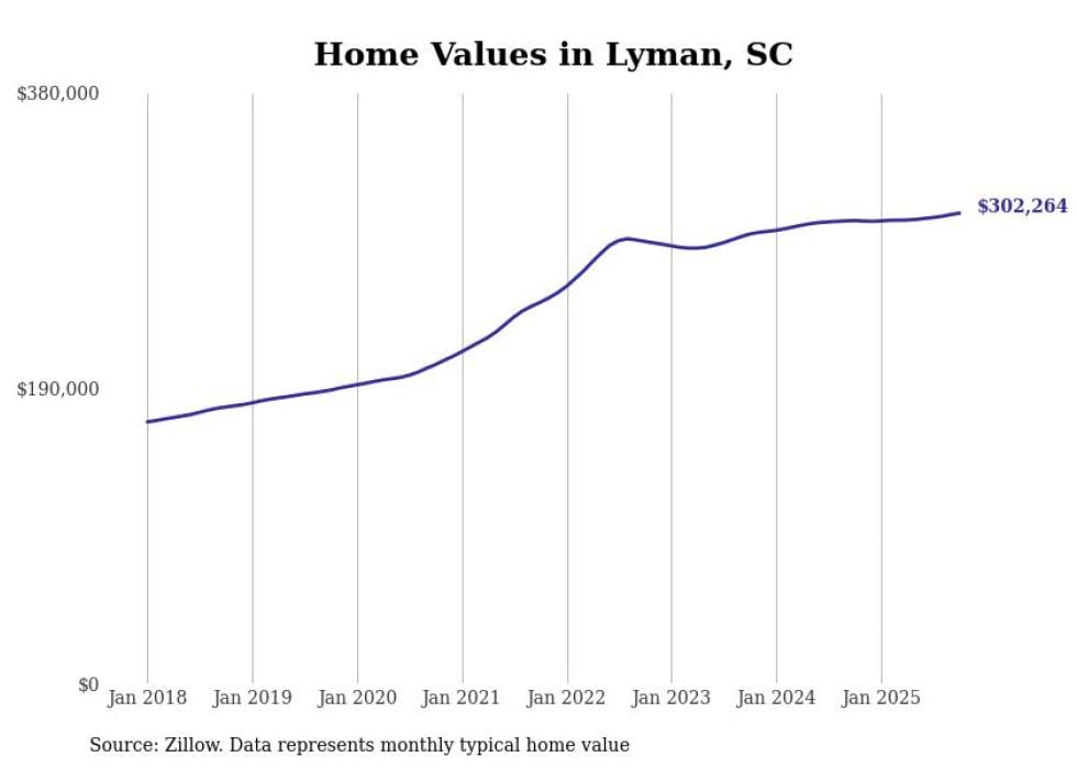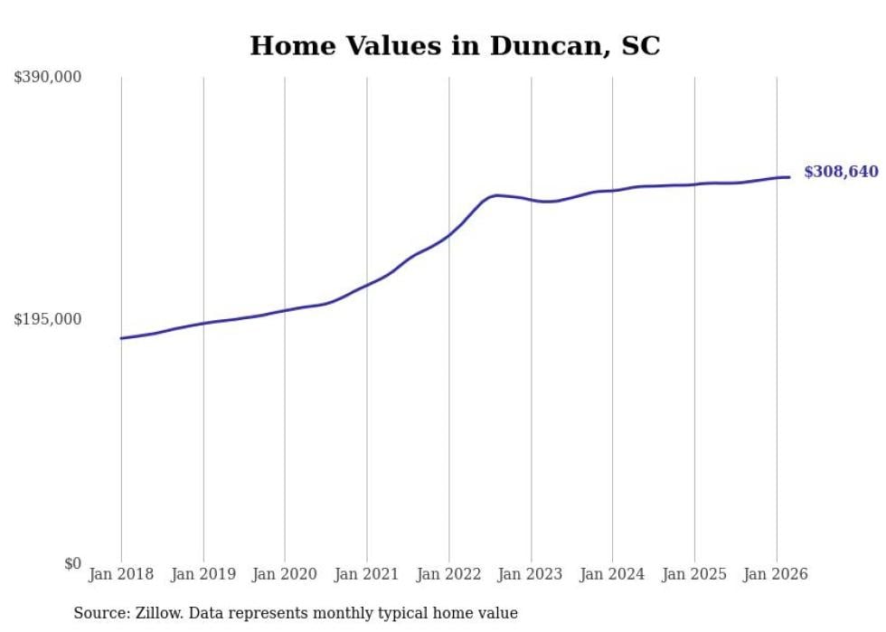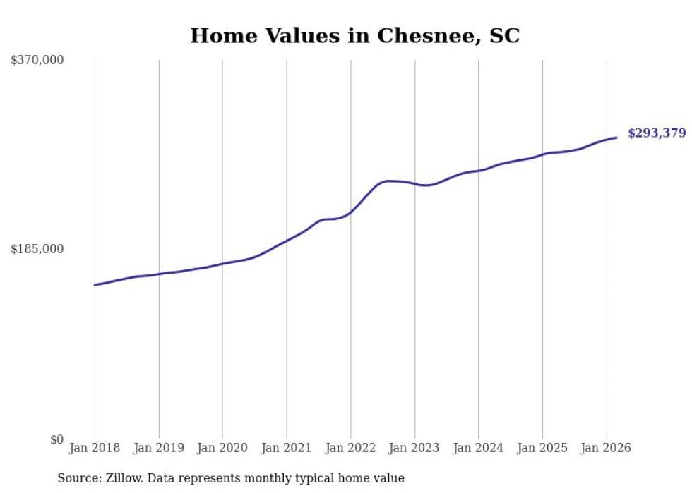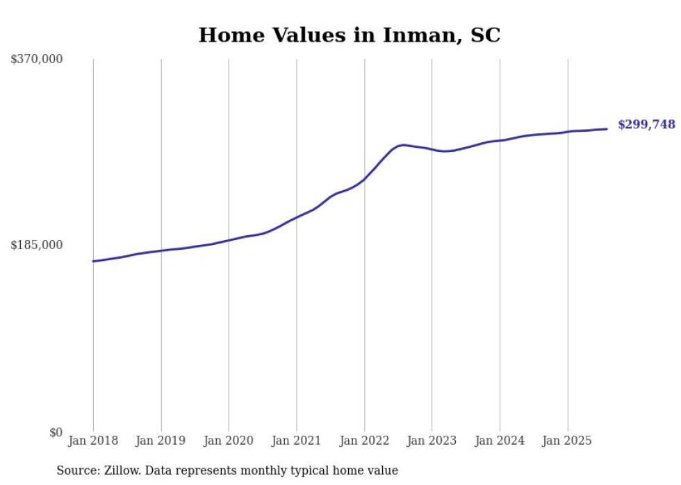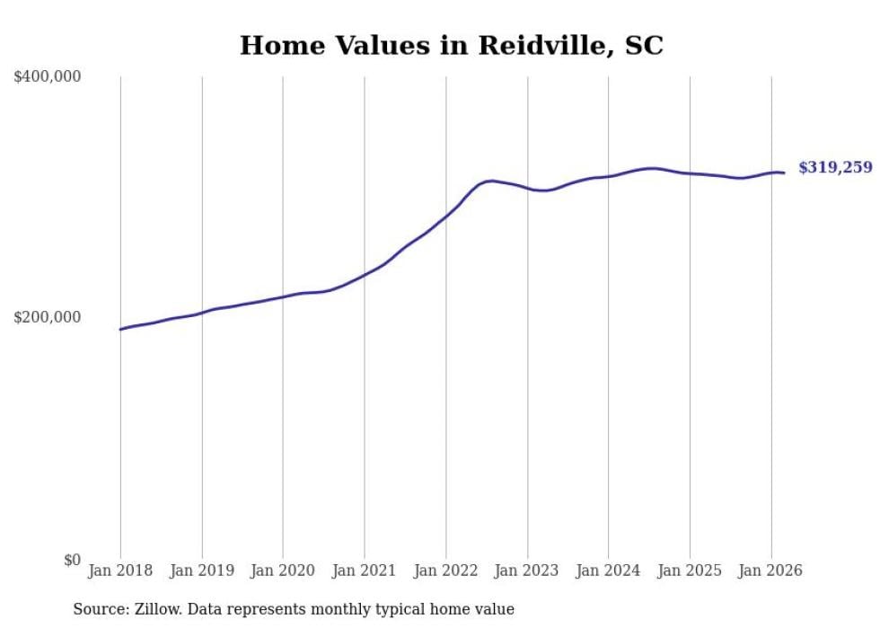 Stacker compiled a list of cities with the most expensive homes in the Spartanburg metro area using data from Zillow. Charts show the monthly typical home value since January 2018. All 15 cities and towns with data available were included in the list.