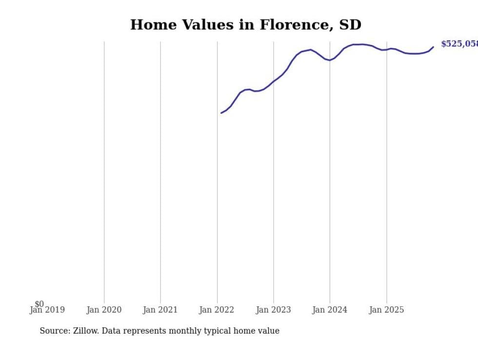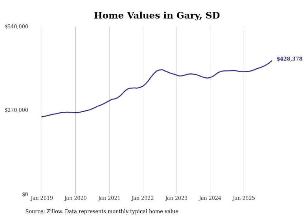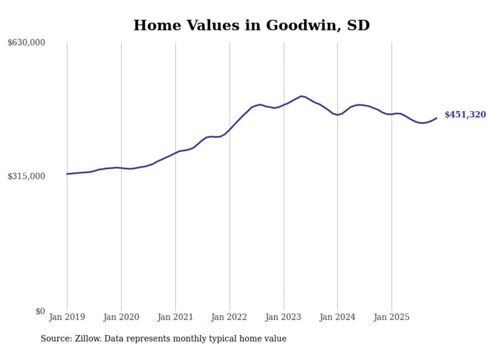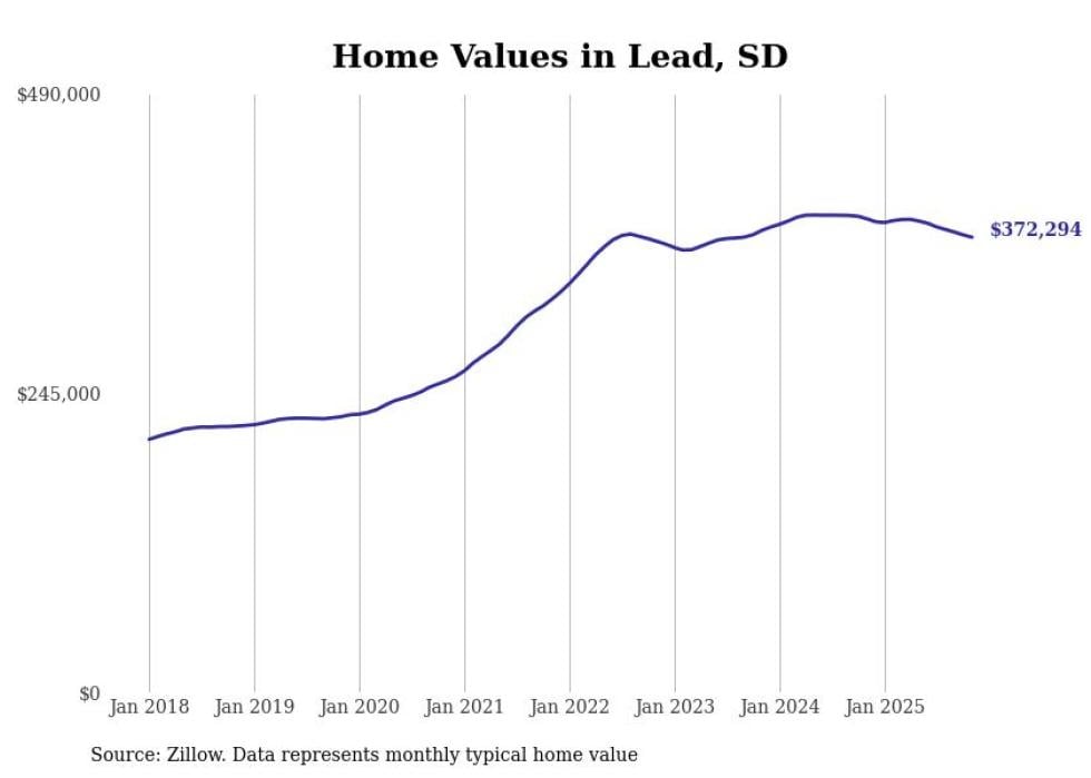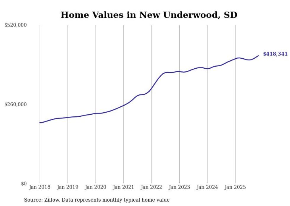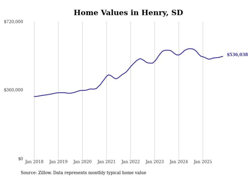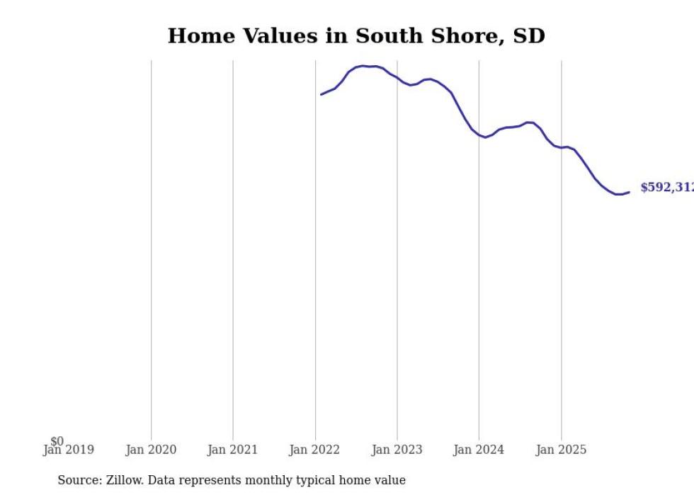 Stacker compiled a list of cities with the most expensive homes in South Dakota using data from Zillow. Cities are ranked by the Zillow Home Values Index for all homes as of November 2025. The charts in this story were created automatically using Matplotlib.