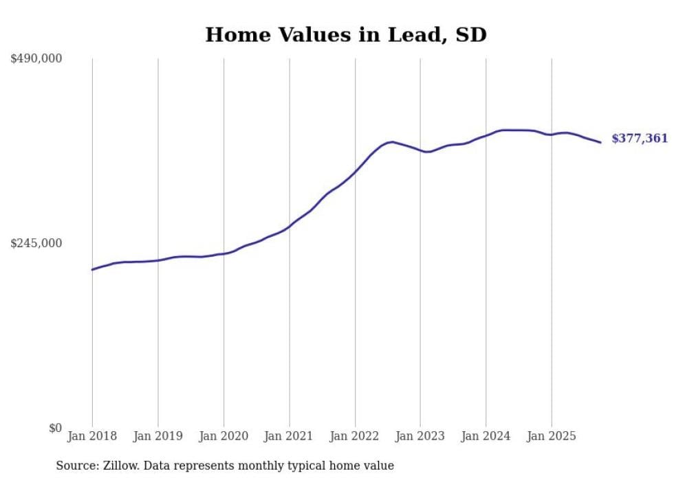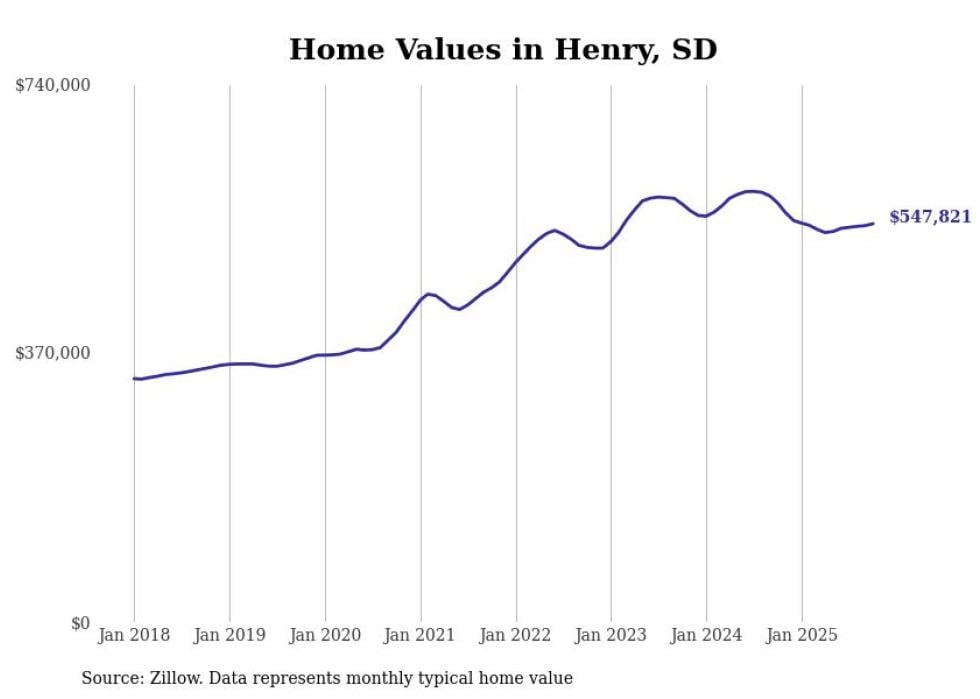 Stacker compiled a list of cities with the most expensive homes in South Dakota using data from Zillow. Cities are ranked by the Zillow Home Values Index for all homes as of October 2025. The charts in this story were created automatically using Matplotlib.
