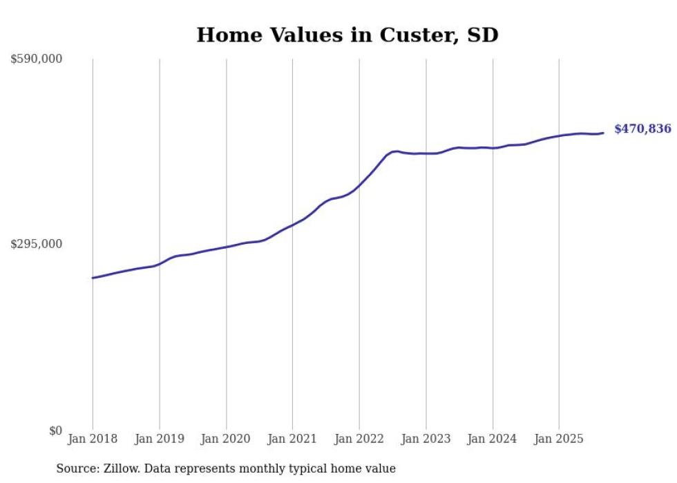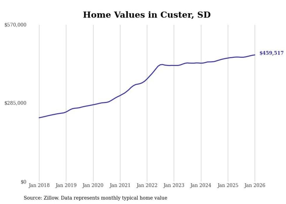 Stacker compiled a list of cities with the most expensive homes in the Rapid City, SD metro area using data from Zillow. Charts show the monthly typical home value since January 2018.
