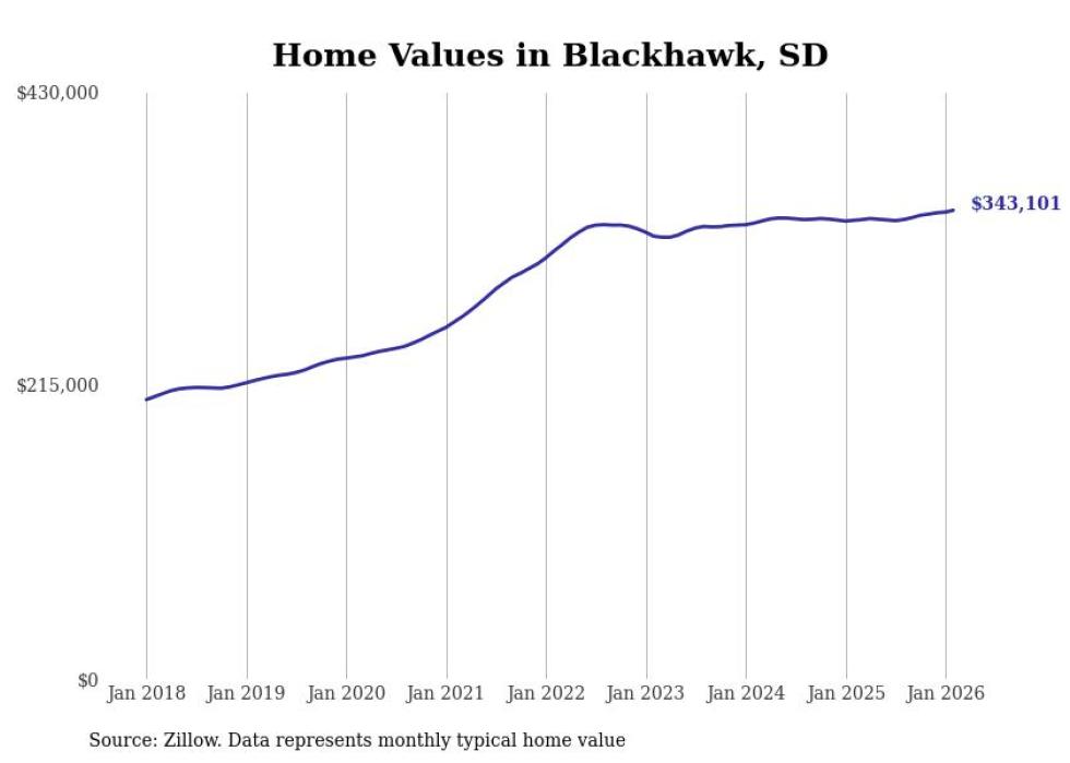 Stacker compiled a list of cities with the most expensive homes in the Rapid City metro area using data from Zillow. Charts show the monthly typical home value since January 2018. All 12 cities and towns with data available were included in the list.