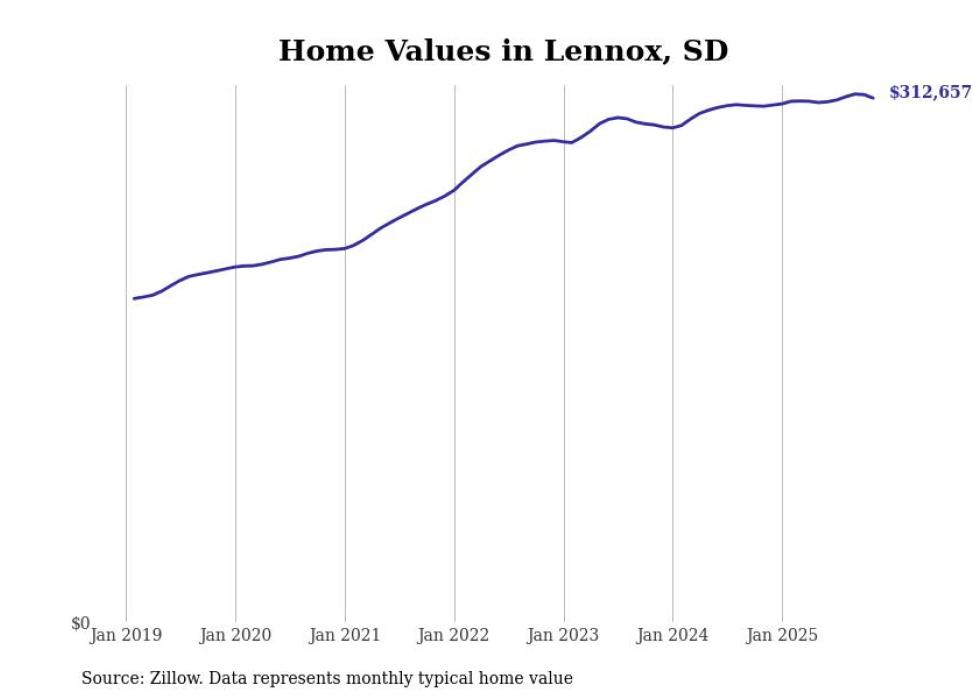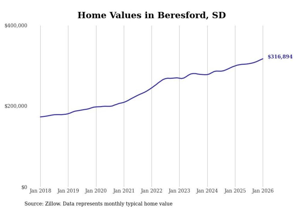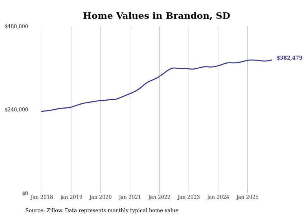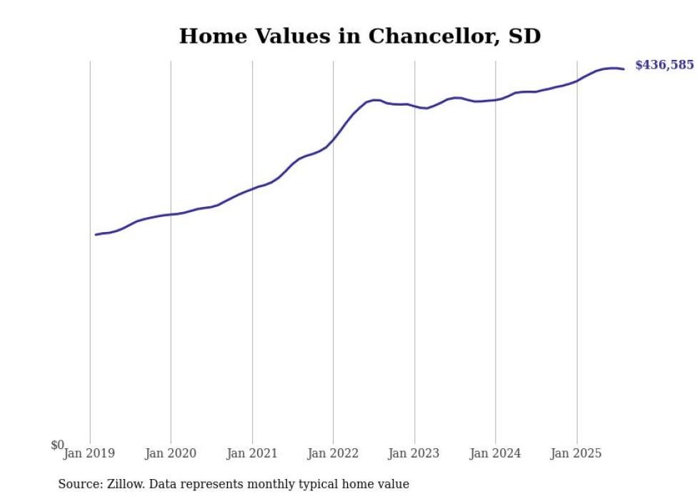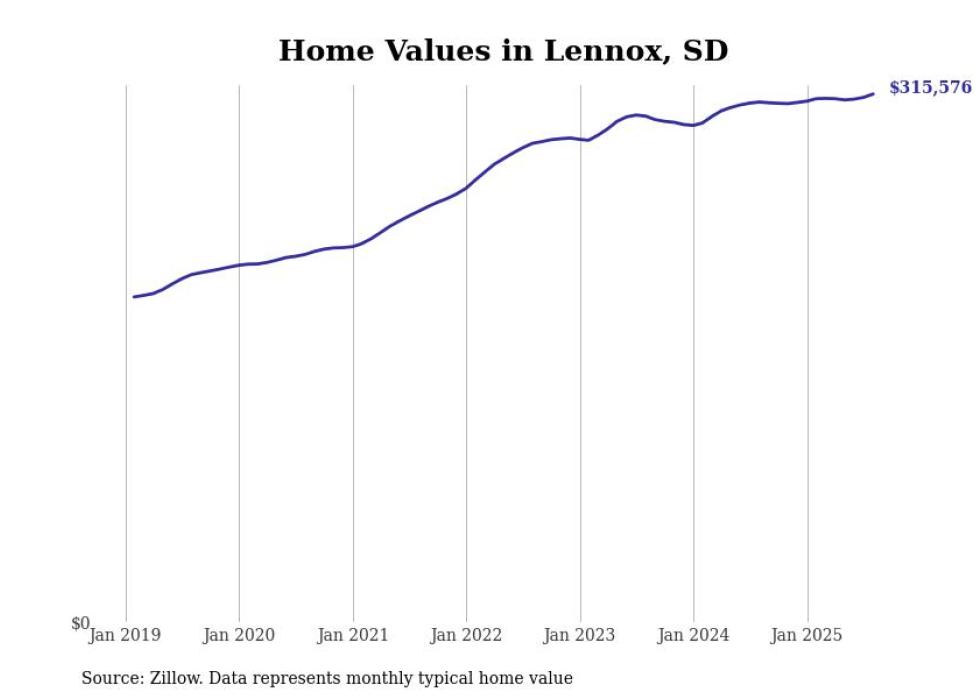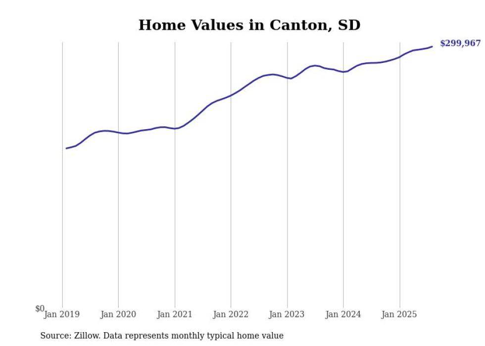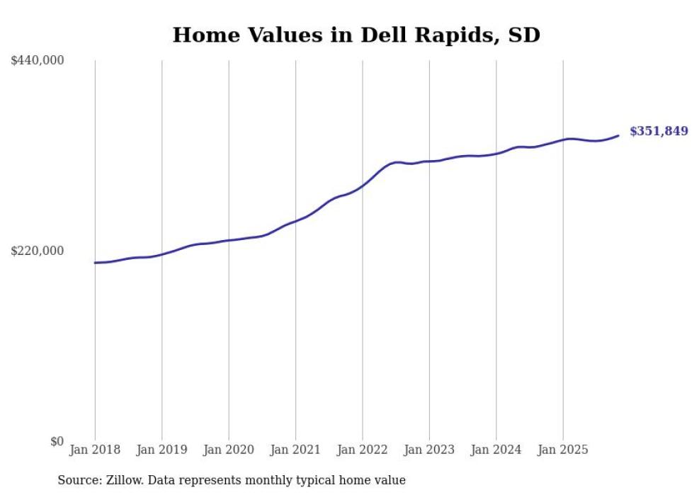 Stacker compiled a list of cities with the most expensive homes in the Sioux Falls, SD metro area using data from Zillow. Charts show the monthly typical home value since January 2018.