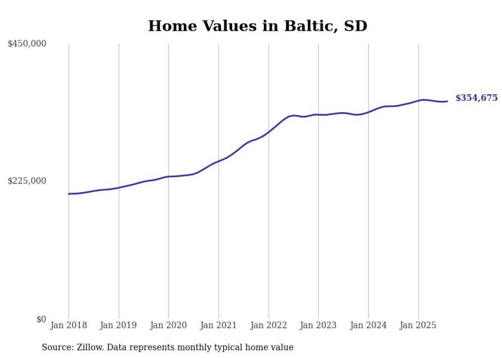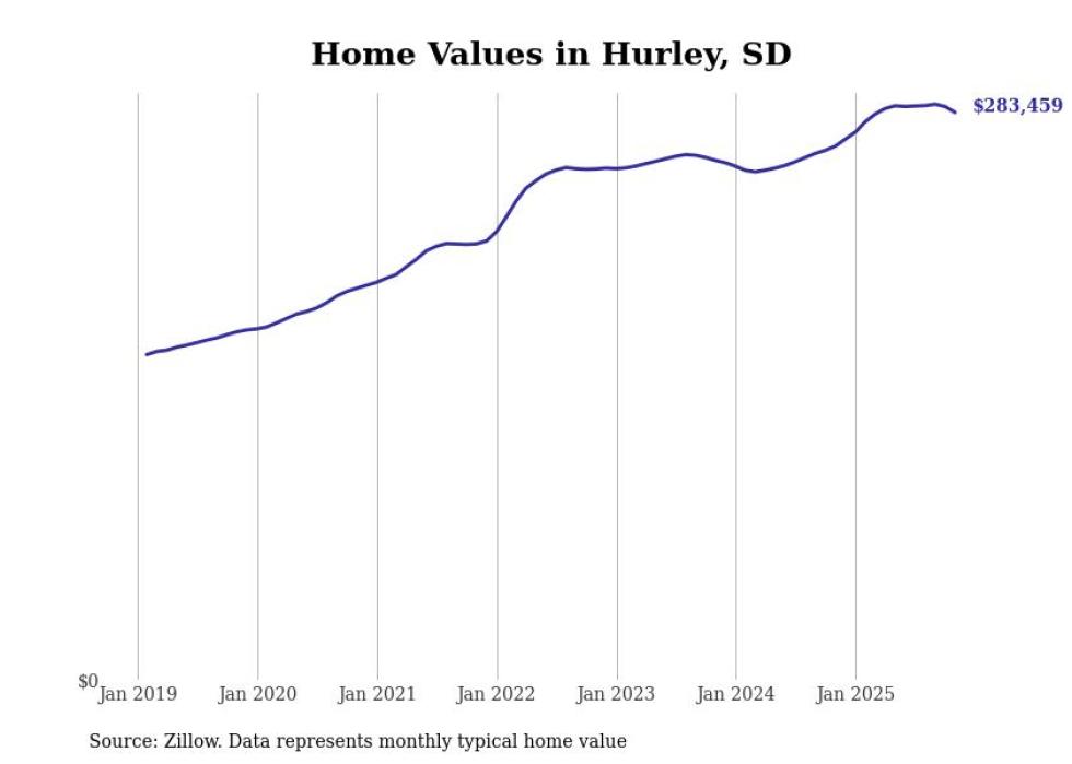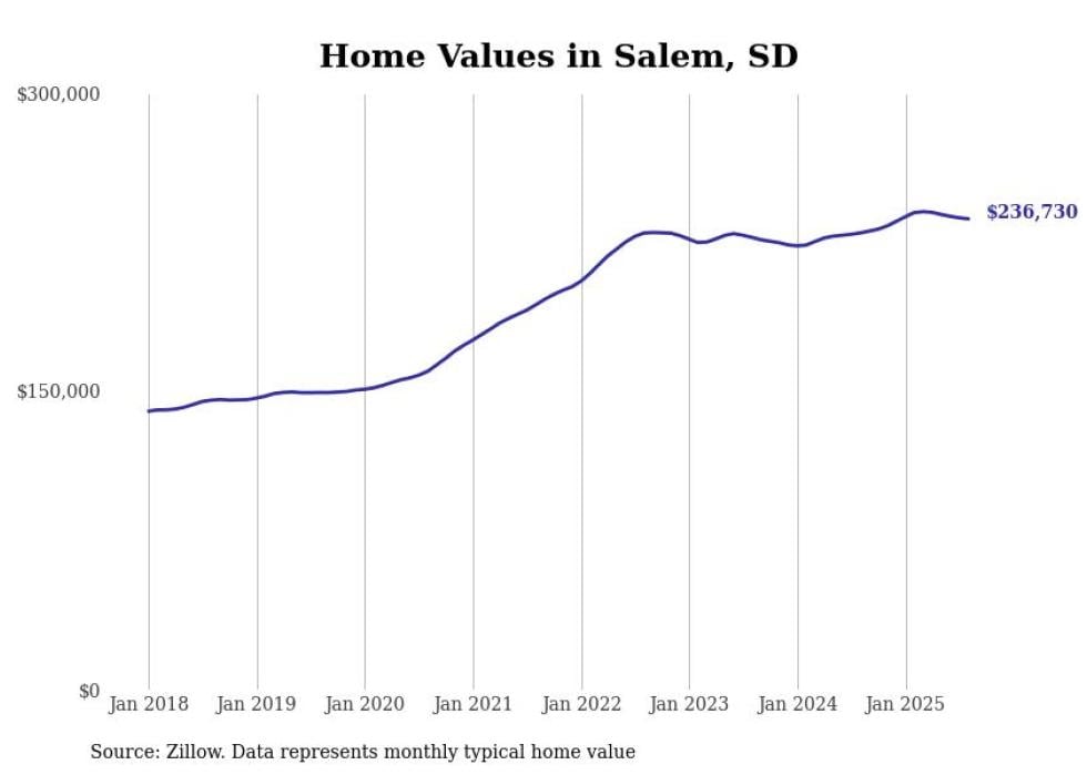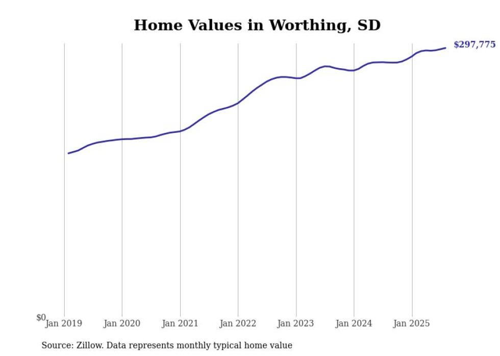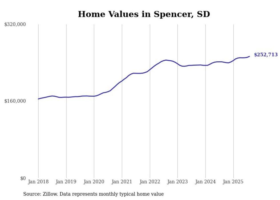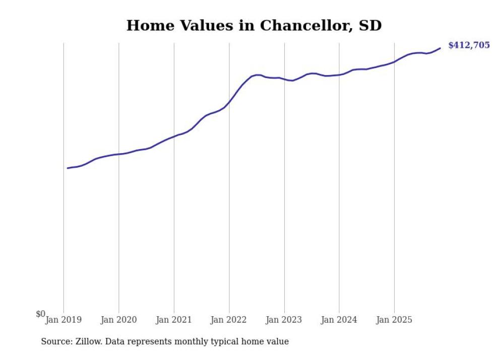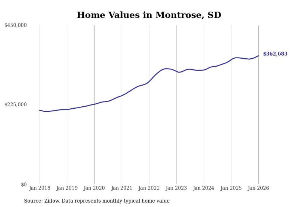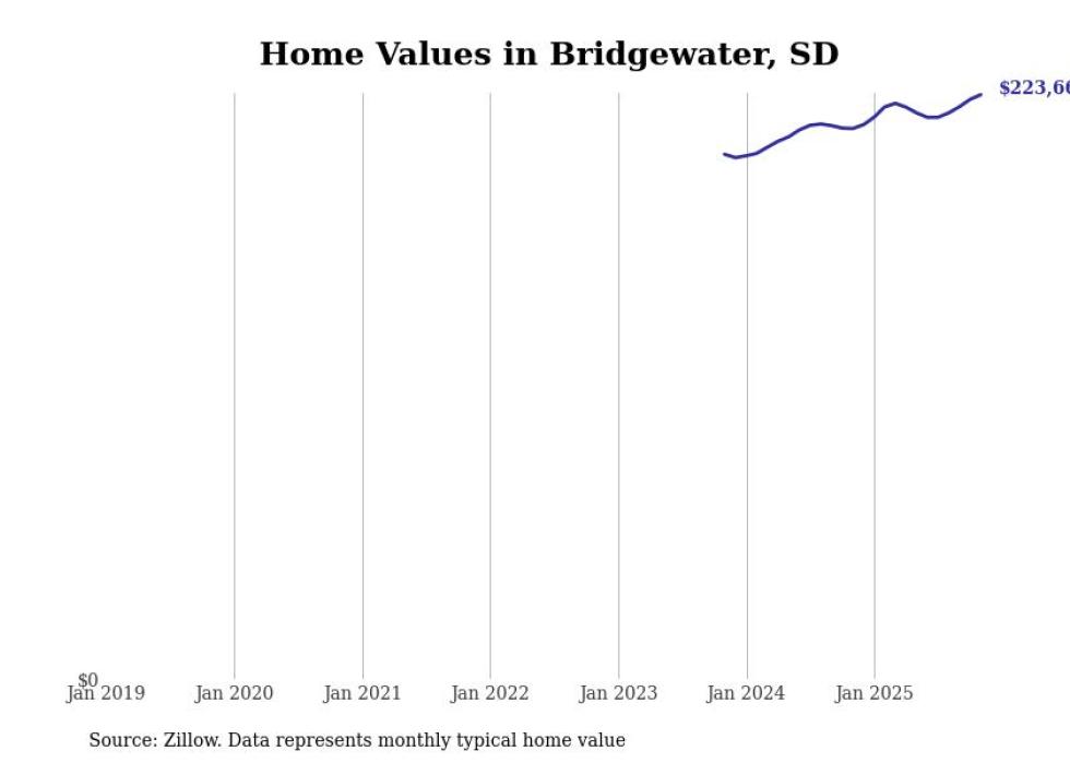 Stacker compiled a list of cities with the most expensive homes in the Sioux Falls, SD metro area using data from Zillow. Charts show the monthly typical home value since January 2018.