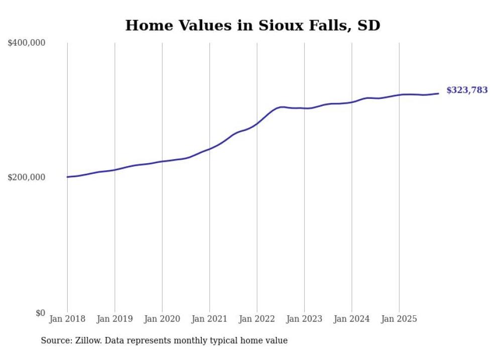 Cities with the fastest-growing home prices in the Sioux Falls metro area