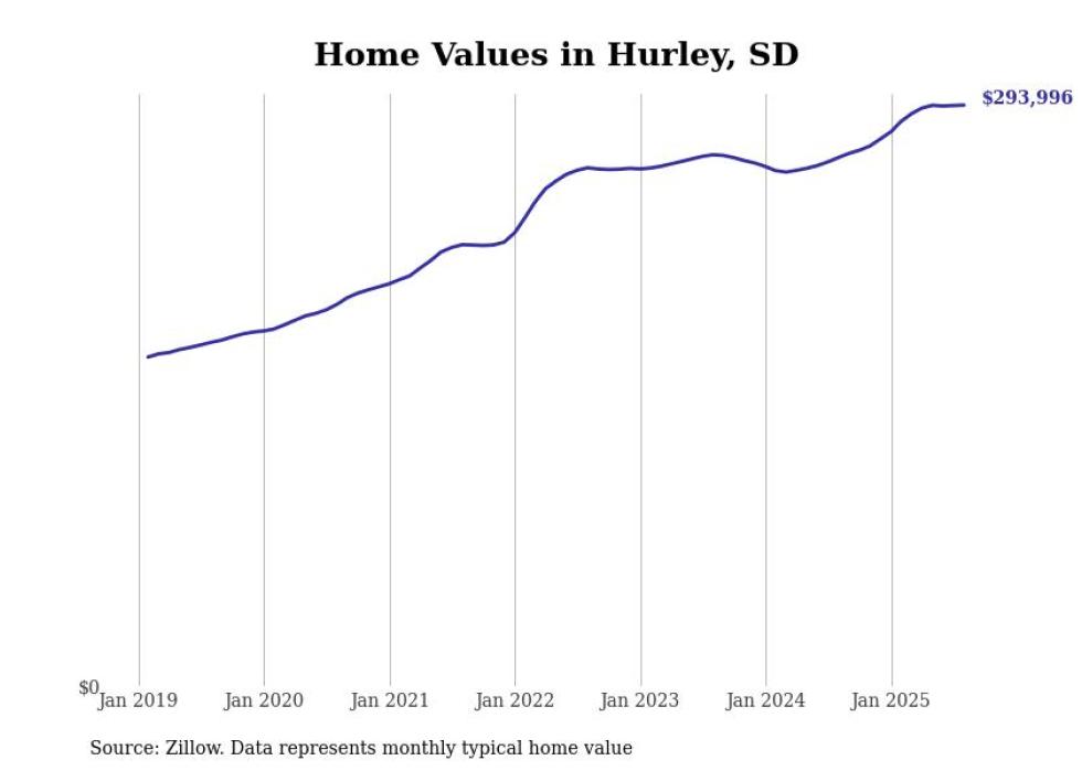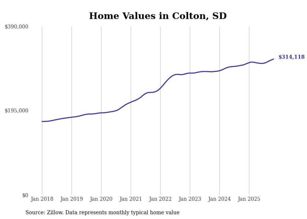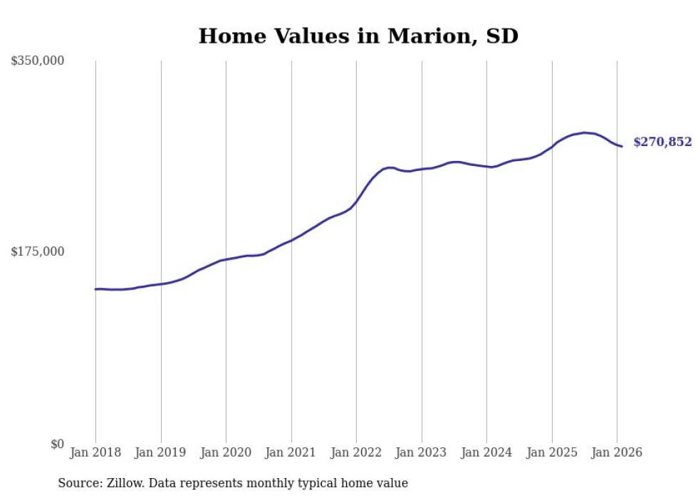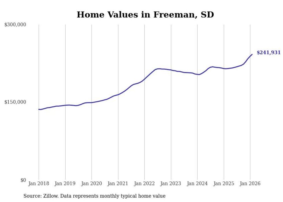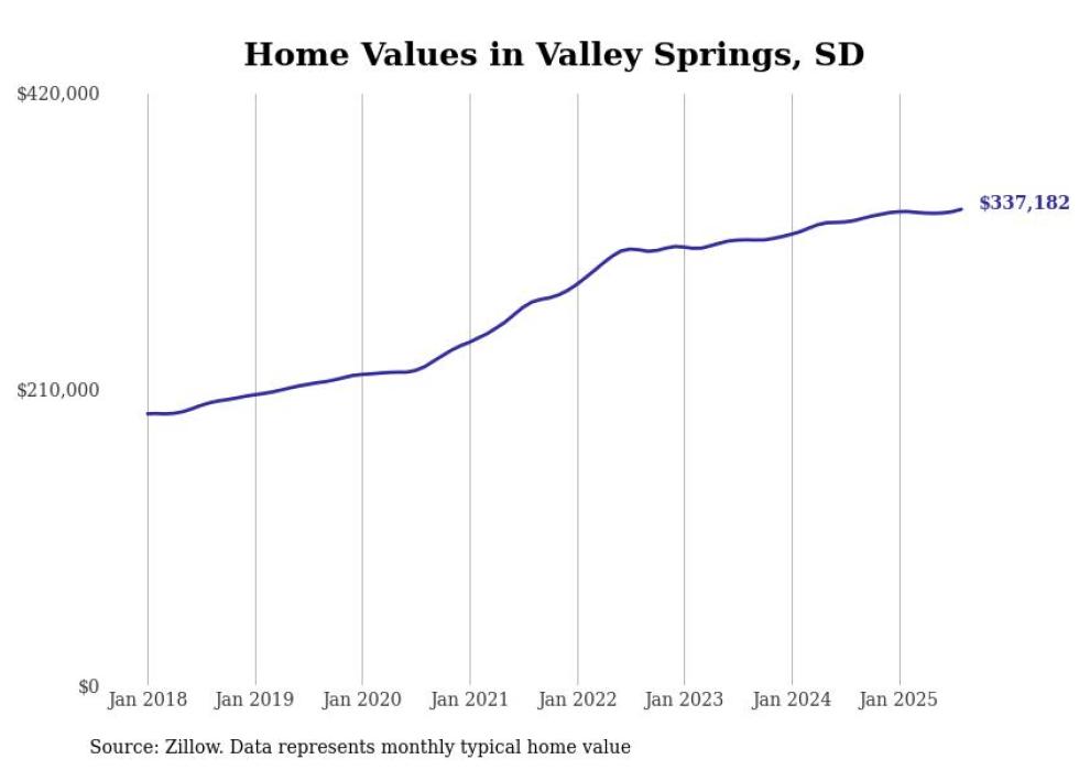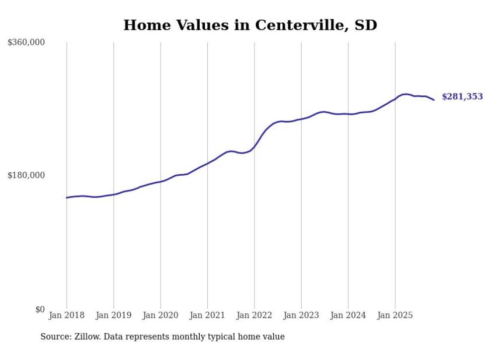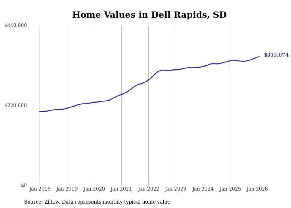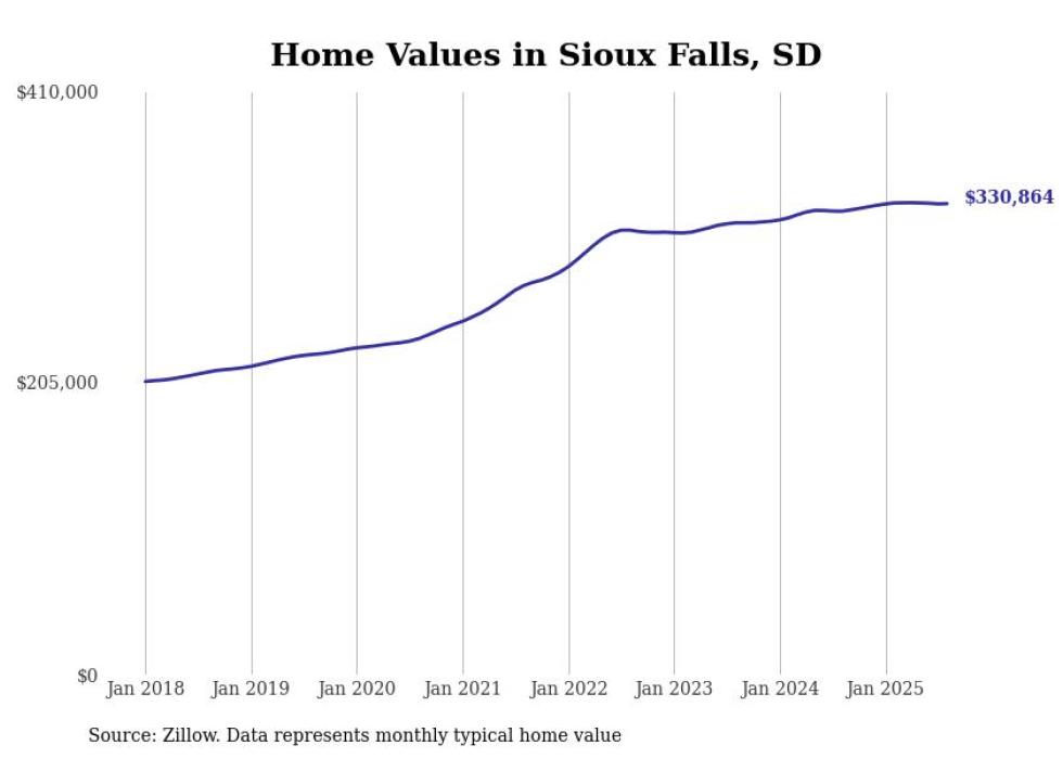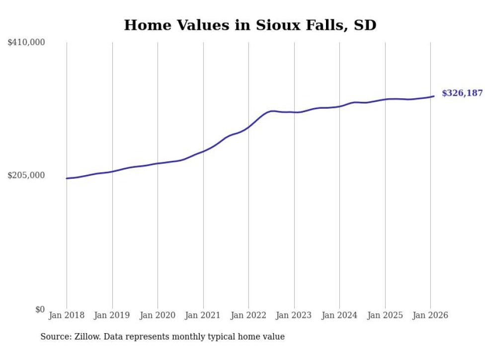 Stacker compiled a list of cities with the most expensive homes in the Sioux Falls metro area using data from Zillow. Charts show the monthly typical home value since January 2018. All 26 cities and towns with data available were included in the list.