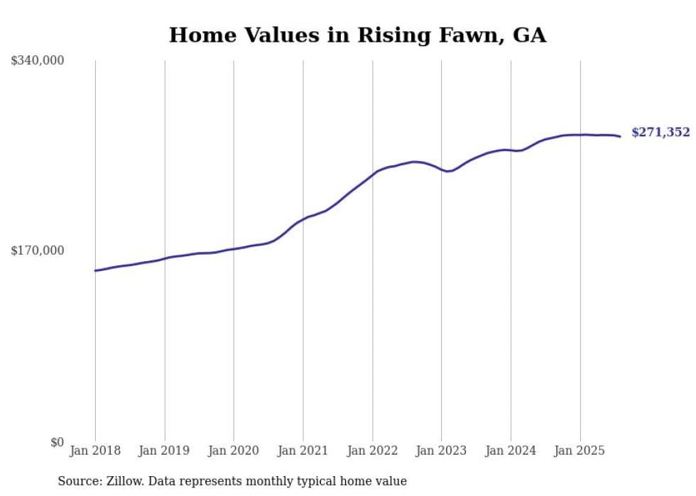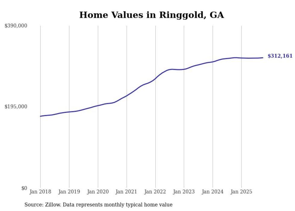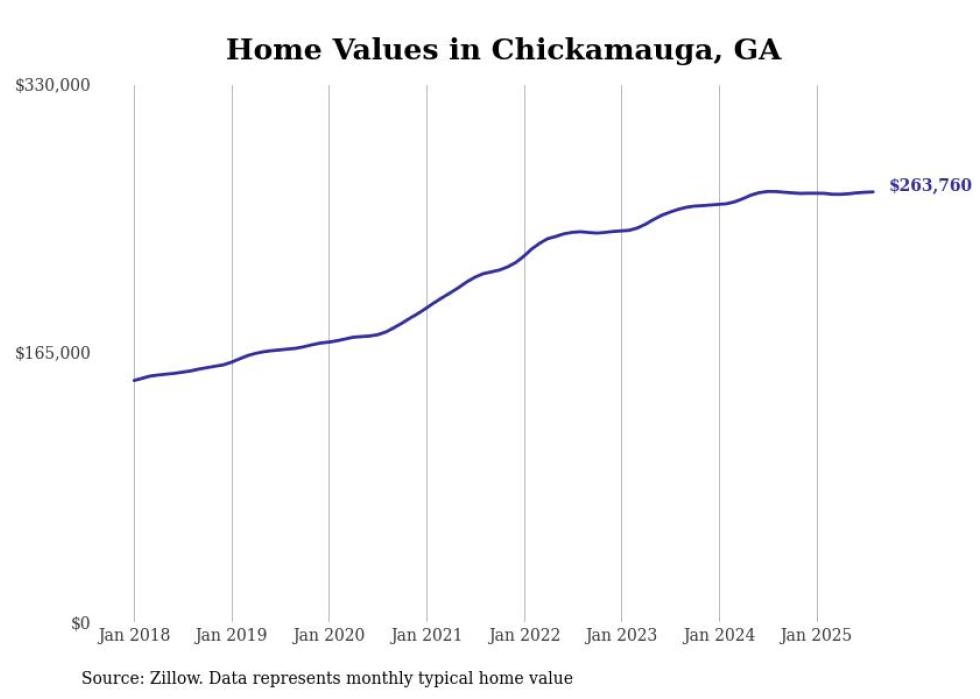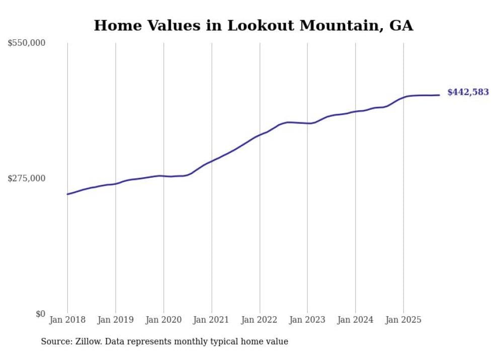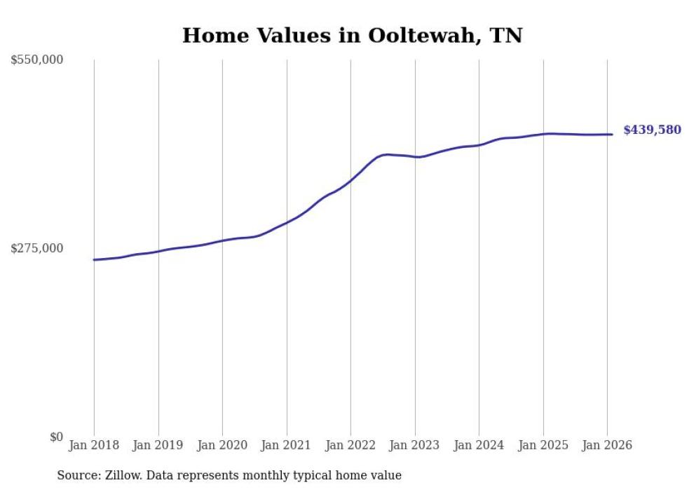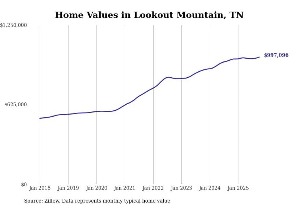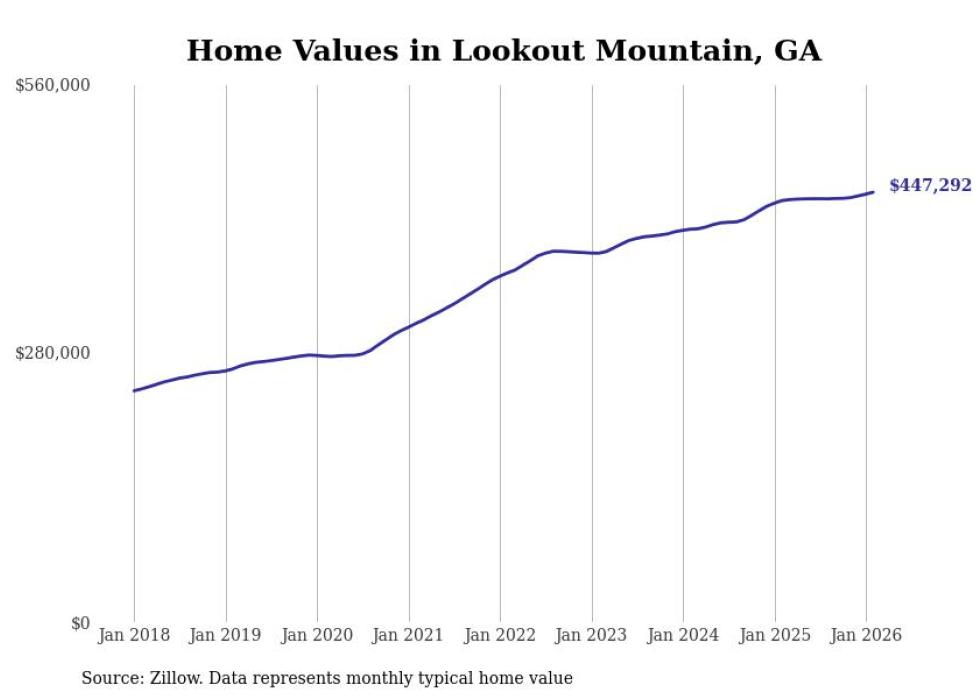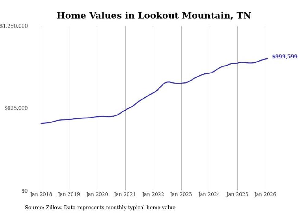 Stacker compiled a list of cities with the most expensive homes in the Chattanooga, TN-GA metro area using data from Zillow. Charts show the monthly typical home value since January 2018.