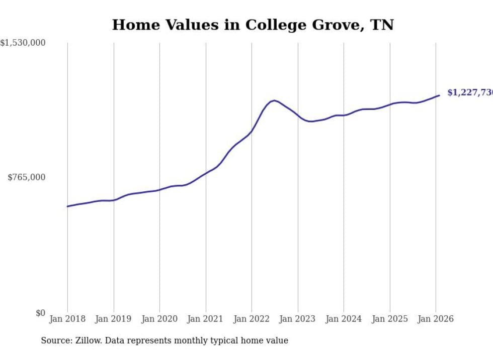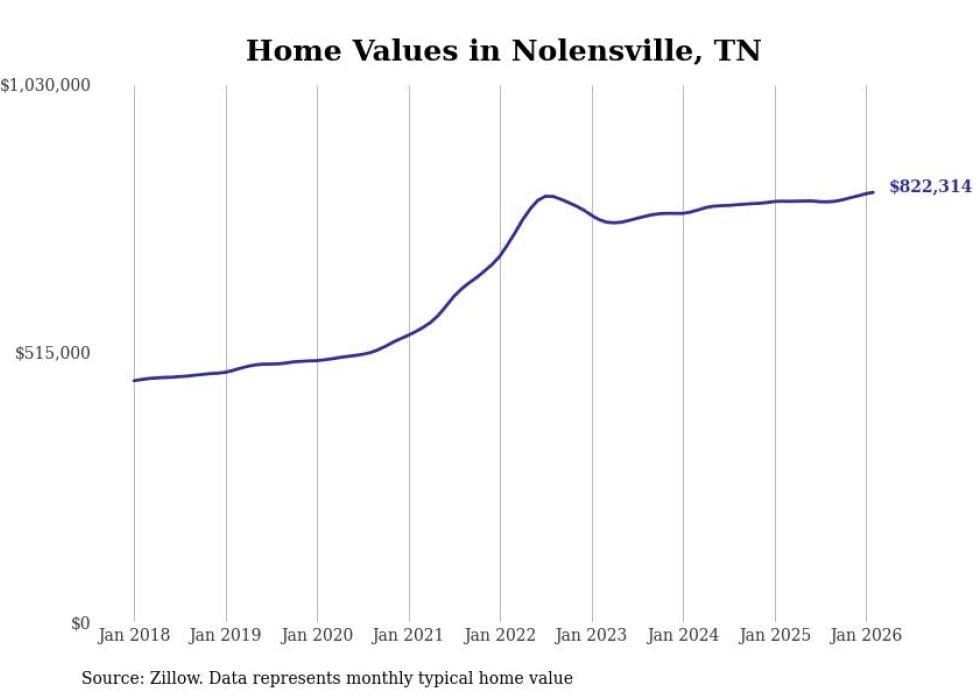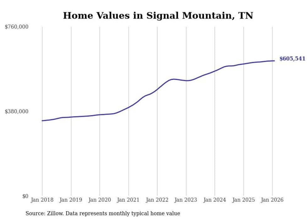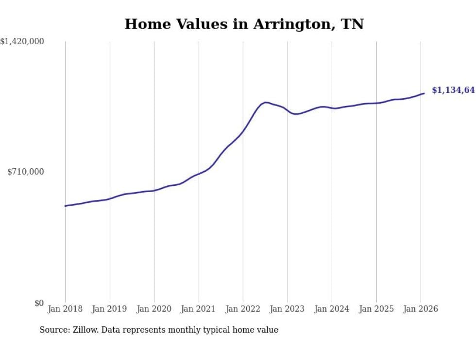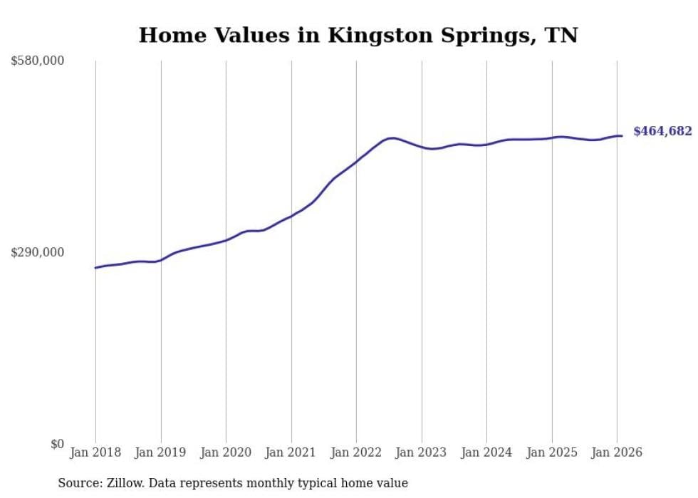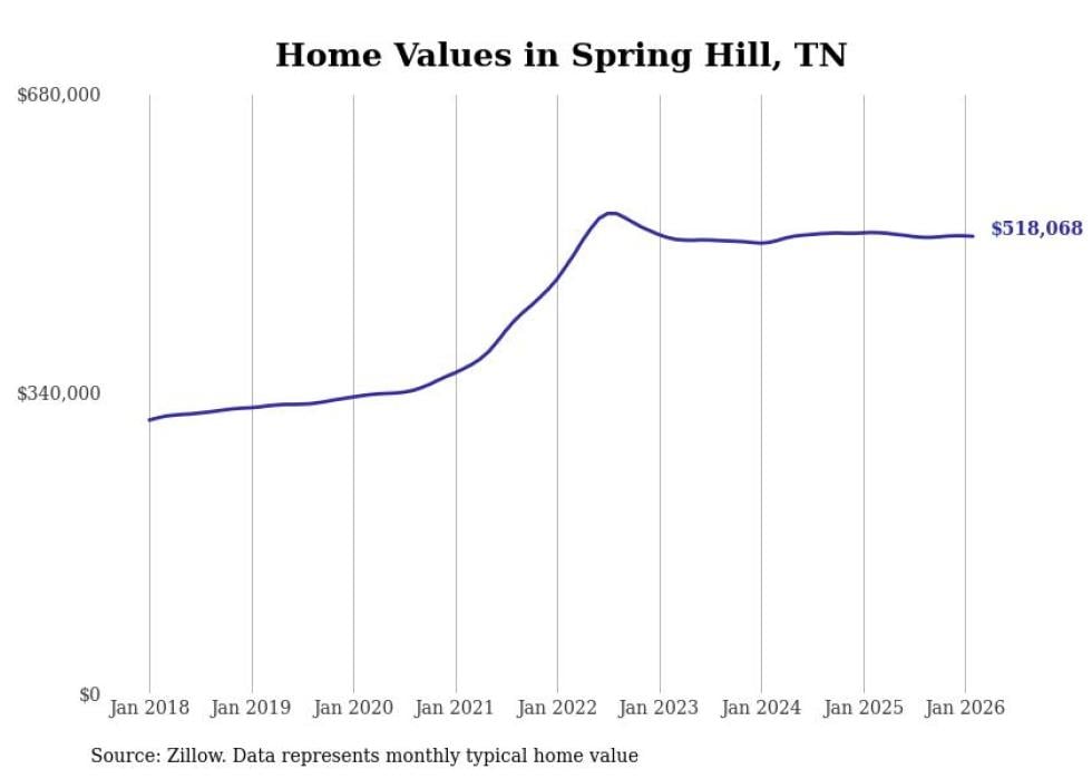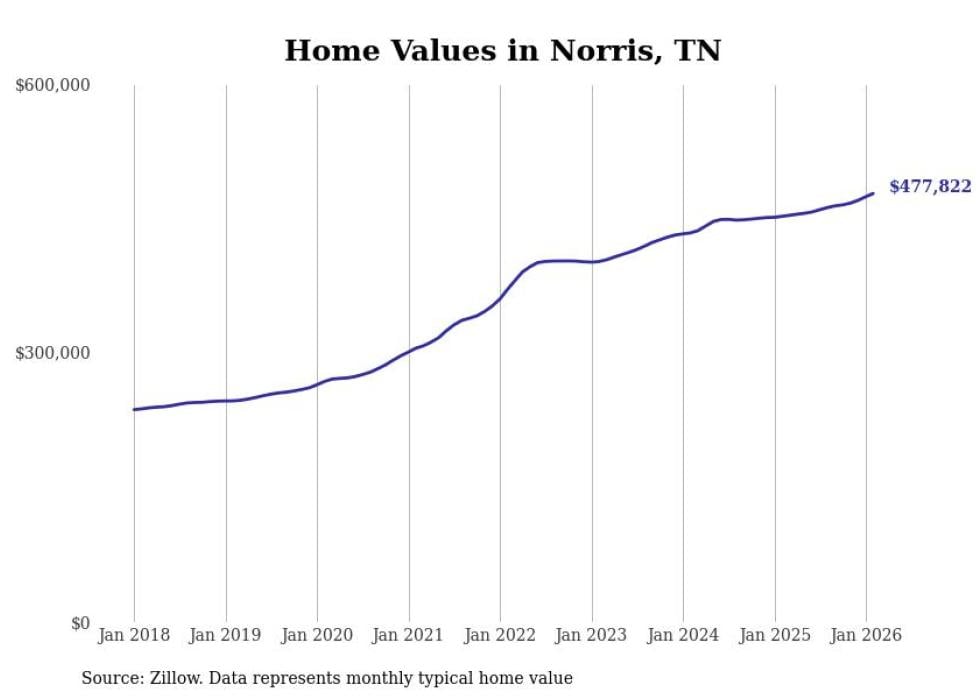 Stacker compiled a list of cities with the most expensive homes in Tennessee using data from Zillow. Cities are ranked by the Zillow Home Values Index for all homes as of February 2026. The charts in this story were created automatically using Matplotlib.