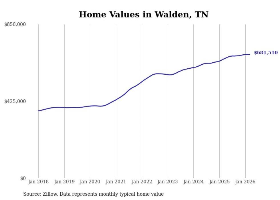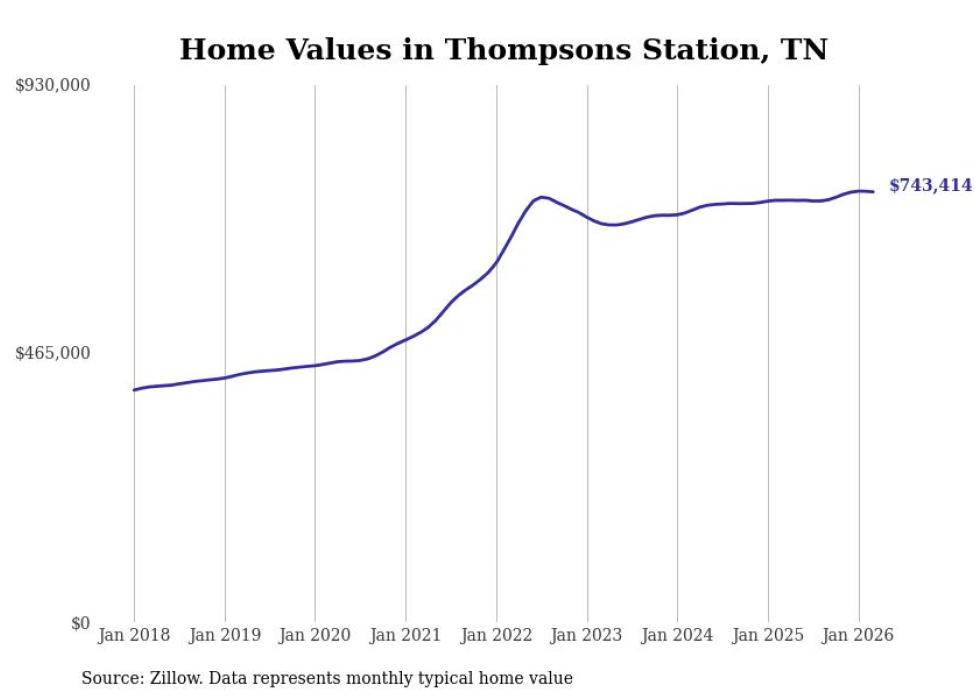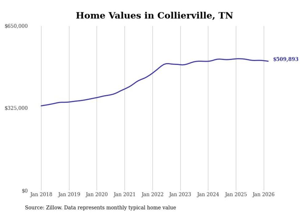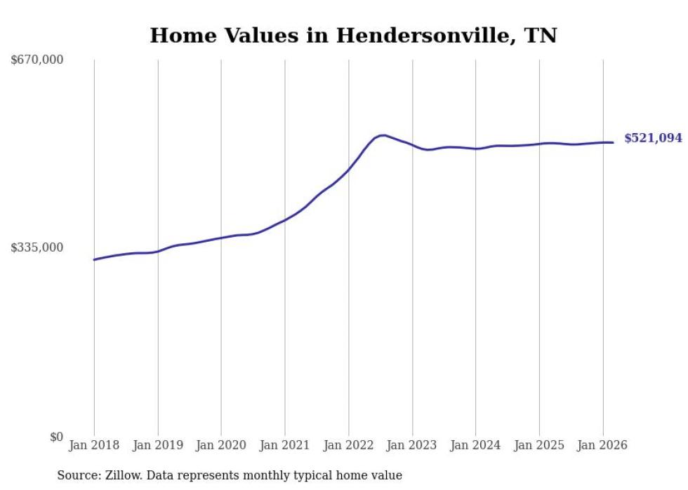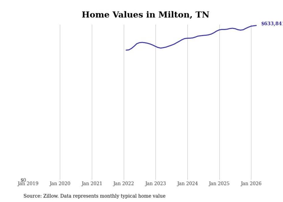 Stacker compiled a list of cities with the most expensive homes in Tennessee using data from Zillow. Cities are ranked by the Zillow Home Values Index for all homes as of March 2026. The charts in this story were created automatically using Matplotlib.